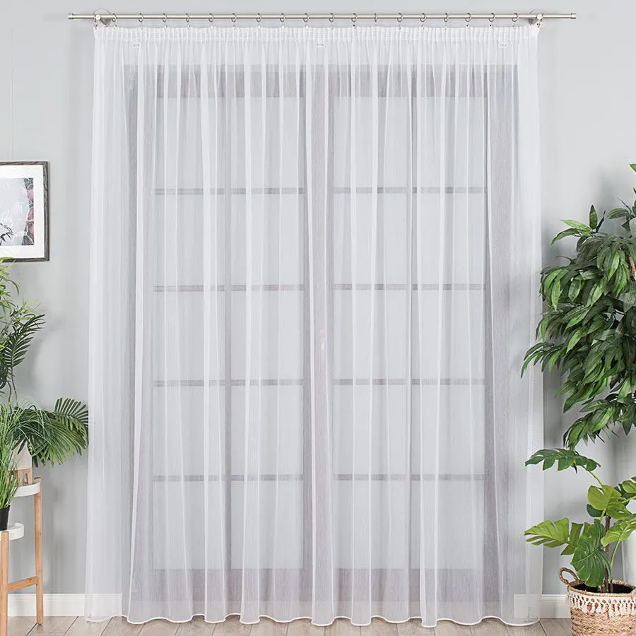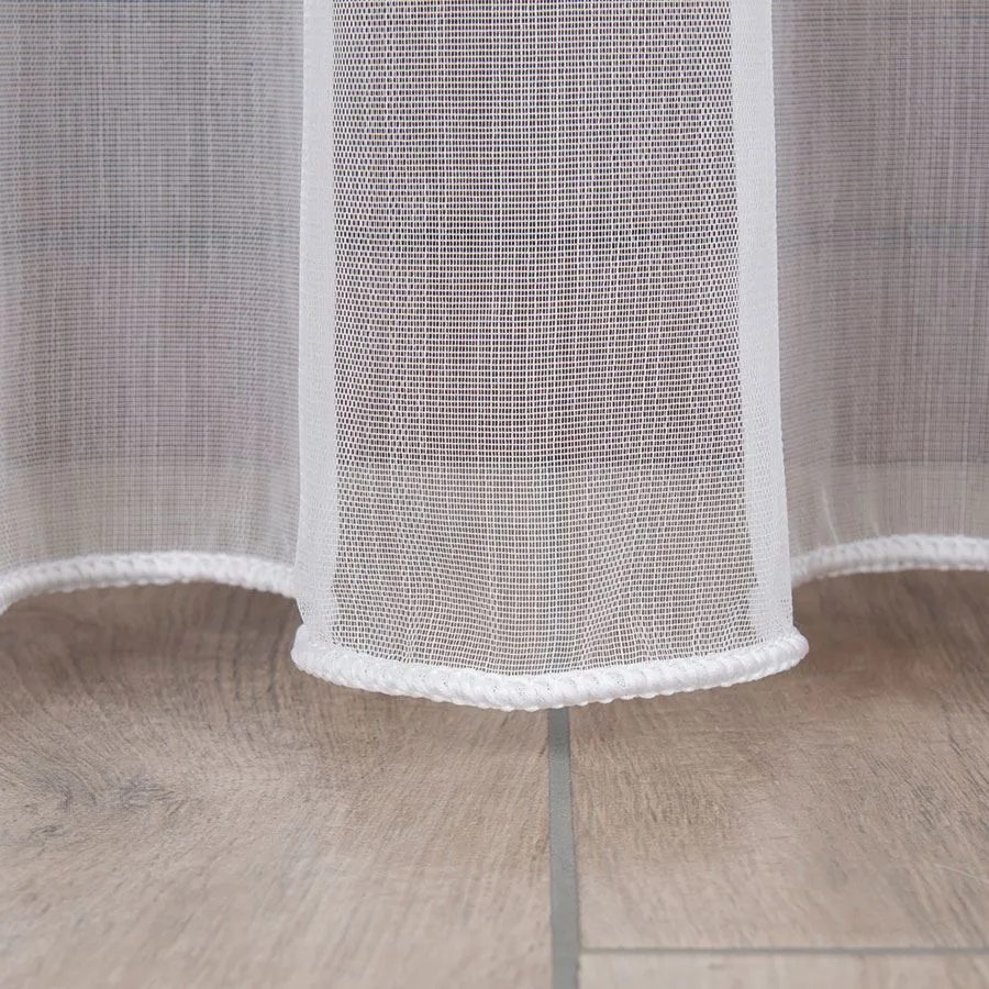 Firanka metrażowa, dobrze przepuszczająca powietrze i promienie słoneczne. Pięknie się układa. Idealna propozycja na zwieńczenie procesów aranżacyjnych w pokojach dziennych i salonach. Zagęszczony splot delikatnego, siateczkowego podkładu to prosty i minimalistyczny wzór, który doda subtelności i przytulności wnętrzom. Firankę możesz zamówić z usługą szycia w naszej profesjonalnej szwalni - wybierz wykończenie, podaj wymiary, a otrzymasz uszytą i gotową do zawieszenia firankę.