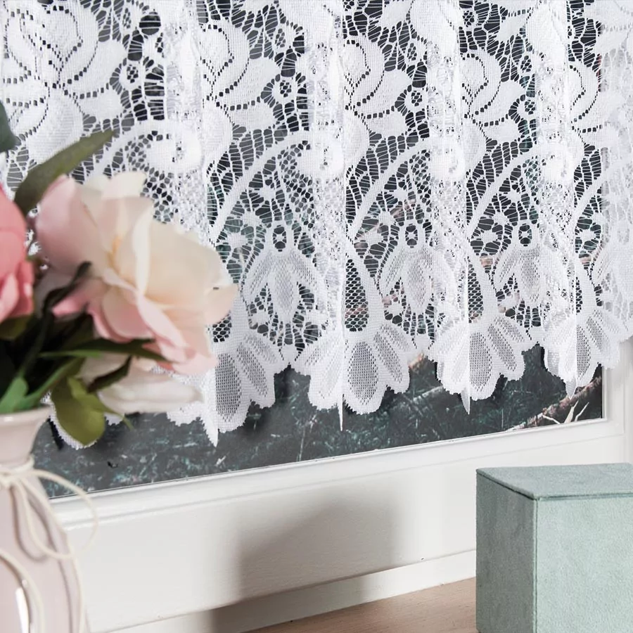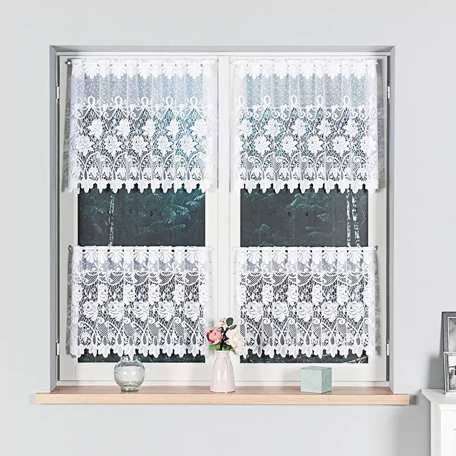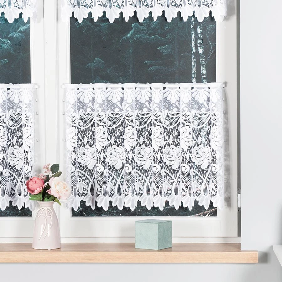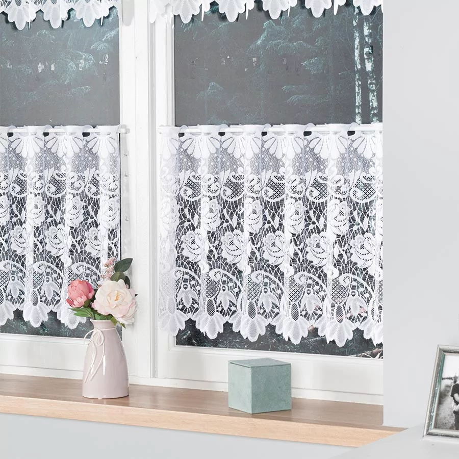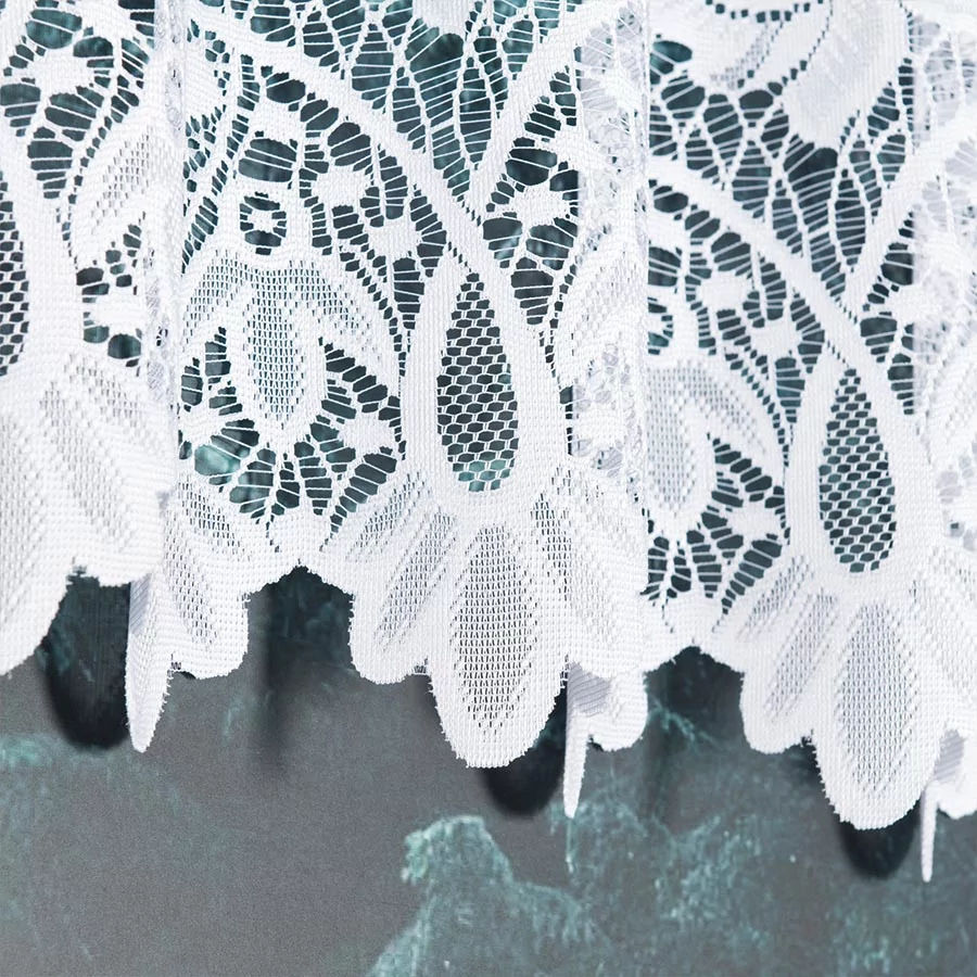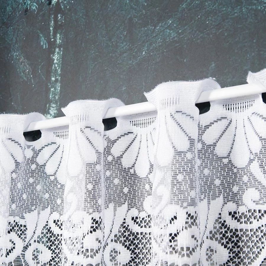 Firanka żakardowa dostępna w metrażu, kolor: biały, motyw: rośliny / kwiaty, wiele wysokości o wyboru, szerokość dowolna, dzięki czemu dopasujesz ją dokładnie do swojego okna. Firankę możesz zamówić z usługą szycia w naszej profesjonalnej szwalni - wybierz wykończenie, podaj wymiary, a otrzymasz uszytą i gotową do zawieszenia firankę. Najwyższa jakość przędzy żakardowej idealnie wkomponuje się w aranżację wnętrz nowoczesnych jak i tych urządzonych w klasycznym stylu. Firanka pięknie się układa, nie wymaga prasowania i można go prać w pralce w niskiej temperaturze. Cechuje ją dobra przepuszczalność powietrza i promieni słonecznych.
