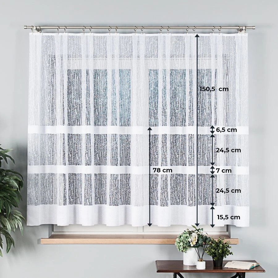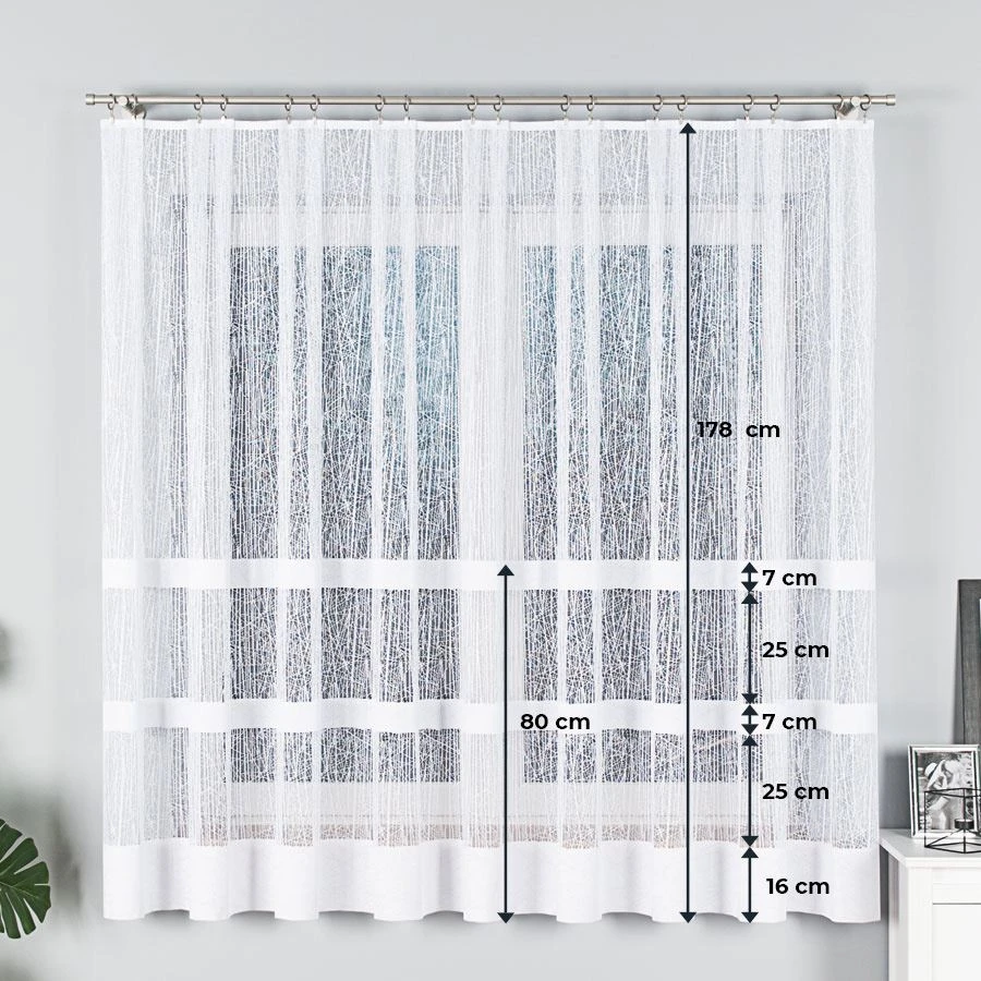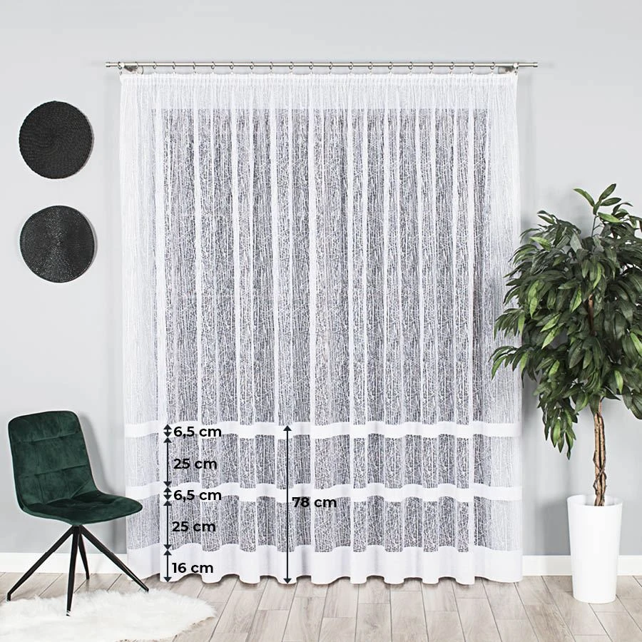 Efektowna, metrażowa firanka żakardowa z motywem szlakowym. Wiele wysokości do wyboru a szerokość jest dowolna, dzięki czemu dopasujesz ją dokładnie do swojego okna. Firankę możesz zamówić z usługą szycia w naszej profesjonalnej szwalni - wybierz wykończenie, podaj wymiary, a otrzymasz uszytą i gotową do zawieszenia firankę. Wykonana z najwyższej jakości przędzy żakardowej firanka idealnie wkomponuje się w aranżację wnętrz nowoczesnych jak i tych urządzonych w klasycznym stylu. Cechuje ją dobra przepuszczalność powietrza i promieni słonecznych. Firanka pięknie się układa, nie wymaga prasowania i można ją prać w pralce w niskiej temperaturze.