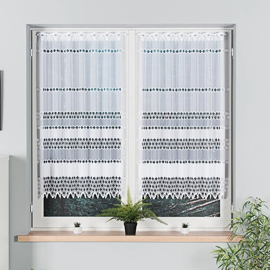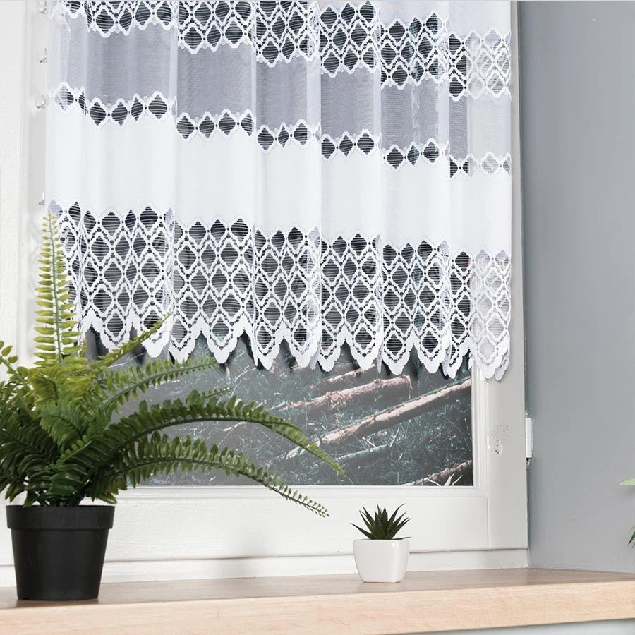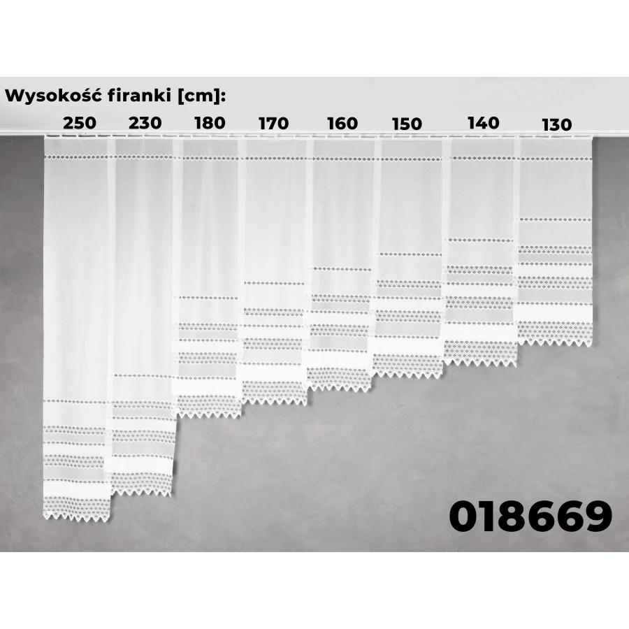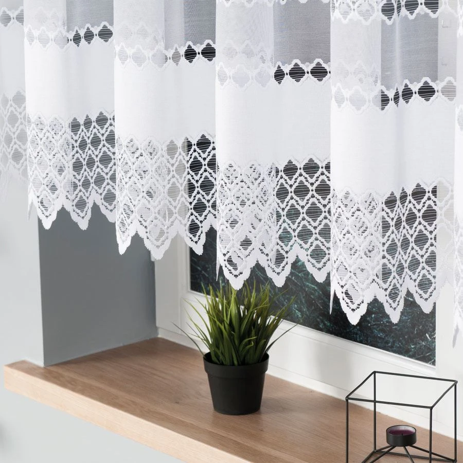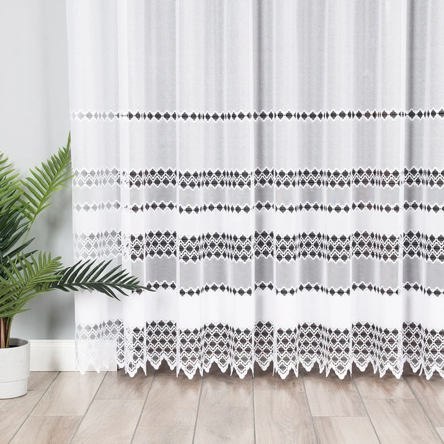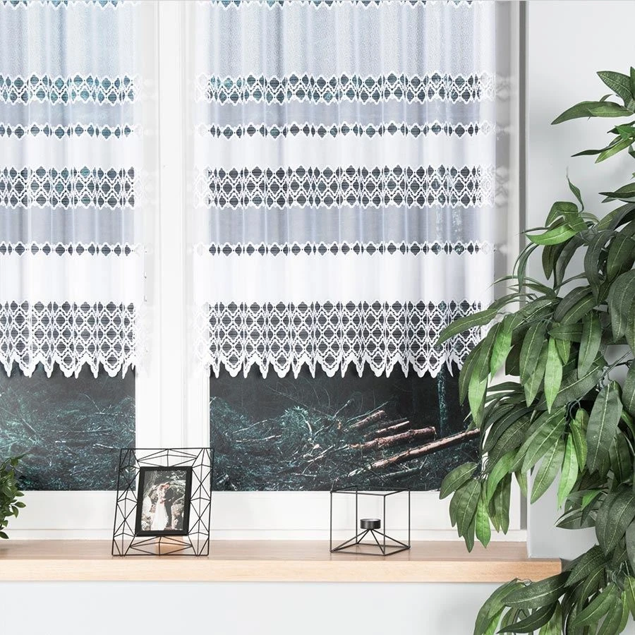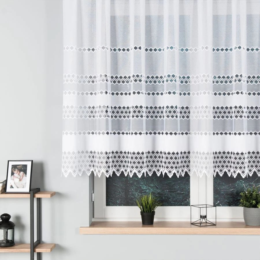 Firanka żakardowa metrażowa, dostępna w wielu wysokościach. Szerokość natomiast jest dowolna, dzięki czemu dopasujesz ją dokładnie do wymiarów swojego okna.