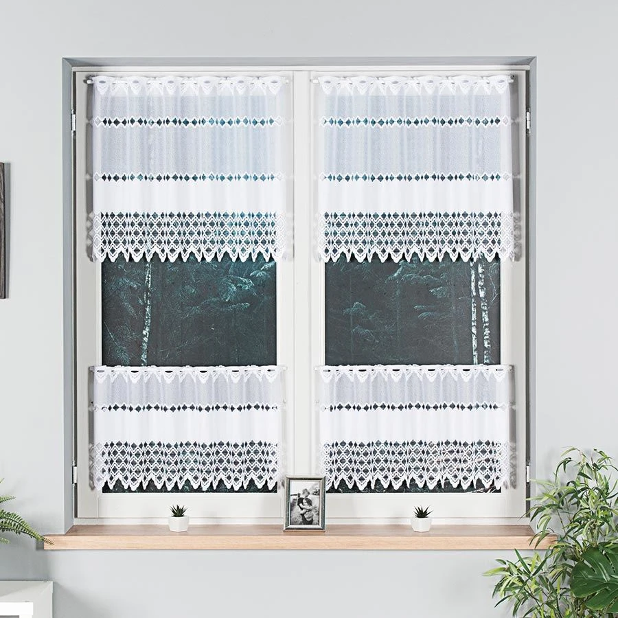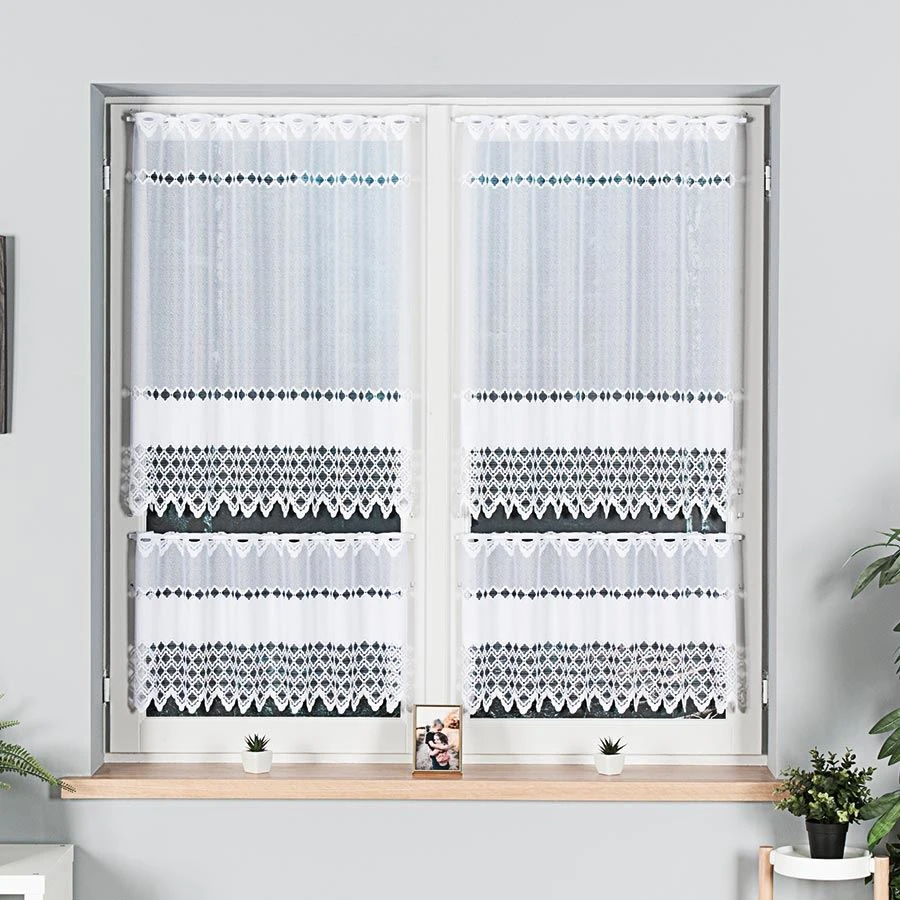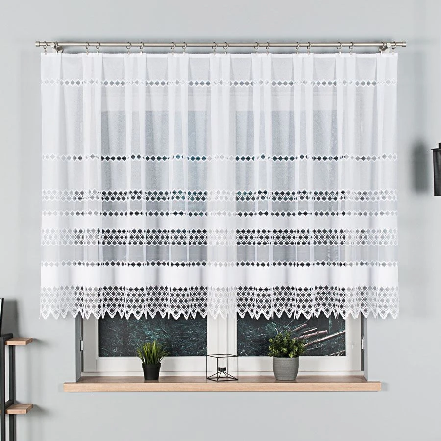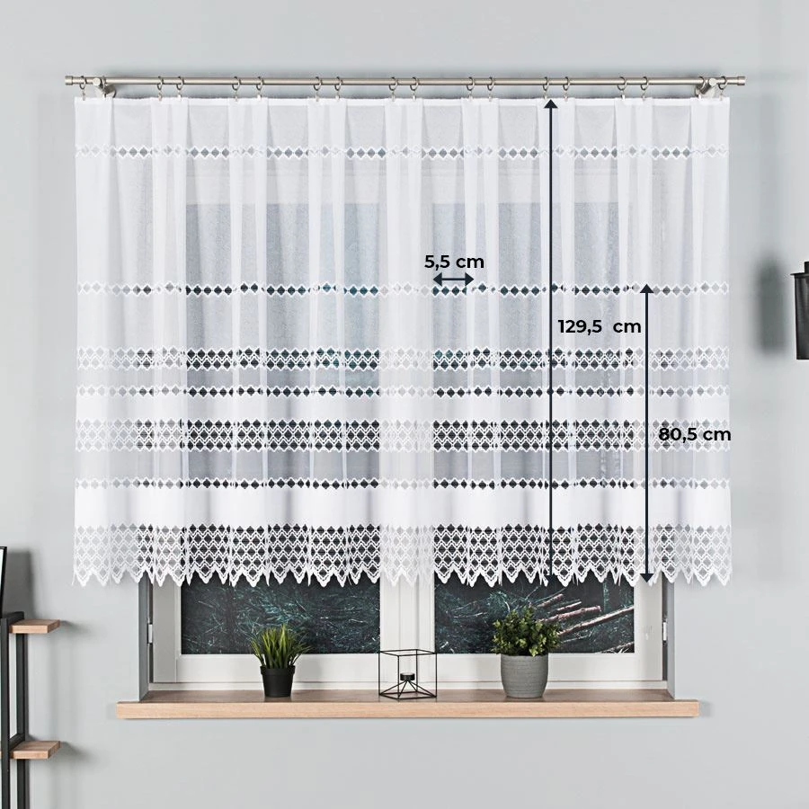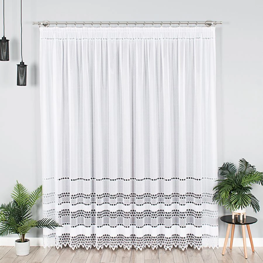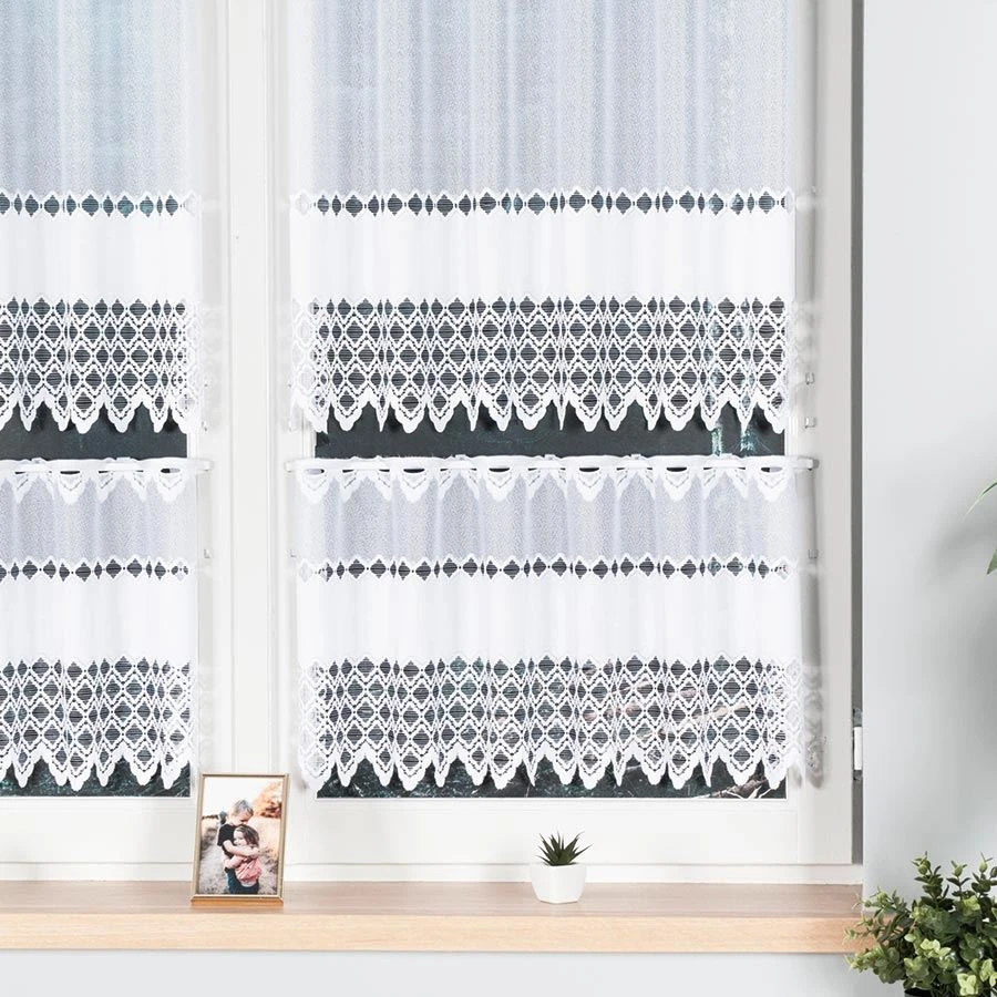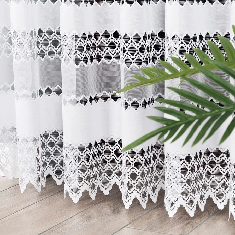 Firanka żakardowa metrażowa, dostępna w wielu wysokościach. Szerokość natomiast jest dowolna, dzięki czemu dopasujesz ją dokładnie do wymiarów swojego okna.