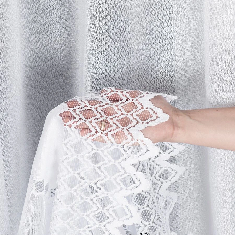 Firanka żakardowa metrażowa, dostępna w wielu wysokościach. Szerokość natomiast jest dowolna, dzięki czemu dopasujesz ją dokładnie do wymiarów swojego okna.  Najwyższa jakość przędzy żakardowej. Idealnie wkomponuje się w aranżację wnętrz nowoczesnych jak i tych urządzonych w klasycznym stylu. Firanka pięknie się układa, nie wymaga prasowania i można go prać w pralce w niskiej temperaturze. Cechuje ją dobra przepuszczalność powietrza i promieni słonecznych.
