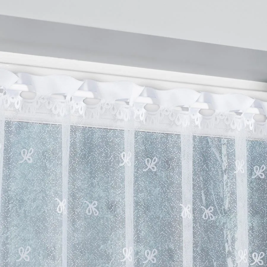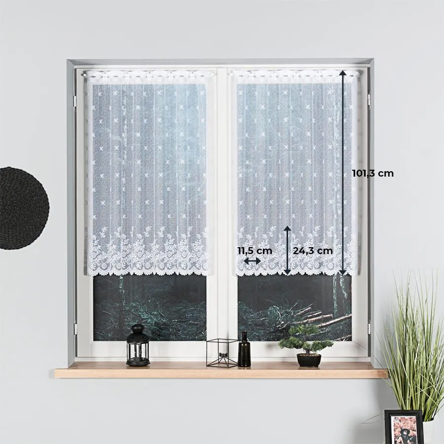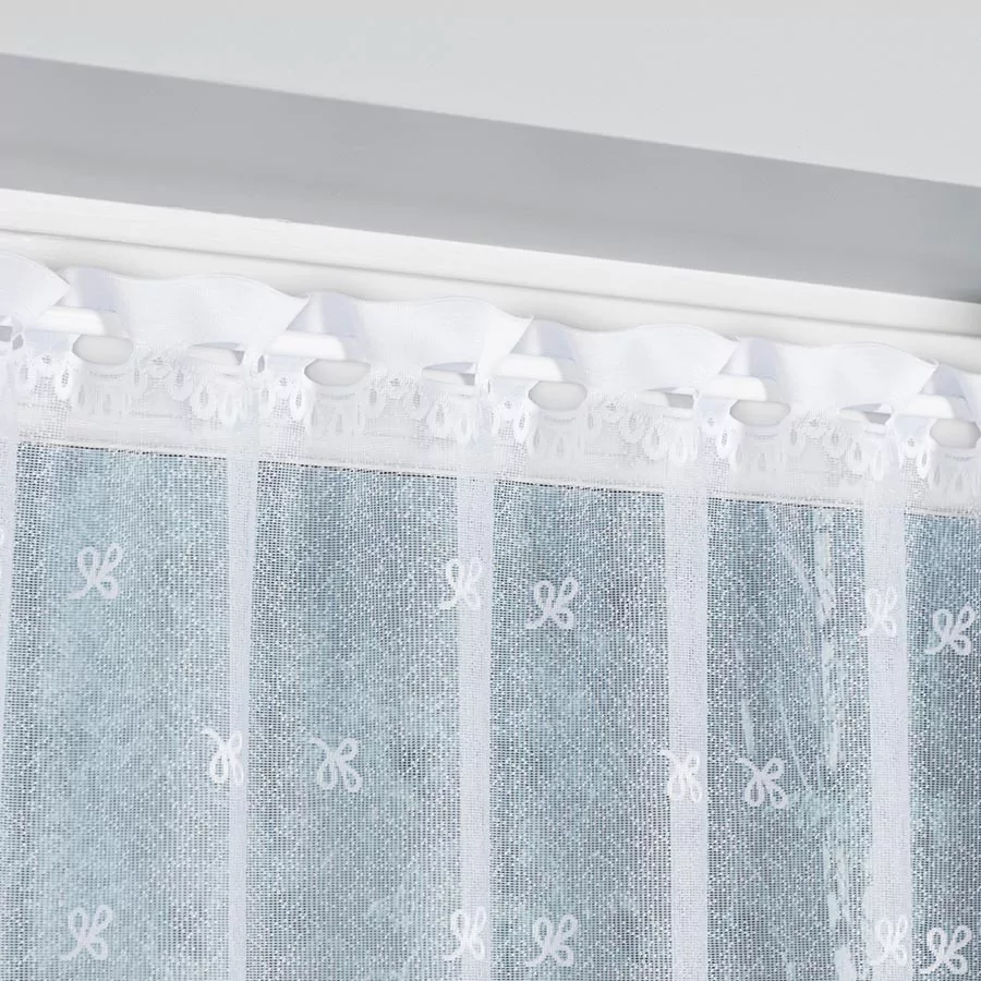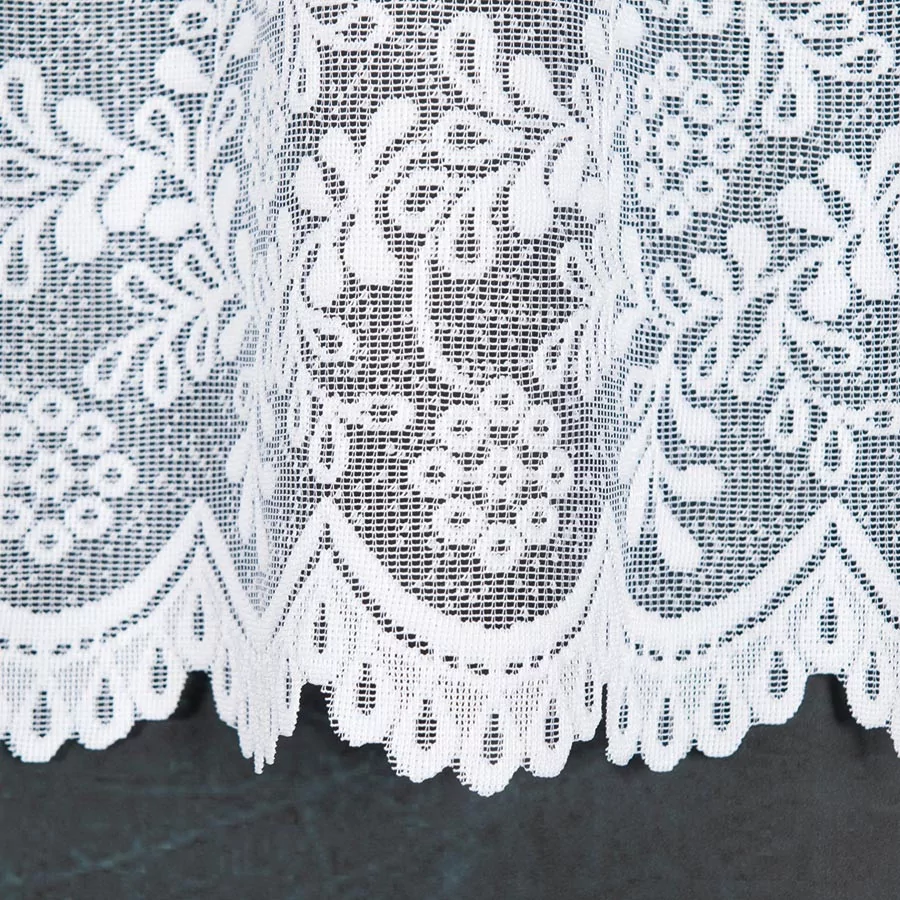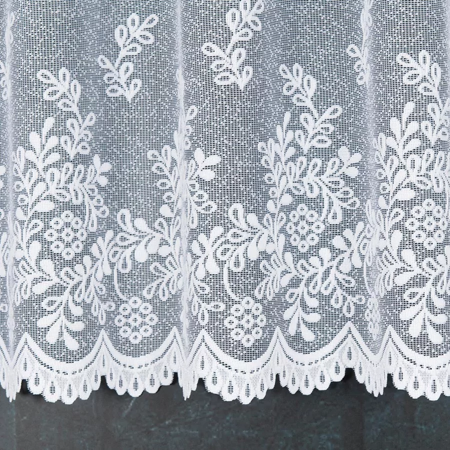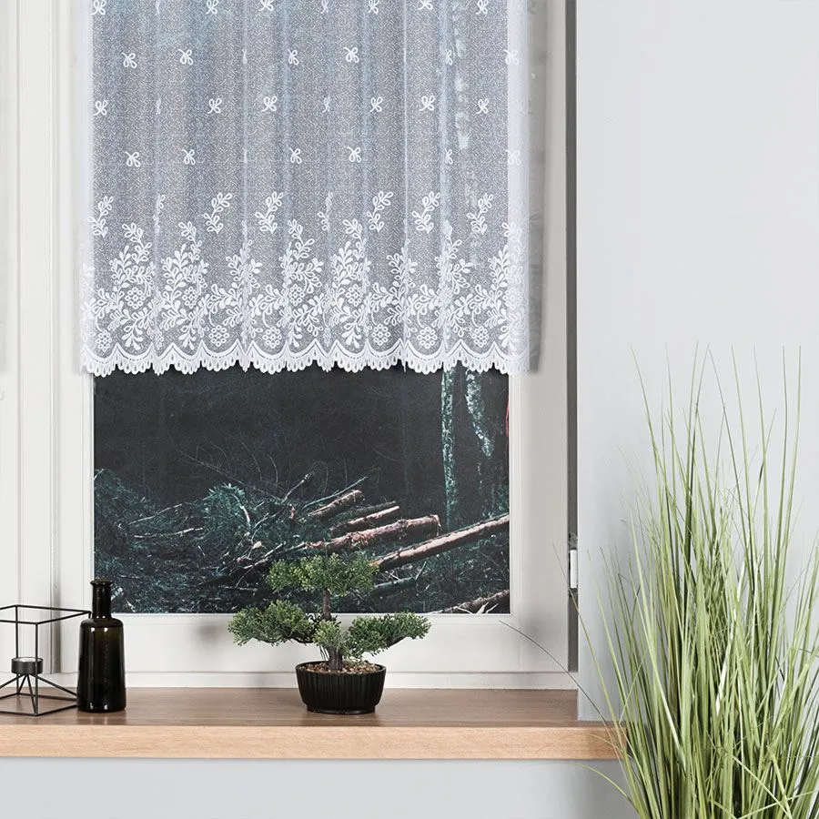 Firanka żakardowa dostępna w metrażu, kolor: biały, motyw: rośliny/kwiaty, wiele wysokości do wyboru, szerokość dowolna, dzięki czemu dopasujesz ją dokładnie do swojego okna. Firankę możesz zamówić z usługą szycia w naszej profesjonalnej szwalni - wybierz wykończenie, podaj wymiary, a otrzymasz uszytą i gotową do zawieszenia firankę. Najwyższa jakość przędzy żakardowej idealnie wkomponuje się w aranżację wnętrz nowoczesnych jak i tych urządzonych w klasycznym stylu. Firanka pięknie się układa, nie wymaga prasowania i można ją prać w pralce w niskiej temperaturze. Cechuje ją dobra przepuszczalność powietrza i promieni słonecznych.