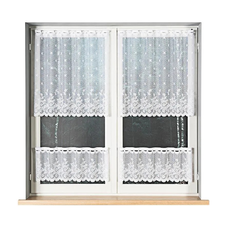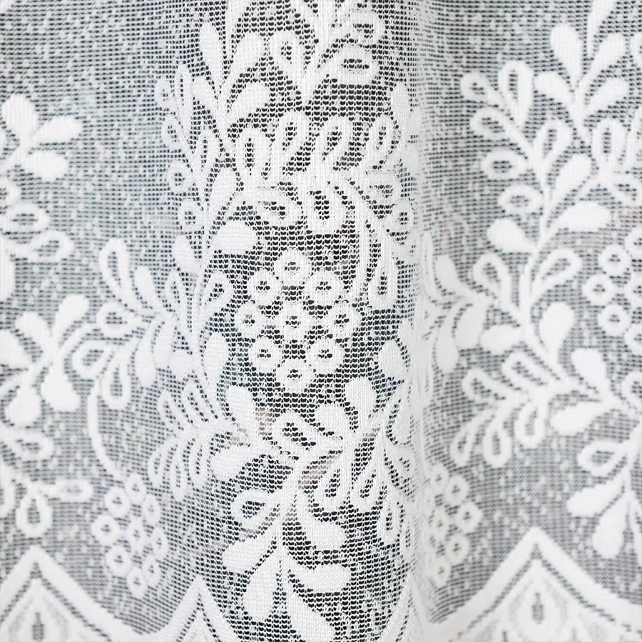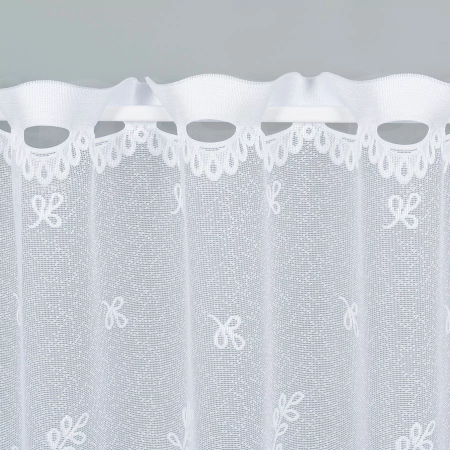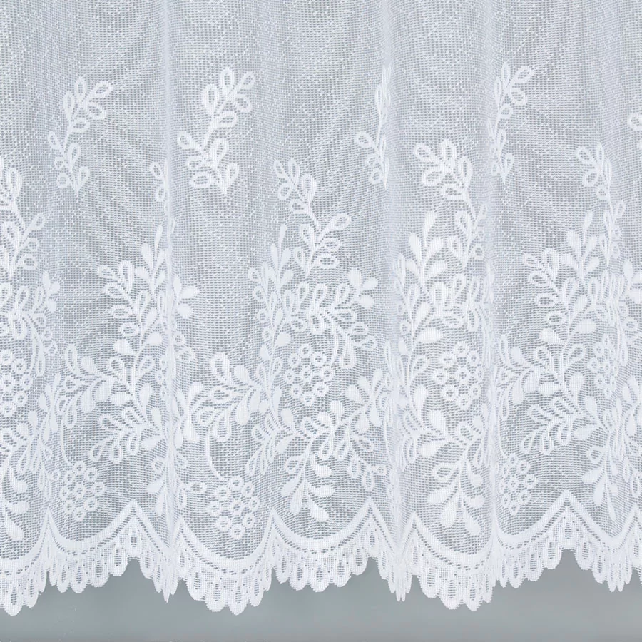 Firanka żakardowa dostępna w metrażu, kolor: biały, motyw: rośliny/kwiaty, wiele wysokości do wyboru, szerokość dowolna, dzięki czemu dopasujesz ją dokładnie do swojego okna. Firankę możesz zamówić z usługą szycia w naszej profesjonalnej szwalni - wybierz wykończenie, podaj wymiary, a otrzymasz uszytą i gotową do zawieszenia firankę. Najwyższa jakość przędzy żakardowej idealnie wkomponuje się w aranżację wnętrz nowoczesnych jak i tych urządzonych w klasycznym stylu. Firanka pięknie się układa, nie wymaga prasowania i można ją prać w pralce w niskiej temperaturze. Cechuje ją dobra przepuszczalność powietrza i promieni słonecznych.
