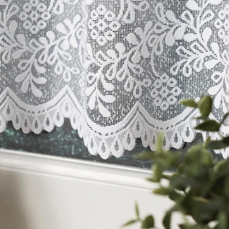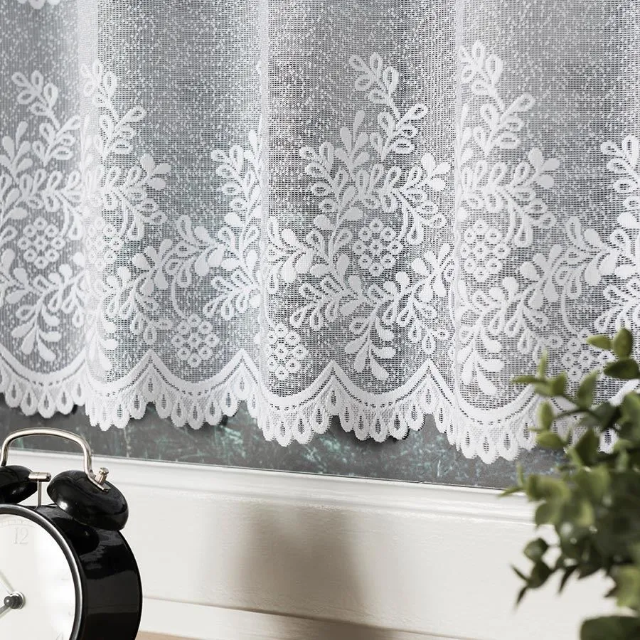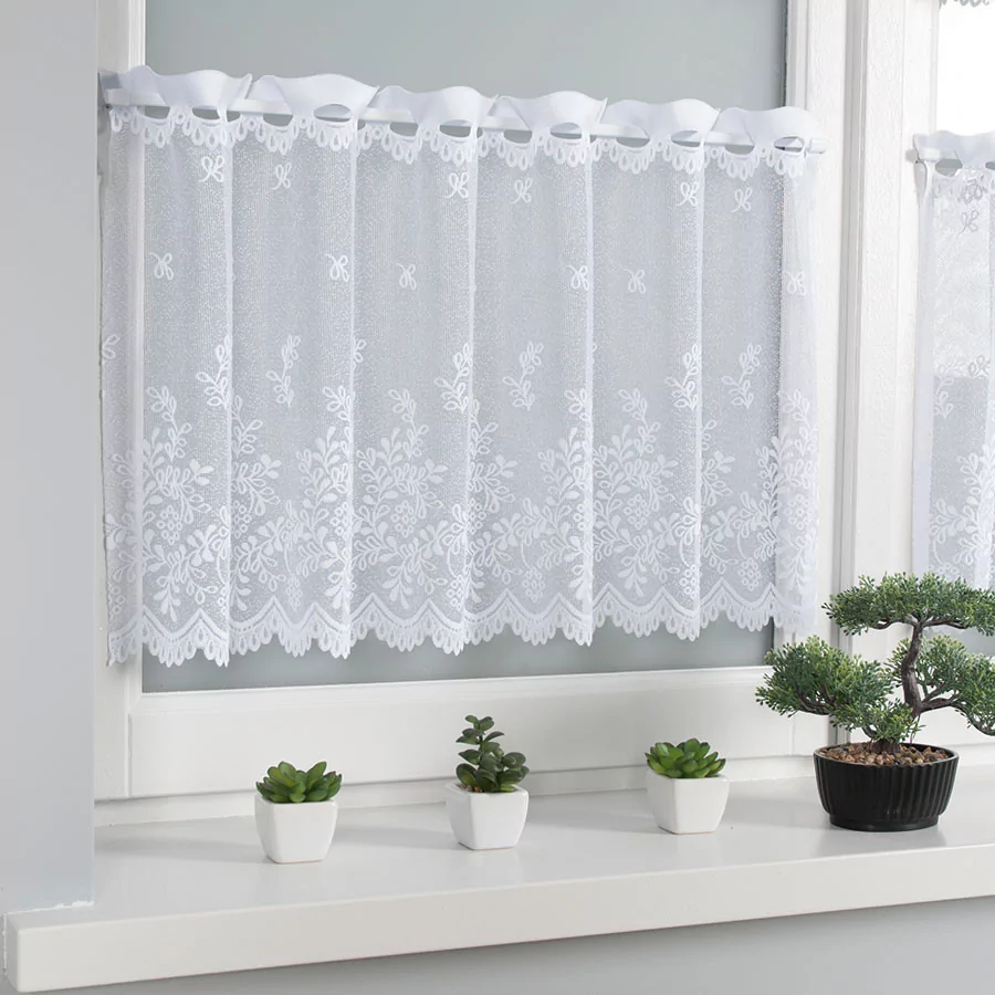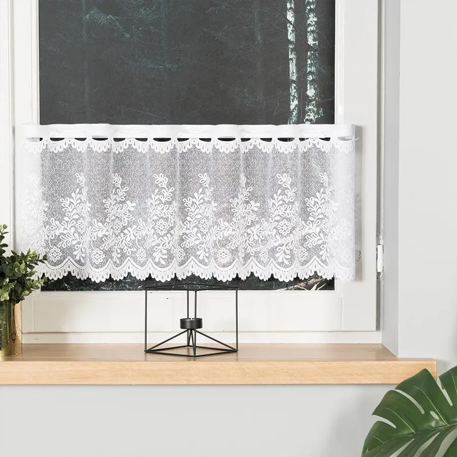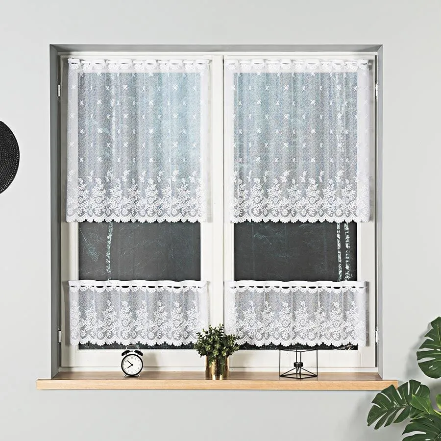 Firanka żakardowa dostępna w metrażu, kolor: biały, motyw: rośliny/kwiaty, wiele wysokości do wyboru, szerokość dowolna, dzięki czemu dopasujesz ją dokładnie do swojego okna. Firankę możesz zamówić z usługą szycia w naszej profesjonalnej szwalni - wybierz wykończenie, podaj wymiary, a otrzymasz uszytą i gotową do zawieszenia firankę. Najwyższa jakość przędzy żakardowej idealnie wkomponuje się w aranżację wnętrz nowoczesnych jak i tych urządzonych w klasycznym stylu. Firanka pięknie się układa, nie wymaga prasowania i można ją prać w pralce w niskiej temperaturze. Cechuje ją dobra przepuszczalność powietrza i promieni słonecznych.