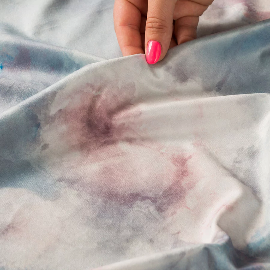 Tkaninę z włosem „velvet” prasujemy po lewej stronie materiału, lekko rozgrzanym żelazkiem z użyciem pary. Delikatnie, nie dociskając żelazka.