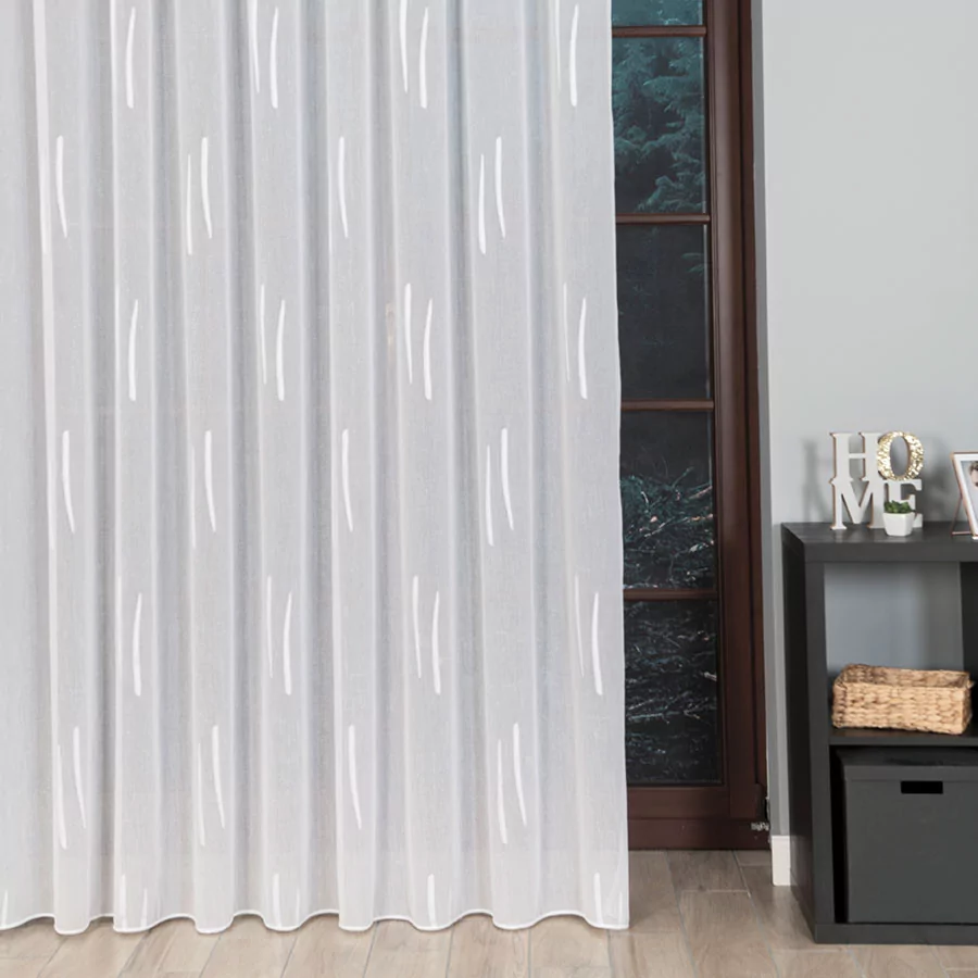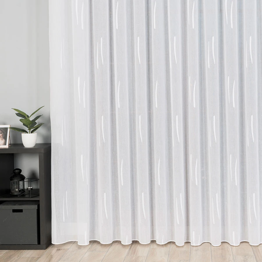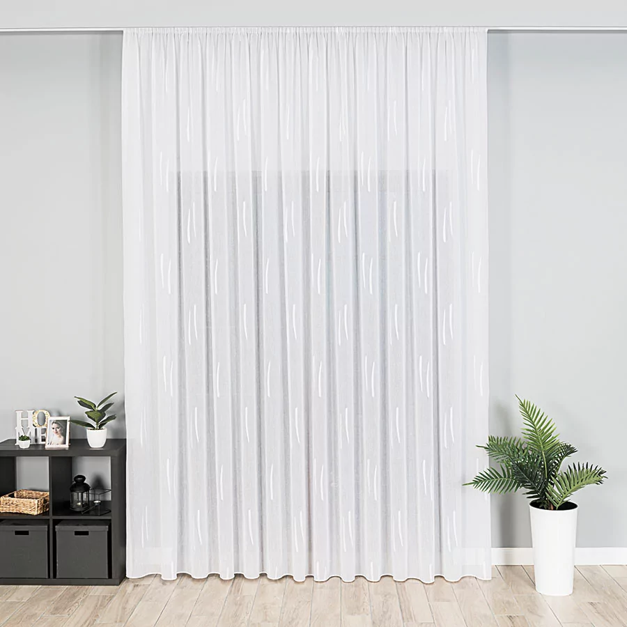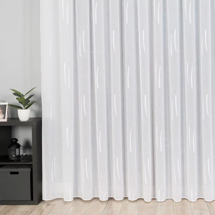 Pięknie układająca się firanka metrażowa. Zagęszczony splot delikatnej, miękkiej dzianiny fantazyjnej umiarkowanie przepuszcza powietrze a subtelnie nabłyszczana nić efektownie odbija promienie słoneczne. Tak prosty i minimalistyczny wzór doda subtelności i przytulności wnętrzom. Idealna propozycja na zwieńczenie procesów aranżacyjnych w pokojach dziennych i salonach. Firankę możesz zamówić z usługą szycia w naszej profesjonalnej szwalni - wybierz wykończenie, podaj wymiary, a otrzymasz uszytą i gotową do zawieszenia firankę.