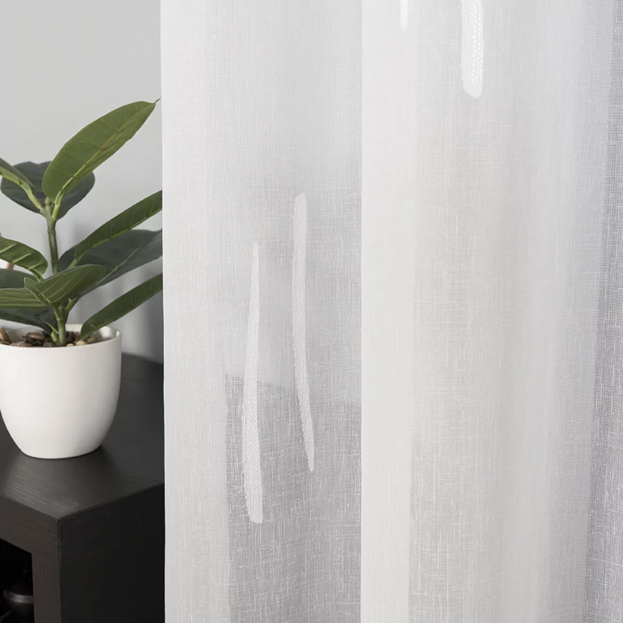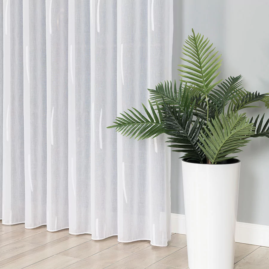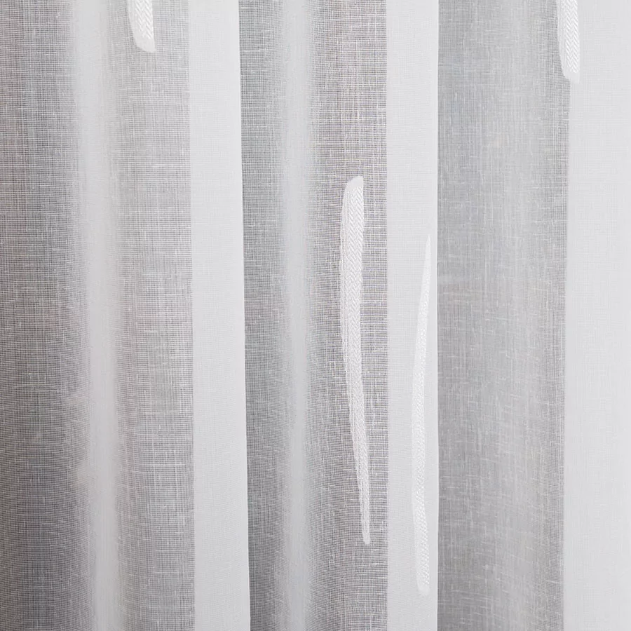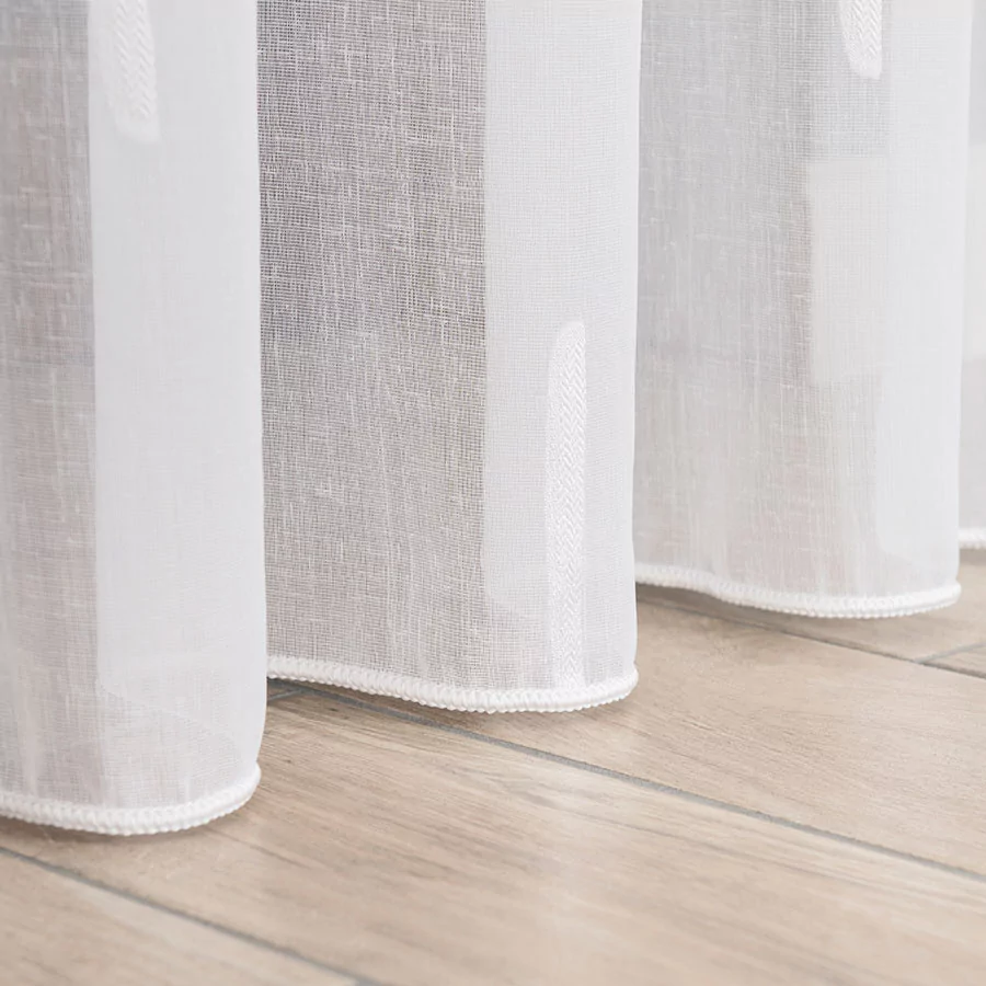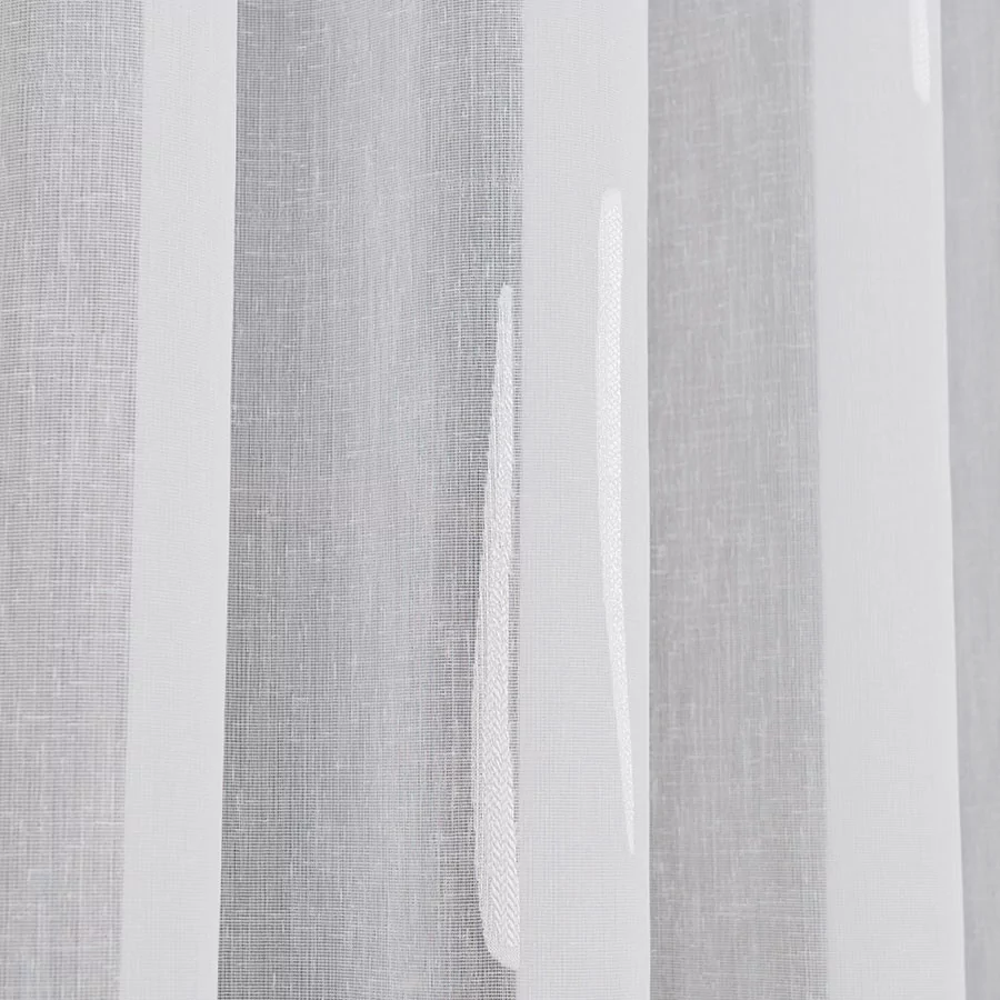 Pięknie układająca się firanka metrażowa. Zagęszczony splot delikatnej, miękkiej dzianiny fantazyjnej umiarkowanie przepuszcza powietrze a subtelnie nabłyszczana nić efektownie odbija promienie słoneczne. Tak prosty i minimalistyczny wzór doda subtelności i przytulności wnętrzom. Idealna propozycja na zwieńczenie procesów aranżacyjnych w pokojach dziennych i salonach. Firankę możesz zamówić z usługą szycia w naszej profesjonalnej szwalni - wybierz wykończenie, podaj wymiary, a otrzymasz uszytą i gotową do zawieszenia firankę.