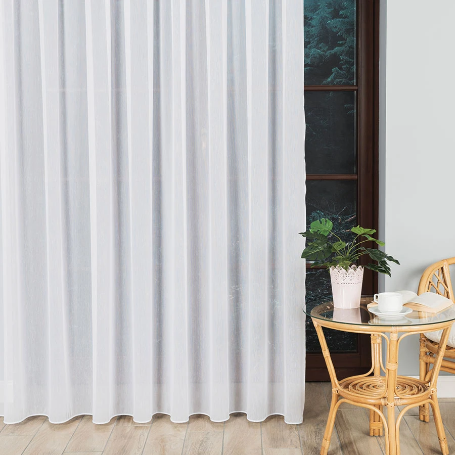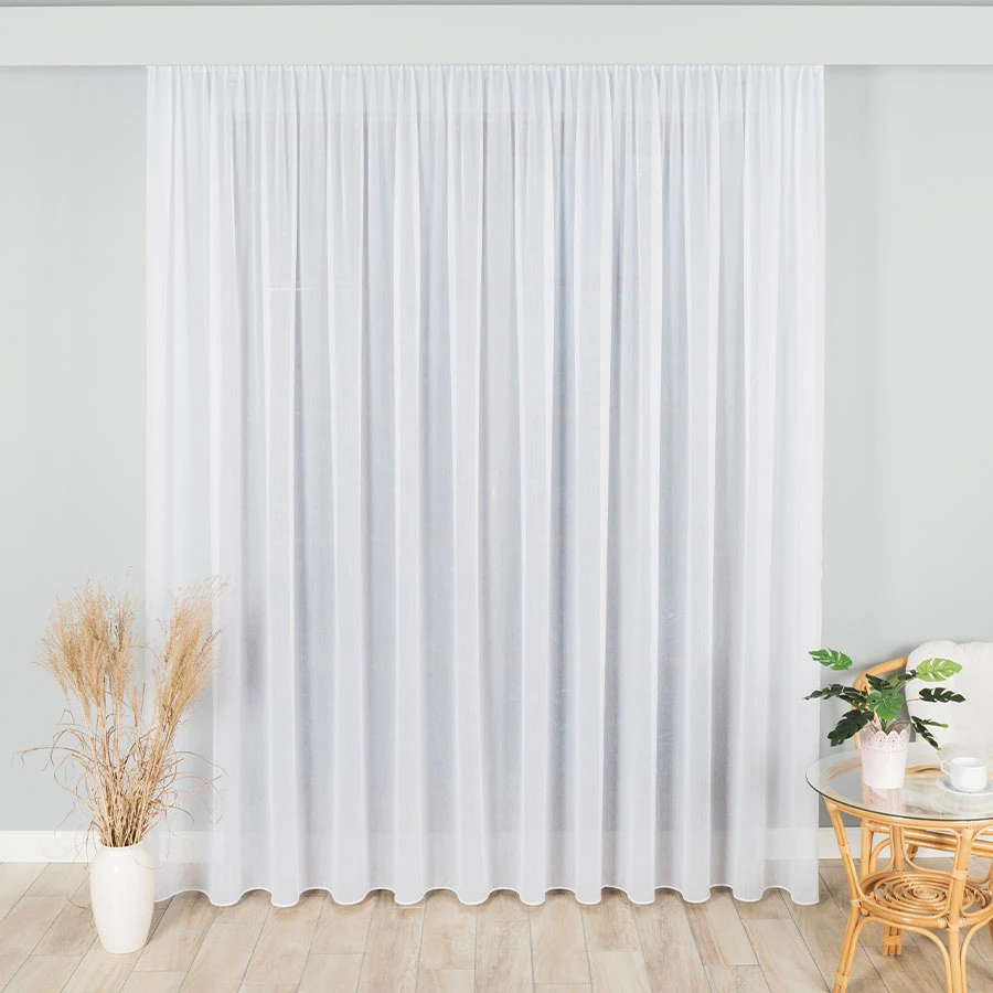 Firanka metrażowa, wykonana na delikatnym białym, kremowym lub szarym podkładzie fantazyjnym. Lekki i pięknie układający się materiał, idealnie wpasuje się zarówno w nowoczesne, jak i klasyczne wnętrze. Materiał ten jest łatwy w użytkowaniu i pięknie się układa. Zagęszczony splot materiału świetnie uchroni przed słońcem i wiatrem jednocześnie nie tracąc na swej niezwykłej lekkości i zwiewności. Tak prosty i minimalistyczny wzór doda subtelności i przytulności wnętrzom.