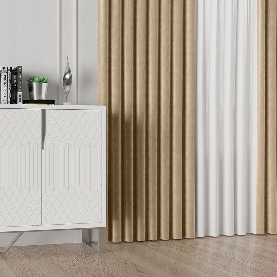 Tkanina dekoracyjna VELVET o miękkiej i aksamitnej strukturze. Pasuje do wnętrz nowoczesnych, jak i tych urządzonych w klasycznym stylu. Wysoka gramatura i gęstość materiału gwarantuje dość mocne zasłonięcie okna. Tkanina dostępna jest w wielu modnych kolorach. Materiał idealny na zasłony, poszewki lub narzuty. Tkaninę zamówisz jako materiał bez wykończenia lub produkt uszyty na wymiar w naszej profesjonalnej szwalni. Wystrój okien zasłonami z dopełnią poszewki z tego samego materiału w takim samym lub kontrastującym kolorze.