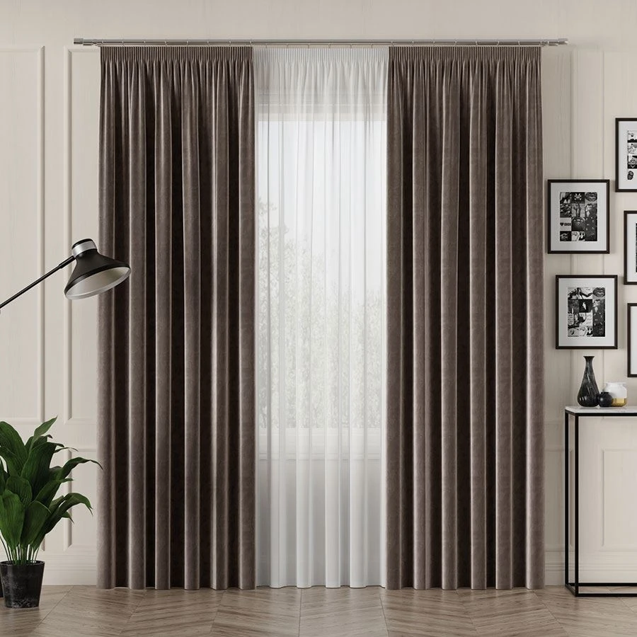Tkanina dekoracyjna VELVET o miękkiej i aksamitnej strukturze. Pasuje do wnętrz nowoczesnych, jak i tych urządzonych w klasycznym stylu. Wysoka gramatura i gęstość materiału gwarantuje dość mocne zasłonięcie okna. Tkanina dostępna jest w wielu modnych kolorach. Materiał idealny na zasłony, poszewki lub narzuty. Tkaninę zamówisz jako materiał bez wykończenia lub produkt uszyty na wymiar w naszej profesjonalnej szwalni. Wystrój okien zasłonami z dopełnią poszewki z tego samego materiału w takim samym lub kontrastującym kolorze.