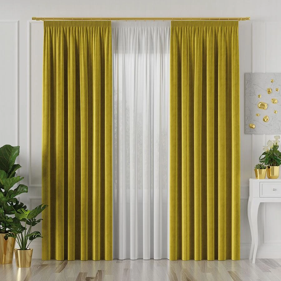 Tkanina dekoracyjna VELVET o miękkiej i aksamitnej strukturze. Pasuje do wnętrz nowoczesnych, jak i tych urządzonych w klasycznym stylu. Wysoka gramatura i gęstość materiału gwarantuje dość mocne zasłonięcie okna. Tkanina dostępna jest w wielu modnych kolorach. Materiał idealny na zasłony, poszewki lub narzuty. Tkaninę zamówisz jako materiał bez wykończenia lub produkt uszyty na wymiar w naszej profesjonalnej szwalni. Wystrój okien zasłonami z dopełnią poszewki z tego samego materiału w takim samym lub kontrastującym kolorze.