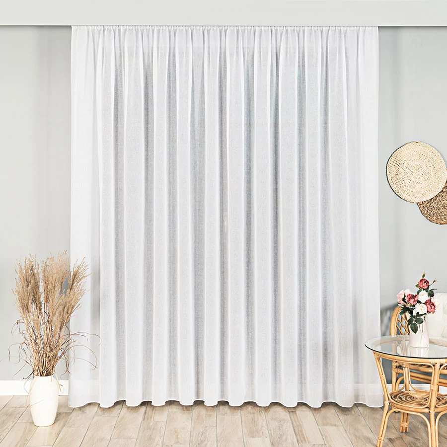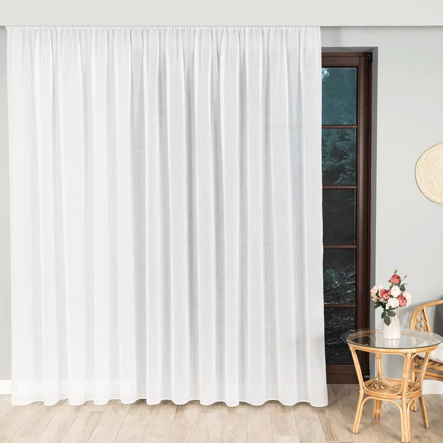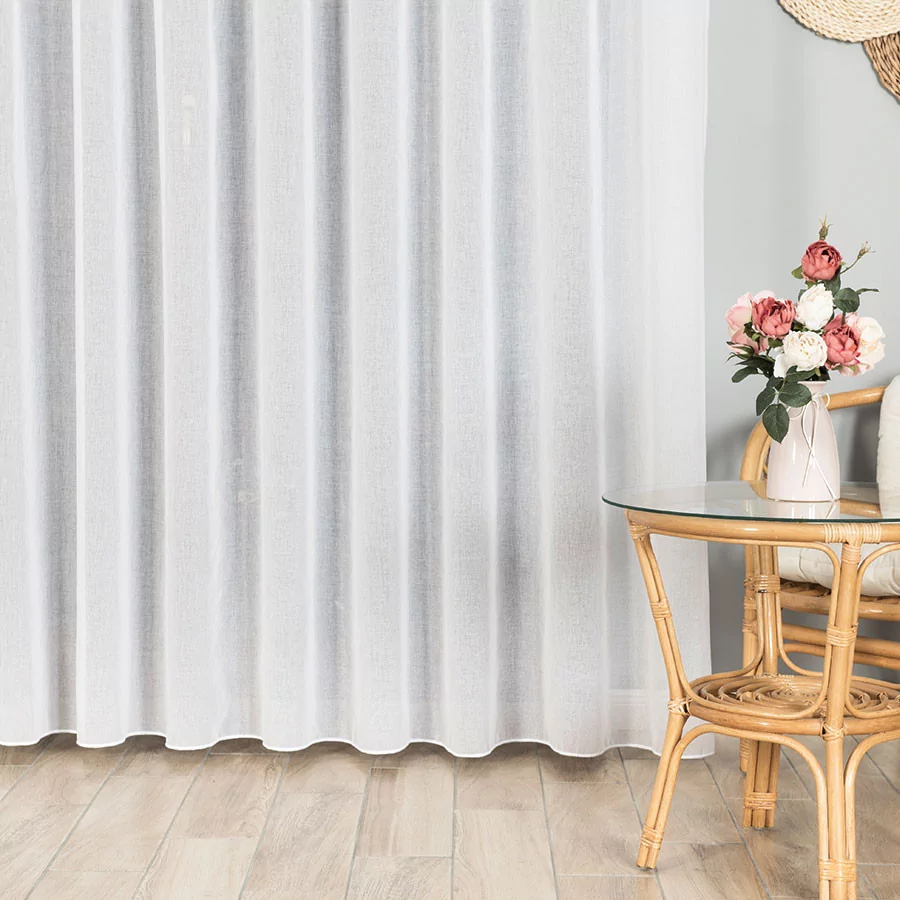 Firana ETAMINA to fantastyczny materiał, który można łatwo przyciąć na dowolną długość i szerokość, dzięki czemu bez problemu uszyjemy firankę idealnie dopasowaną do wymiaru Twoich okien.