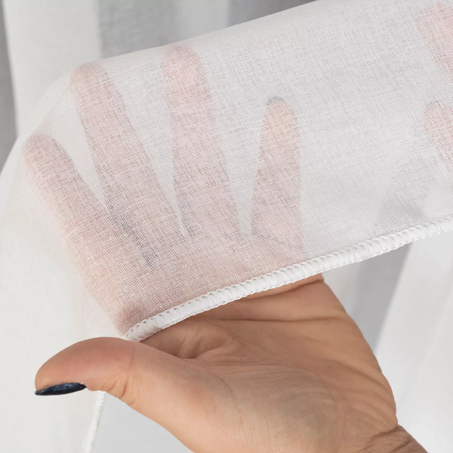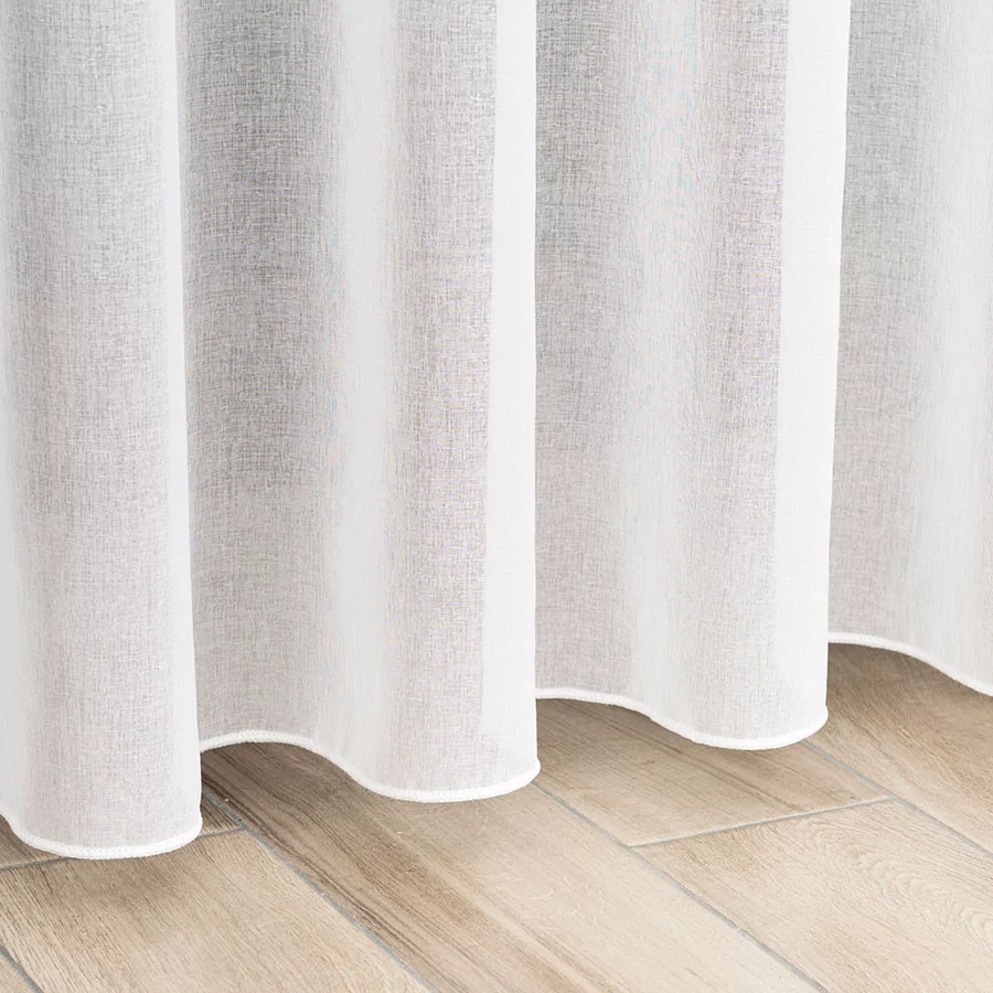 Wykonana na delikatnym, białym podkładzie batystowym firanka metrażowa. Lekki i pięknie układający się materiał, idealnie wpasuje się zarówno w nowoczesne, jak i klasyczne wnętrze. Zagęszczony splot materiału świetnie uchroni przed słońcem i wiatrem jednocześnie nie tracąc na swej niezwykłej lekkości i zwiewności. Tak prosty i minimalistyczny wzór doda subtelności i przytulności wnętrzom.