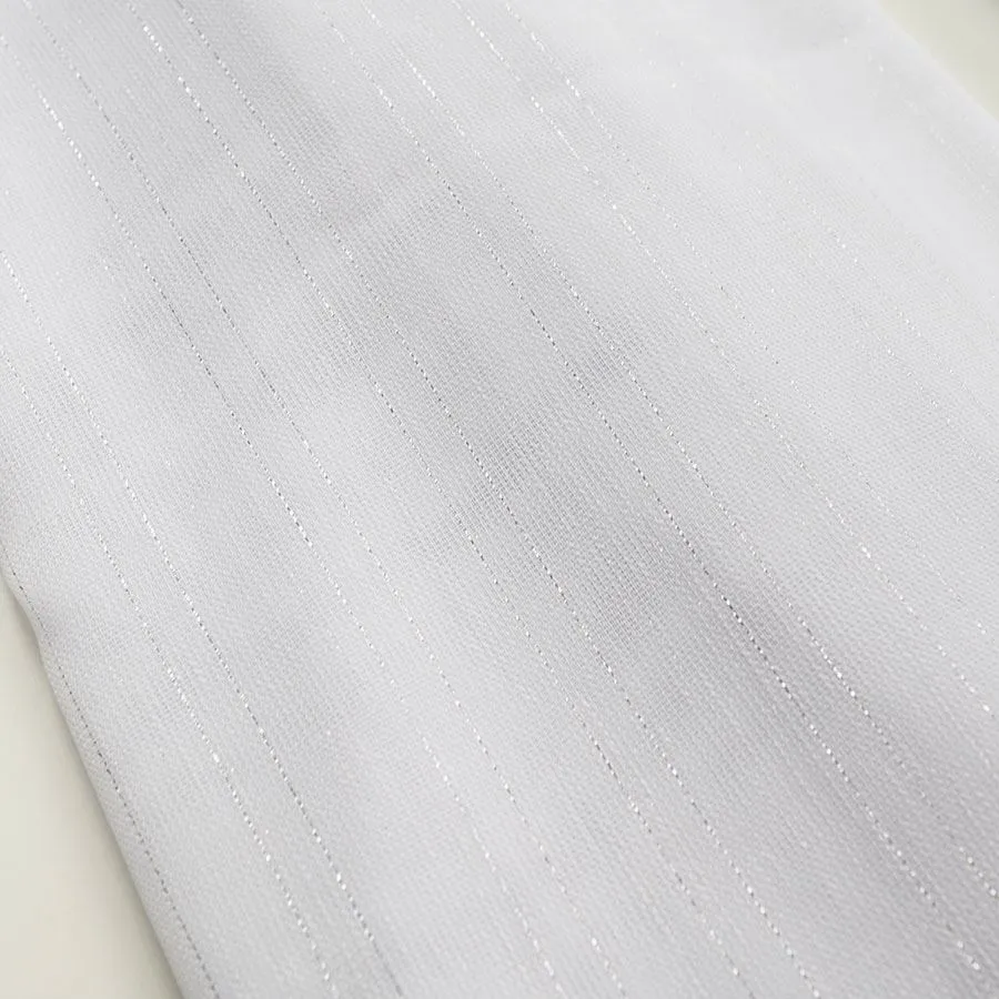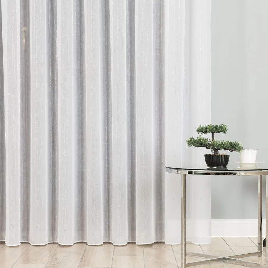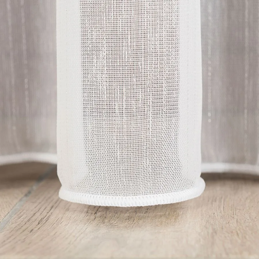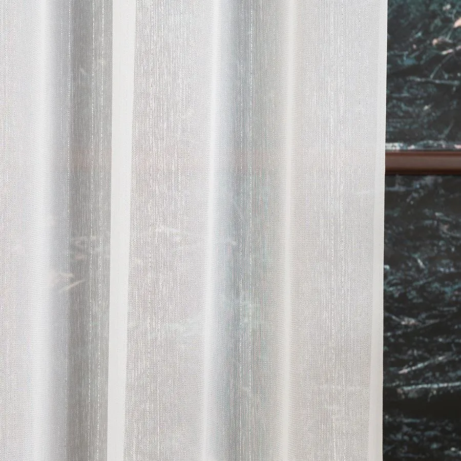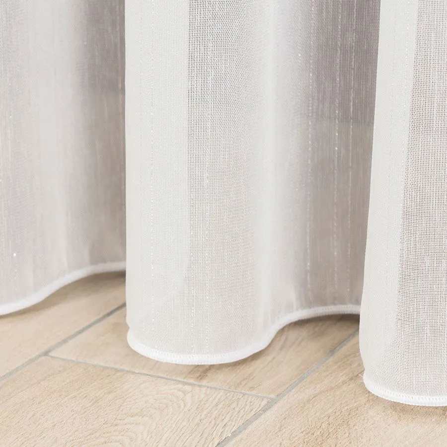 Firanka metrażowa, wykonana na delikatnym podkładzie fantazyjnym. Lekki i pięknie układający się materiał, zdobiony efektownie błyszczącą nitką w czterech wersjach kolorystycznych, idealnie wpasuje się zarówno w nowoczesne, jak i klasyczne wnętrze. Zagęszczony splot materiału świetnie uchroni przed słońcem i wiatrem jednocześnie nie tracąc na swej niezwykłej lekkości i zwiewności. Tak prosty i minimalistyczny wzór doda subtelności i przytulności wnętrzom.