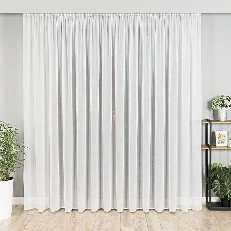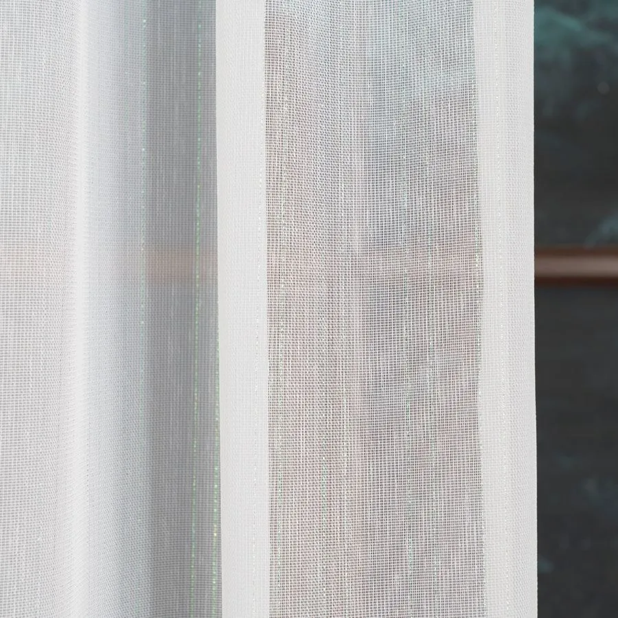 Firanka metrażowa, wykonana na delikatnym podkładzie fantazyjnym. Lekki i pięknie układający się materiał, zdobiony efektownie błyszczącą nitką w czterech wersjach kolorystycznych, idealnie wpasuje się zarówno w nowoczesne, jak i klasyczne wnętrze. Zagęszczony splot materiału świetnie uchroni przed słońcem i wiatrem jednocześnie nie tracąc na swej niezwykłej lekkości i zwiewności. Tak prosty i minimalistyczny wzór doda subtelności i przytulności wnętrzom.