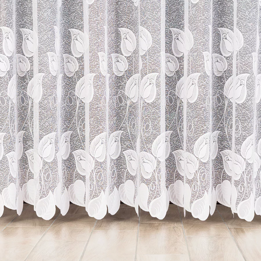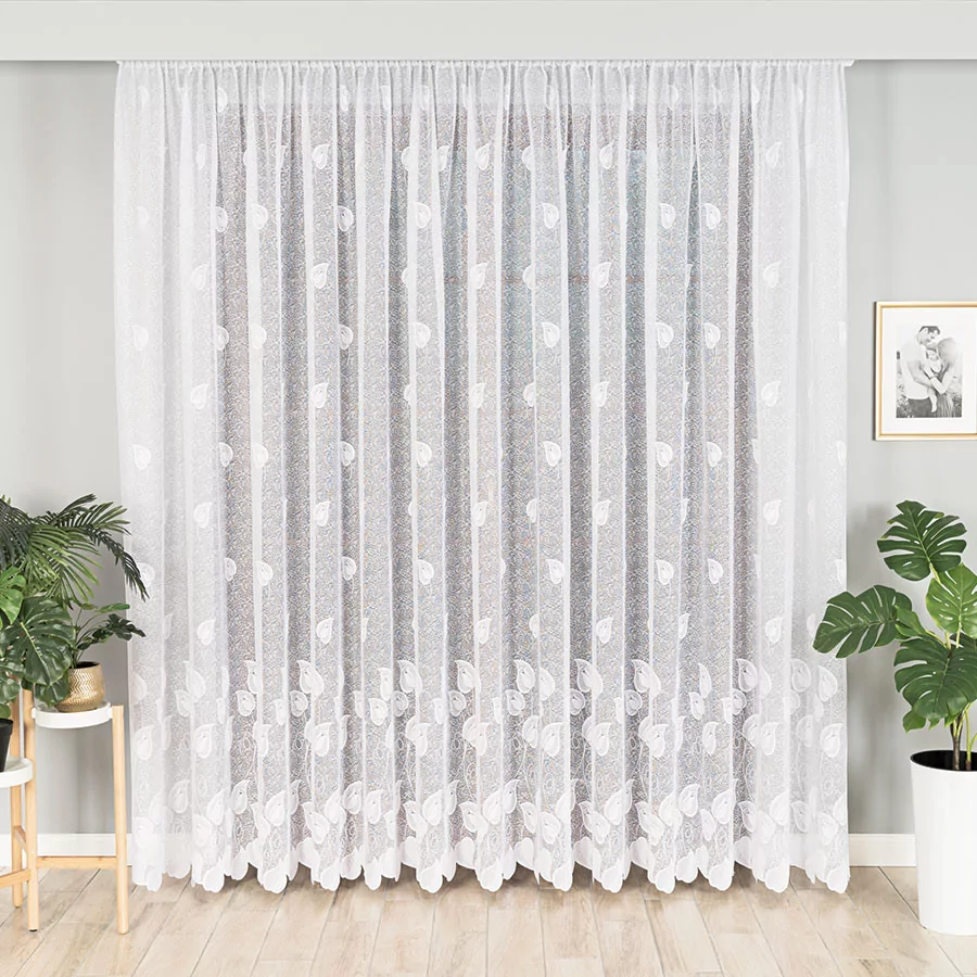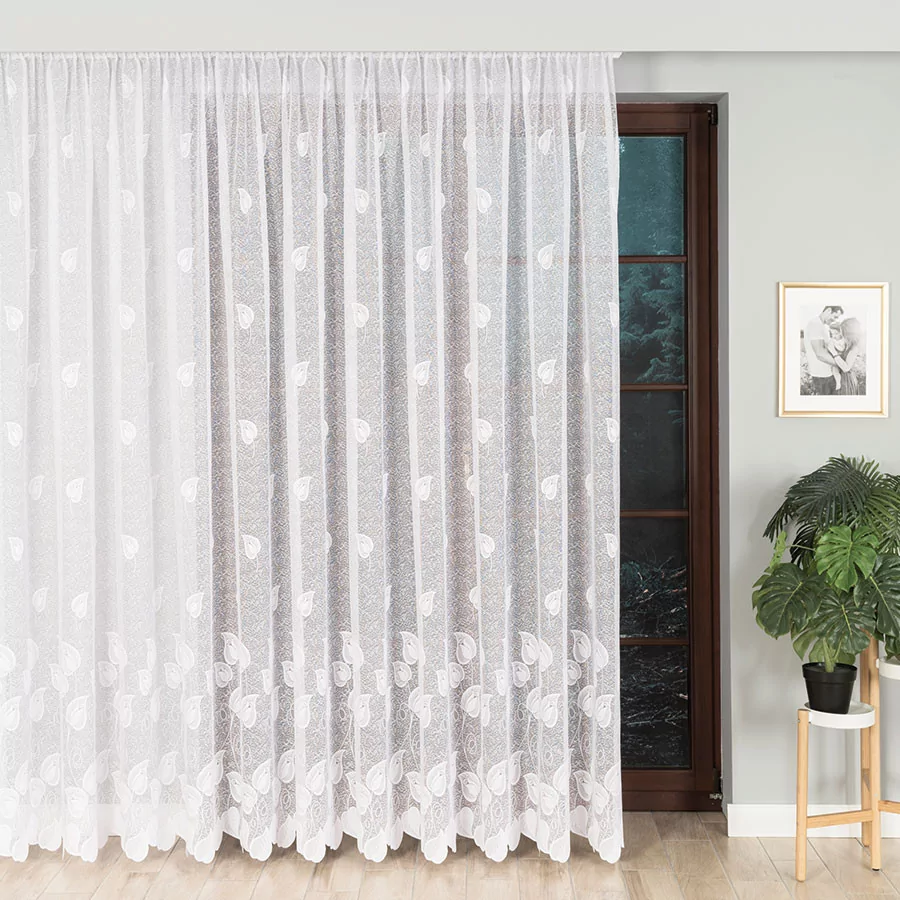 Firanka żakardowa dostępna w metrażu z modnym motywem liści. Trzy wysokości o wyboru, szerokość dowolna, dzięki czemu dopasujesz ją dokładnie do swojego okna. Firankę możesz zamówić z usługą szycia w naszej profesjonalnej szwalni - wybierz wykończenie, podaj wymiary, a otrzymasz uszytą i gotową do zawieszenia firankę. Wykorzystana do wykonania tego wzoru najwyższa jakość przędzy żakardowej sprawia, że materiał ten pięknie się układa. Niewątpliwym atutem tego materiału jest to, że nie wymaga on prasowania. Żakard cechuje się dobrą przepuszczalnością powietrza i promieni słonecznych.