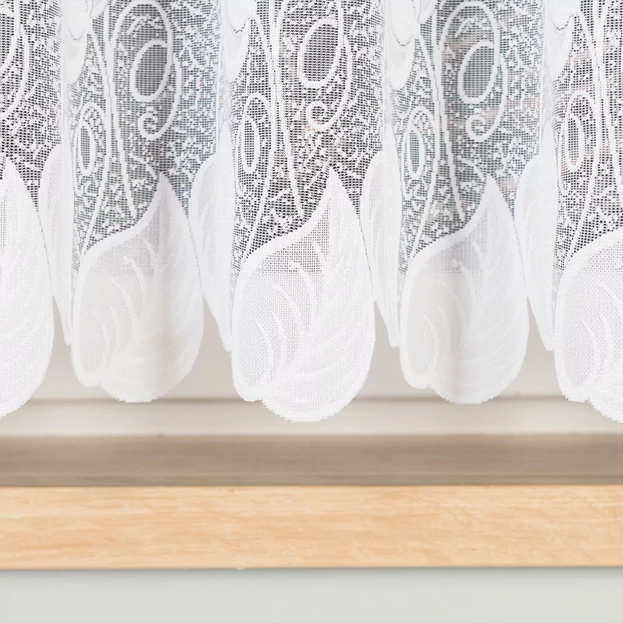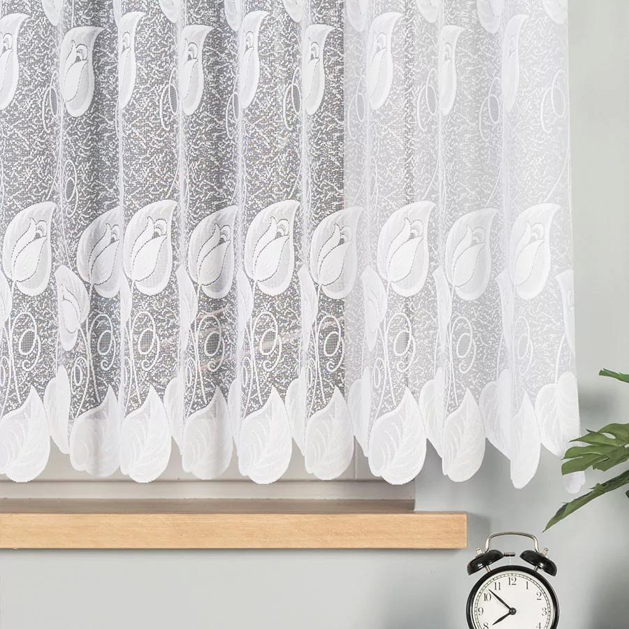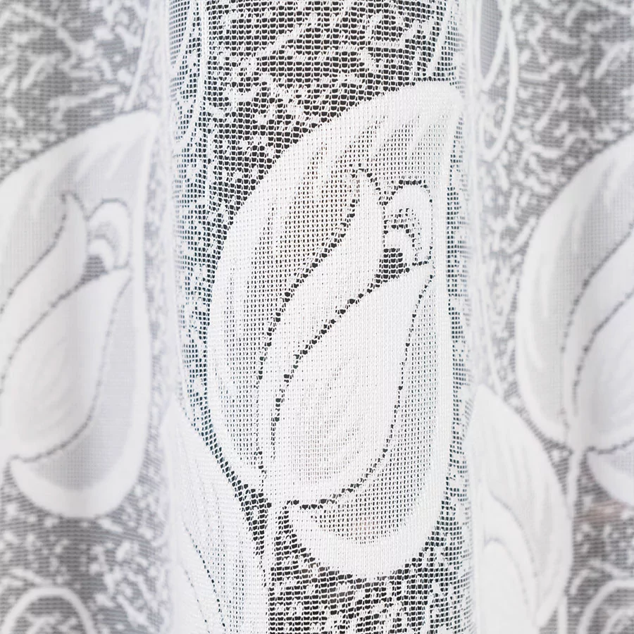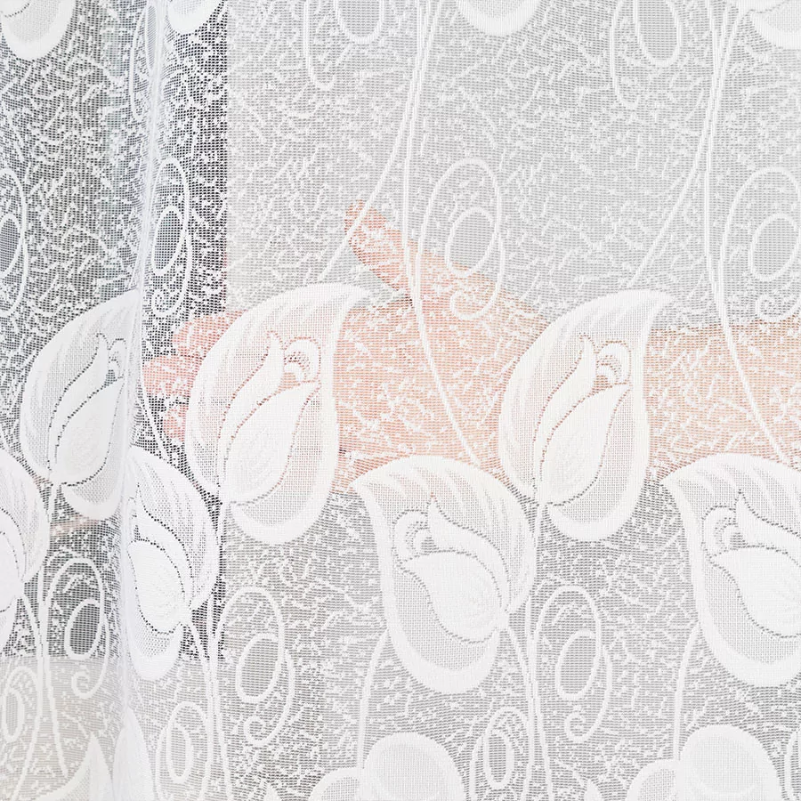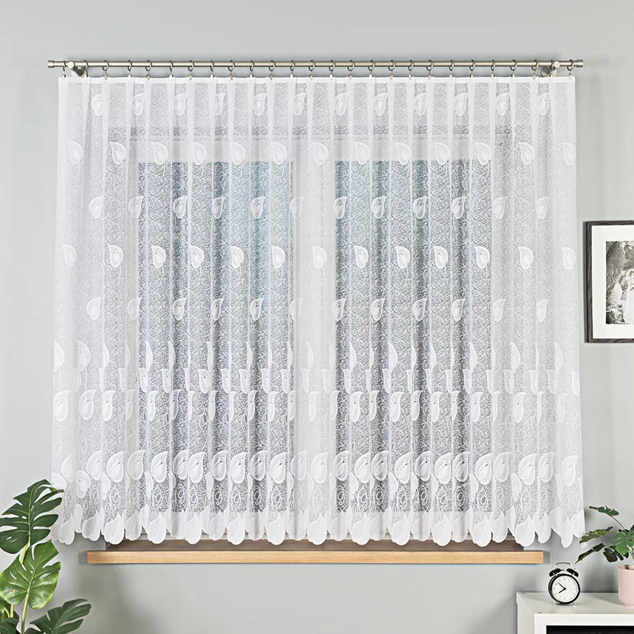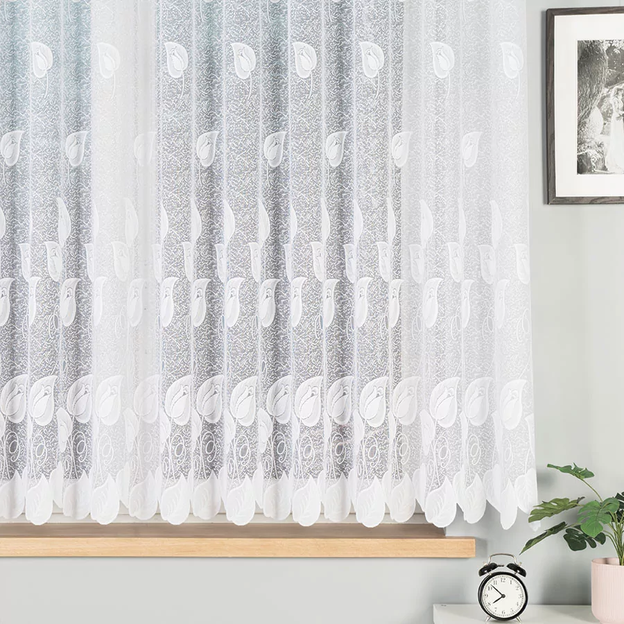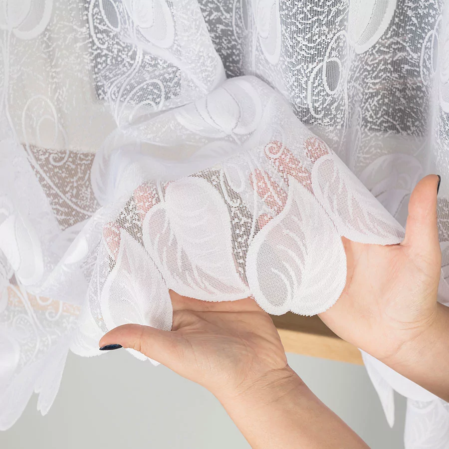 Firanka żakardowa dostępna w metrażu z modnym motywem liści. Trzy wysokości o wyboru, szerokość dowolna, dzięki czemu dopasujesz ją dokładnie do swojego okna. Firankę możesz zamówić z usługą szycia w naszej profesjonalnej szwalni - wybierz wykończenie, podaj wymiary, a otrzymasz uszytą i gotową do zawieszenia firankę. Wykorzystana do wykonania tego wzoru najwyższa jakość przędzy żakardowej sprawia, że materiał ten pięknie się układa. Niewątpliwym atutem tego materiału jest to, że nie wymaga on prasowania. Żakard cechuje się dobrą przepuszczalnością powietrza i promieni słonecznych.