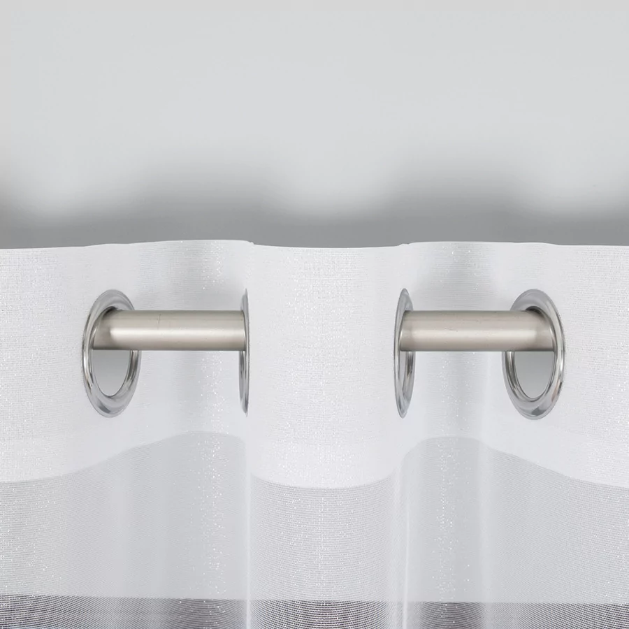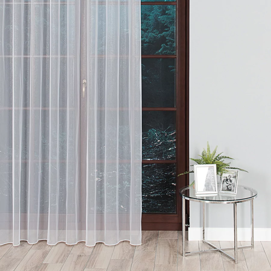 BRILLANTE to firana gotowa, wykończona na przelotkach. Dostępna w kilku rozmiarach tkanina będzie rzucać ciepły i przyjemny blask. Dodaj szyku i elegancji swojemu domowi dzięki firance z połyskującej markizety. Materiał ten jest niezwykle cienki i delikatny, co nadaje mu szlachetnego wyglądu. Markizeta dodaje pomieszczeniu lekkości, optycznie je powiększając. Wykonane z niego firanki dobrze przepuszczają światło i powietrze, chroniąc jednocześnie przed spojrzeniami sąsiadów i przechodniów.