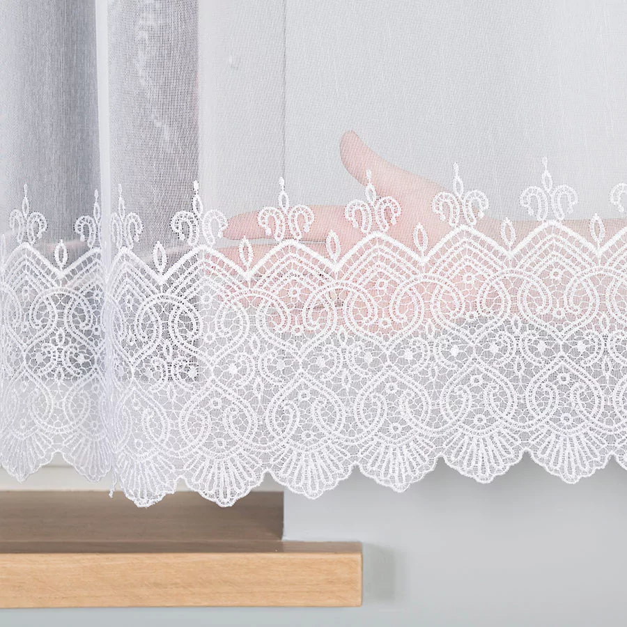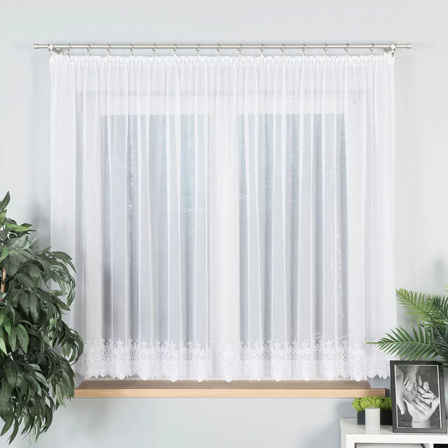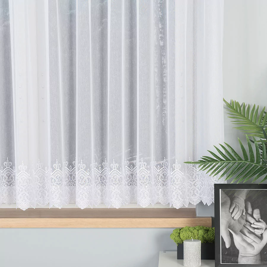 Firanka haftowana należy do eleganckich, romantycznych i tworzy bardzo przytulne wrażenie we wnętrzu. Firanka haftowana pasuje do każdego stylu dekoracji okna. Pasuje zarówno do klasycznych jak i nowoczesnych wnętrz. Jest elegancka i ponadczasowa. Efektownie ozdobi każde okno. Dobrze przepuszcza światło, nie zaciemnia pomieszczenia. Firanka jest łatwa w utrzymaniu, dobrze się pierze, nie traci fasonu i koloru.