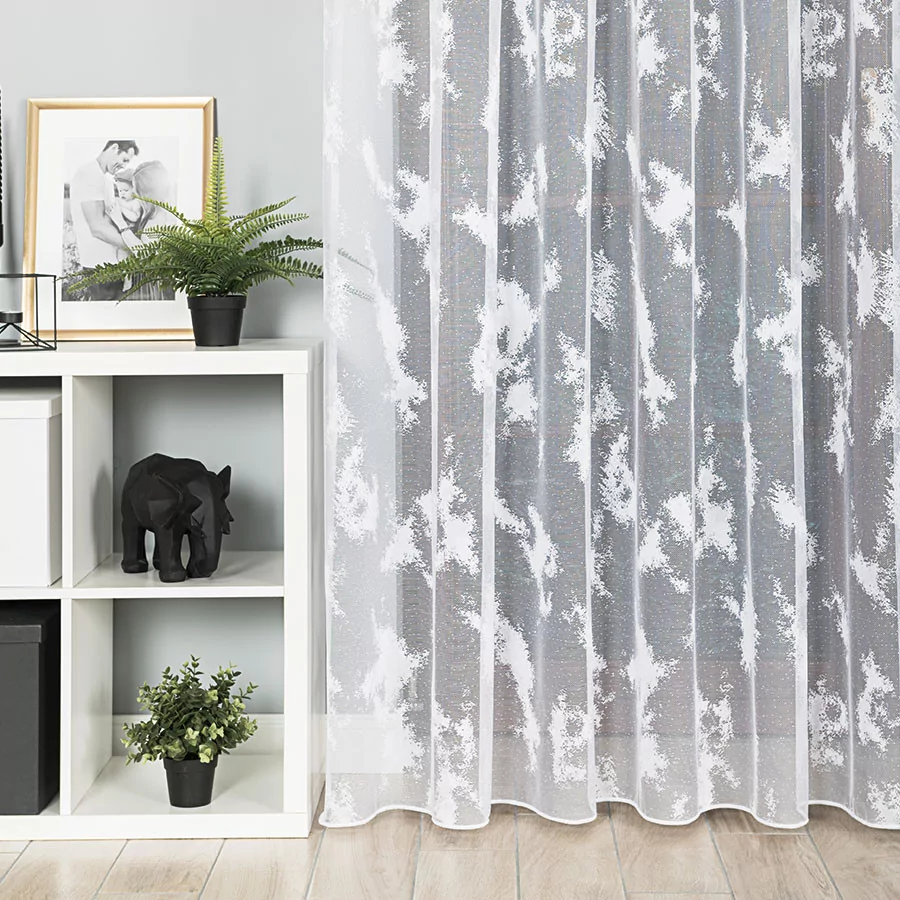 Firanka żakardowa z ołowianką, wykonana z dzianiny żakardowej. Ciekawy wzór na całej powierzchni materiału stworzy niebanalną dekorację okienną. Idealnie przepuszcza promienie słoneczne i zapewnia odpowiednią cyrkulację powietrza w pomieszczeniu. Dół firanki wykończony został ołowianym obciążnikiem, który zapewnia jej odpowiednie ułożenie w oknie. Firanka będzie elegancką propozycją do salonu, sypialni i innych pomieszczeń w naszym domu. Firankę możesz zamówić z usługą szycia w naszej profesjonalnej szwalni - wybierz wykończenie, podaj wymiary, a otrzymasz uszytą i gotową do zawieszenia firankę.