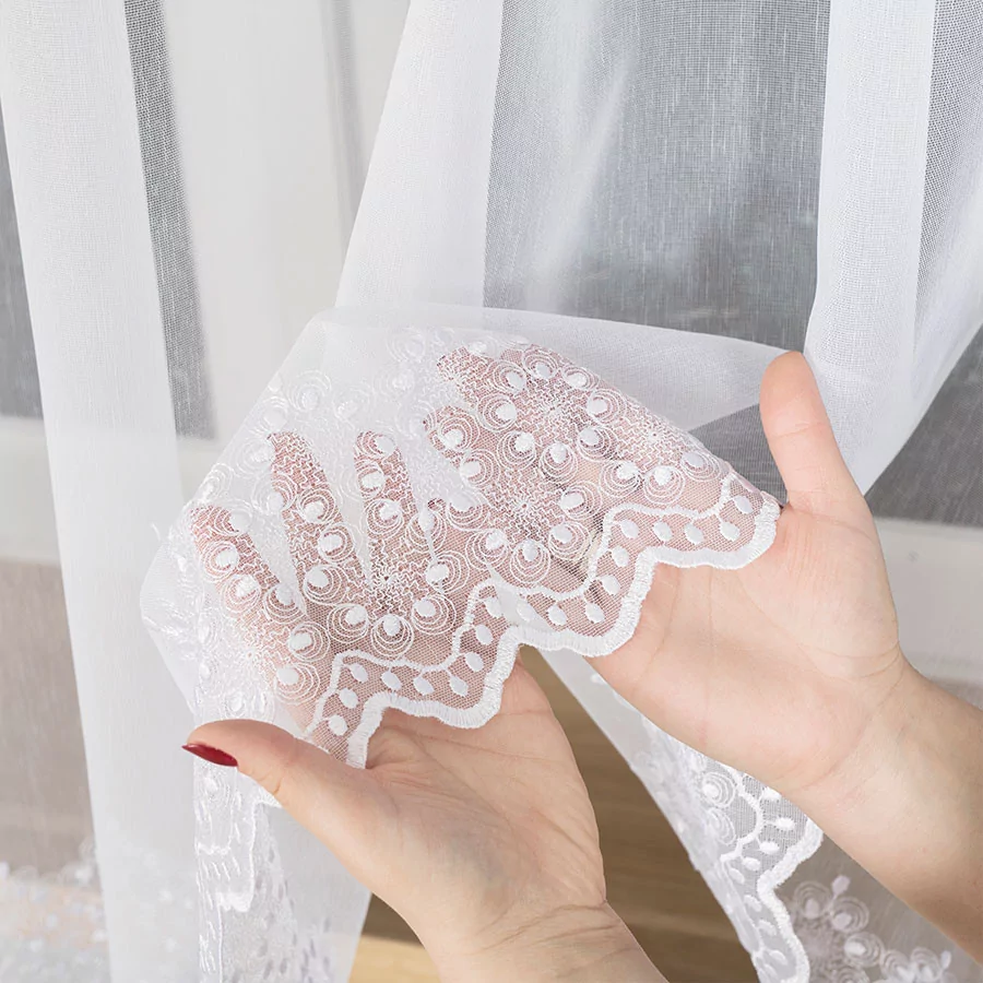 Firanki haftowane, w zależności od wzoru, będą doskonałą dekoracją okna w każdym pomieszczeniu. Haft kojarzy się zwykle z luksusem i elegancją, ale różnorodne formy haftu będą doskonale komponować się w modernistycznych wnętrzach. Bardzo przejrzysta firanka została wykonana na drobnym, siateczkowym podkładzie. Siateczka, na której wyhaftowany jest wzór tej firanki doskonale przepuszcza powietrze i wpuszcza do pomieszczenia dużo promieni słonecznych. Firanka doskonale się układa i z pewnością będzie idealną ozdobą Twojego okna.