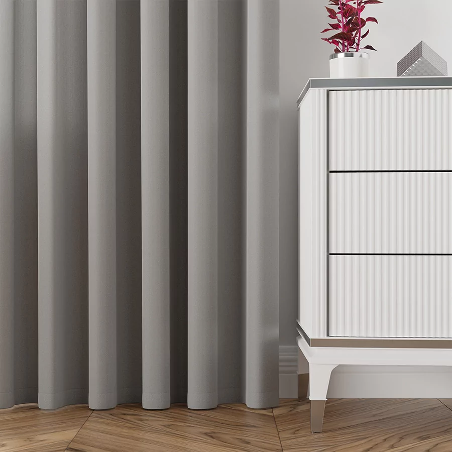 Tkaninę możesz zamówić jako sam materiał do dowolnego wykorzystania lub jako produkt uszyty na wymiar: tylko obszycie wszystkich brzegów, zasłona na taśmie marszczącej, zasłona na przelotkach itp.