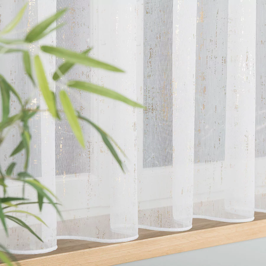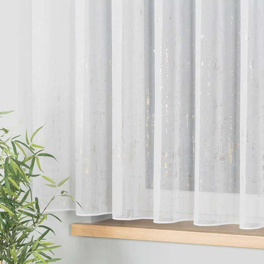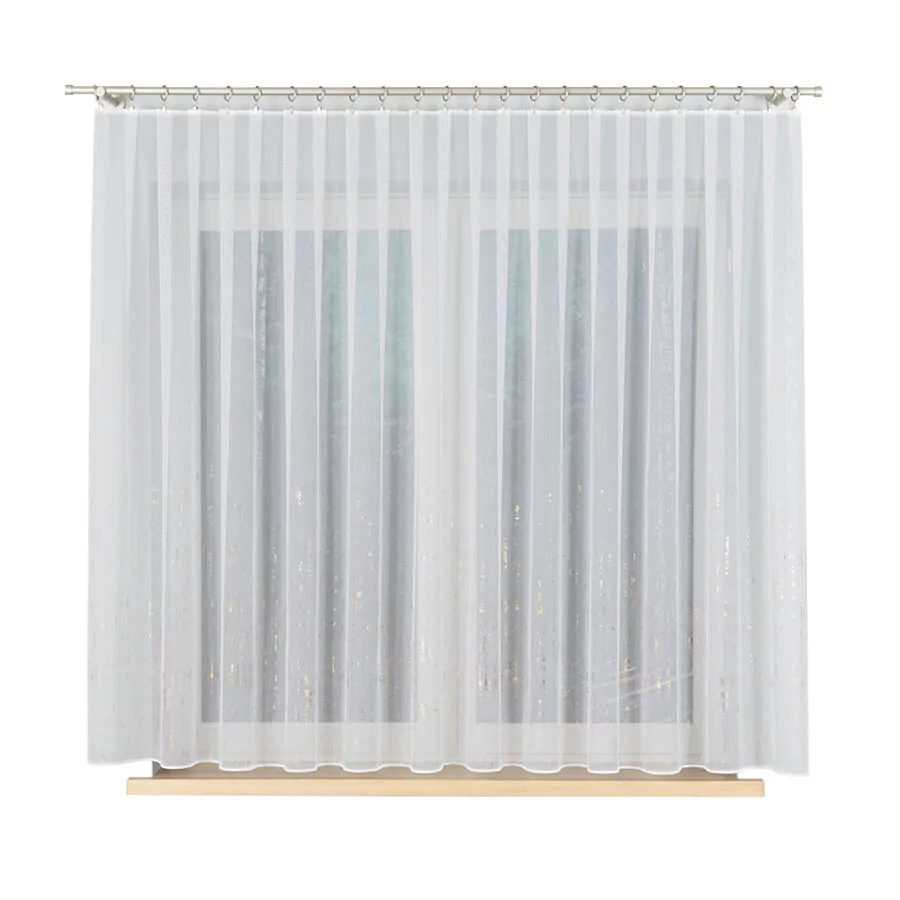 Jeśli szukamy dobrej i pasującej do domu ozdoby w atrakcyjnej cenie, jest to świetny wybór. Firana to bardzo subtelny dodatek który chroni przed wzrokiem sąsiadów, jedocześnie wpuszczając do wnętrza światło dzienne. Zatrzymaj się na chwilę i poznaj nasza propozycję wystroju Twojego okna. Dzianina fantazyjna o splocie tworzącym siateczkę. Pięknie mieniące się złote lub srebrne zdobienie ozdobi każde pomieszczenie i nada mu niepowtarzalnego charakteru. Sprawdzi się w nowoczesnej jak i klasycznej stylistyce. Doskonale zaprezentuje się w salonie, sypialni.