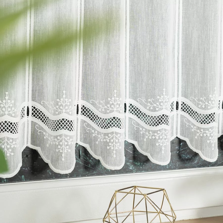 Zazdrostka panelowa z haftowaną aplikacją. Dostępna w metrażu w kolorze białym i naturalnym i w trzech wysokościach. Niezwykle delikatny i elegancki batyst, zdobiony delikatnym haftem nada wnętrzu szlachetnego wyglądu. Batyst dodaje pomieszczeniu lekkości, optycznie je powiększając. Wykonane z niego firanki przepuszczają światło, chroniąc jednocześnie przed spojrzeniami sąsiadów i przechodniów.