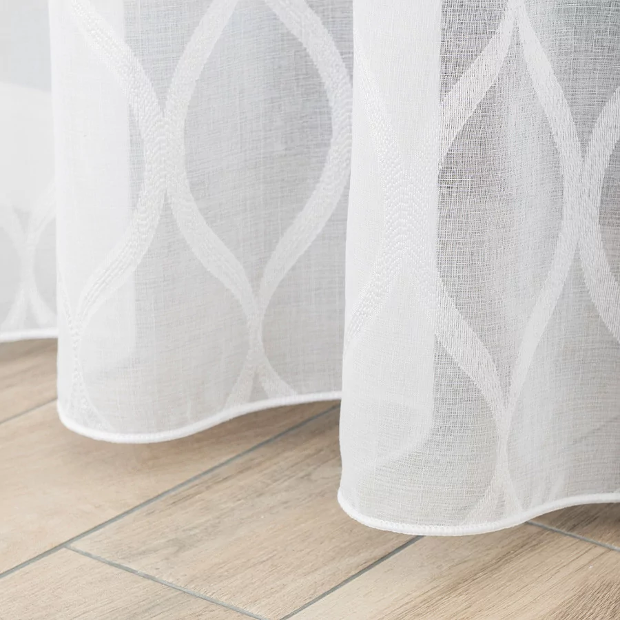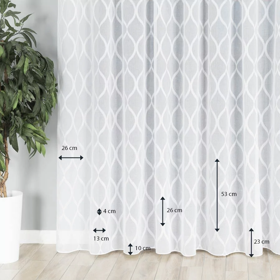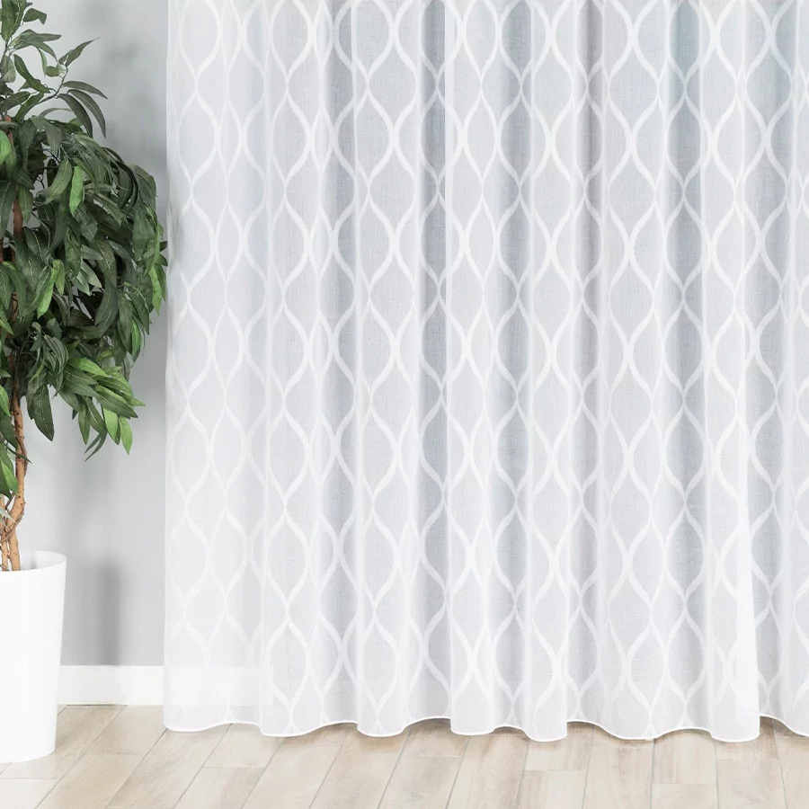 Firanka MODELLI to coś dla miłośników dużych i wyrazistych wzorów. Dodatkowego uroku nadaje jej podkład batystowy, który pięknie wygląda na marszczeniu typu Smok. Całość tworzy niezwykle efektowną dekorację okienną. Szlachetny wygląd batystu, nadaje pomieszczeniom lekkości, szyku i elegancji. Materiał umiarkowanie przepuszcza światło, jednocześnie chroniąc przed spojrzeniami przechodniów. Można go prać w pralce w niskiej temperaturze. Nie można przejść obok tego modelu obojętnie.