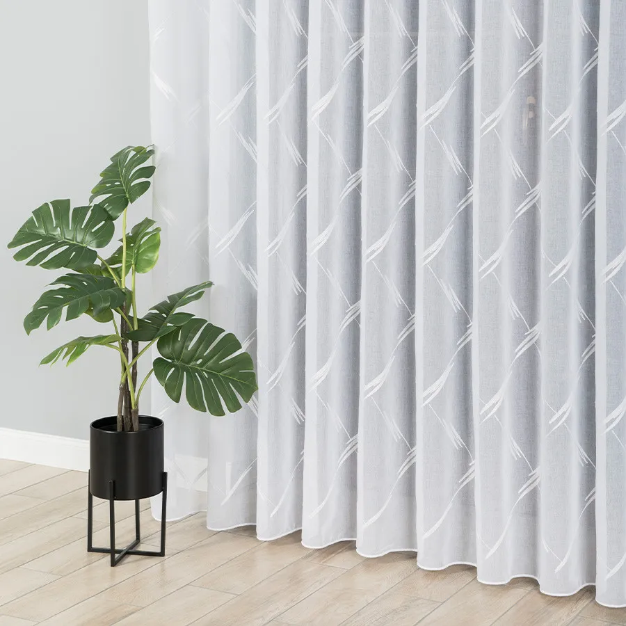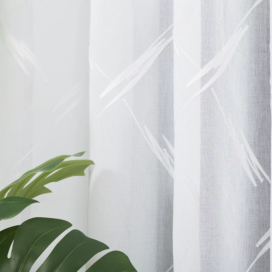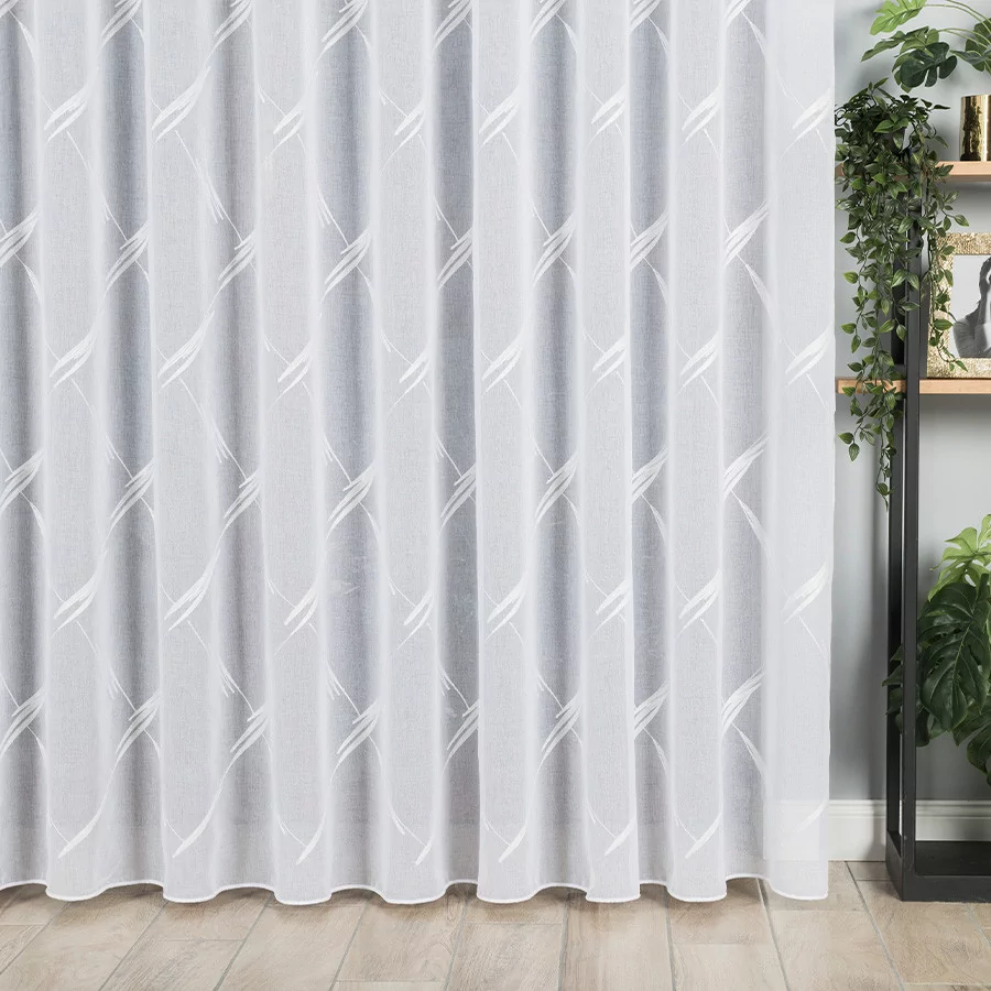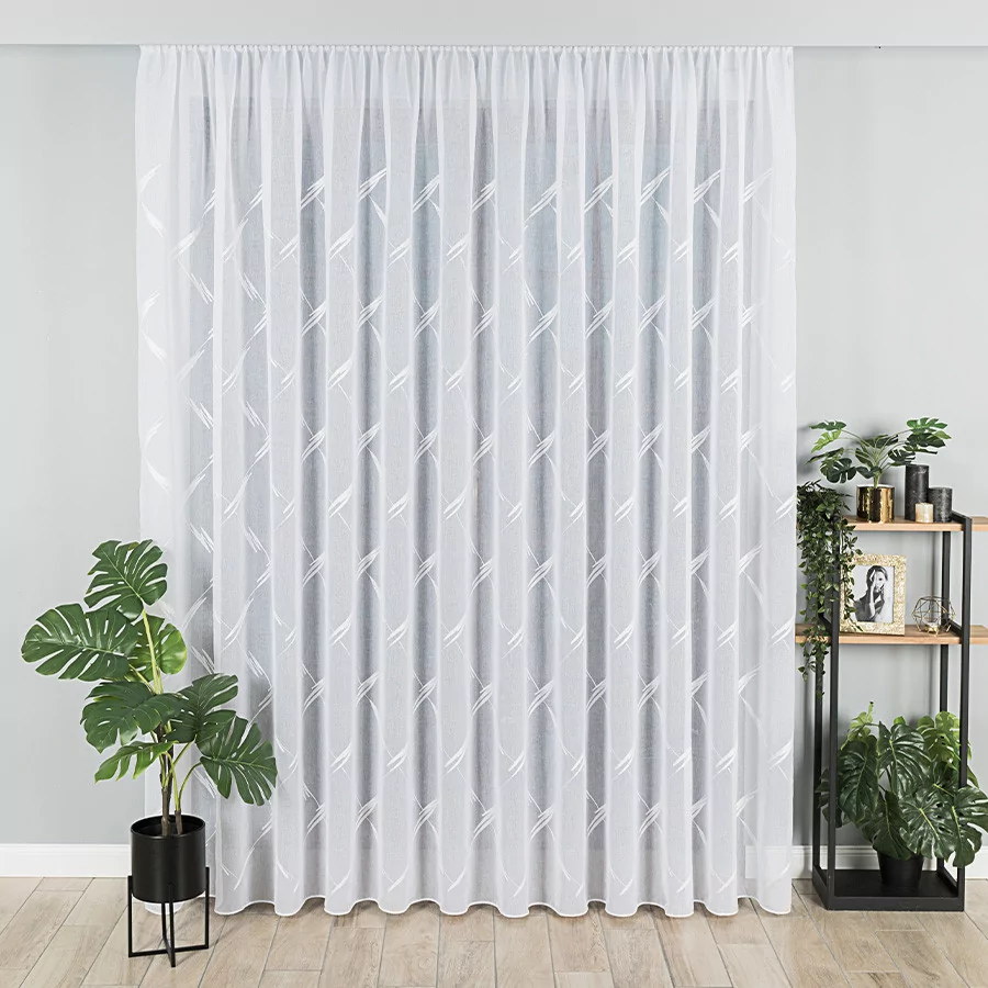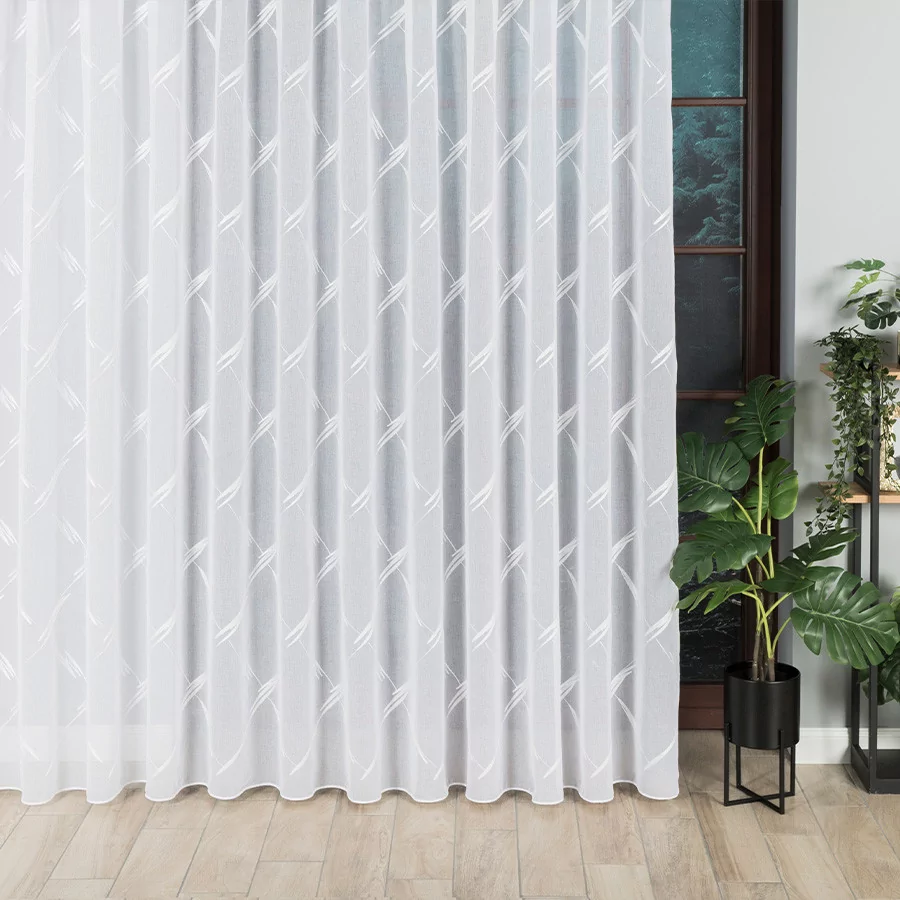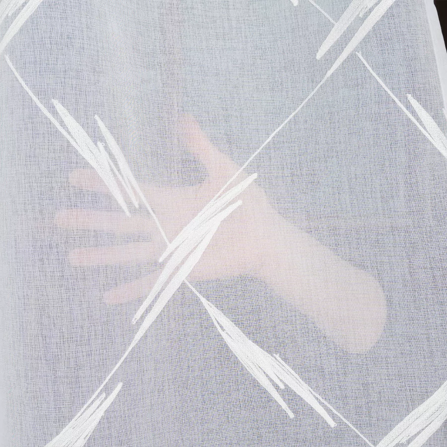 LOSANGA to nowoczesna firana, wykonana na białym podkładzie batystowym, który wykończony został pięknym haftem, tworzącym ciekawą abstrakcję. Dostępna w wielu rozmiarach, dzięki czemu na pewno znajdziesz tę, która będzie pasować do Twojego wnętrza.