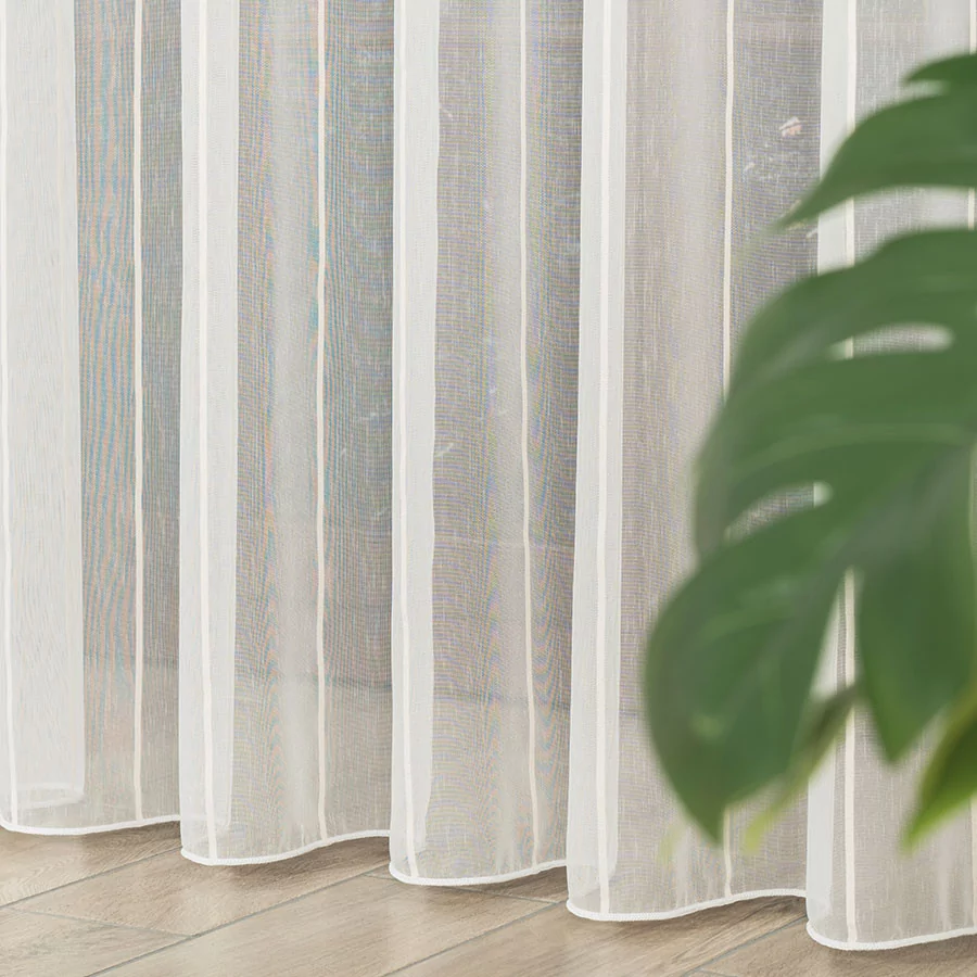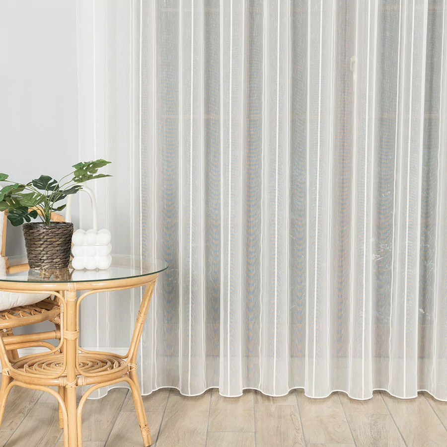 Firanka metrażowa wykonana na delikatnym podkładzie fantazyjnym z ołowianką, zdobiona pionowymi pasami w różnych kolorach. Dostępna w czterech wersjach kolorystycznych. Firankę możesz zamówić z usługą szycia w naszej profesjonalnej szwalni - wybierz wykończenie, podaj wymiary, a otrzymasz uszytą i gotową do zawieszenia firankę.
