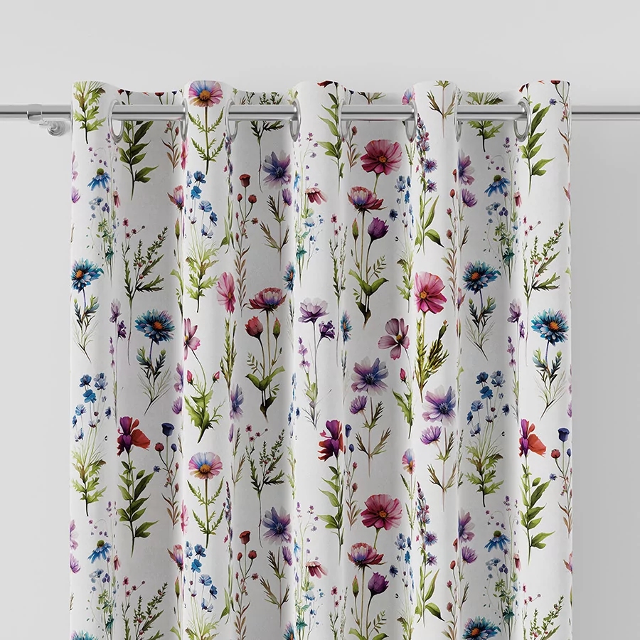 KWIATY POLNE - tkanina dekoracyjna typu MILAS. Gładki, półzaciemniający materiał z pięknym motywem roślinnym w żywych kolorach. Wysoka gramatura i gęstość materiału gwarantują dość mocne zaciemnienie. Materiał jest miękki dzięki czemu wspaniale się układa, tworząc piękną dekorację. Materiał idealny na zasłony, poszewki lub narzuty. Tkaninę KWIATY POLNE MILAS zamówisz jako materiał bez wykończenia lub produkt uszyty na wymiar w naszej profesjonalnej szwalni. Wystrój okien zasłonami KWIATY POLNE dopełnią firanki, poszewki i obrus z tej samej serii. Pomyśl, jak rewelacyjnie będzie wyglądało Twoje wnętrze z dekoracjami, które do siebie pasują.