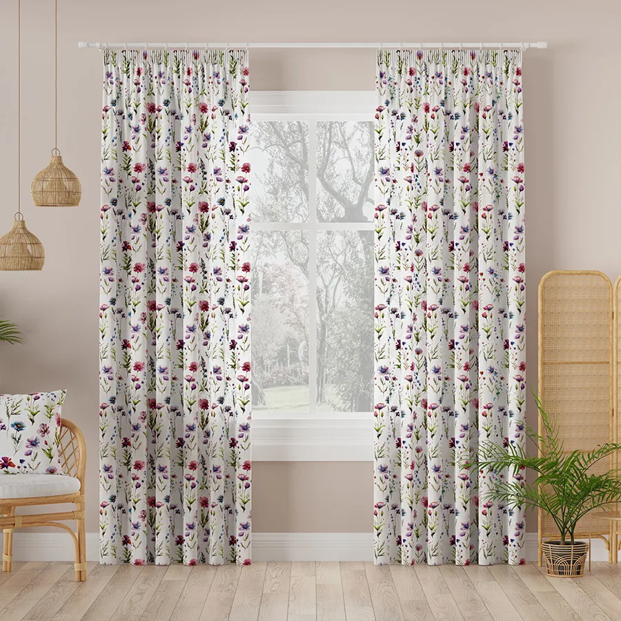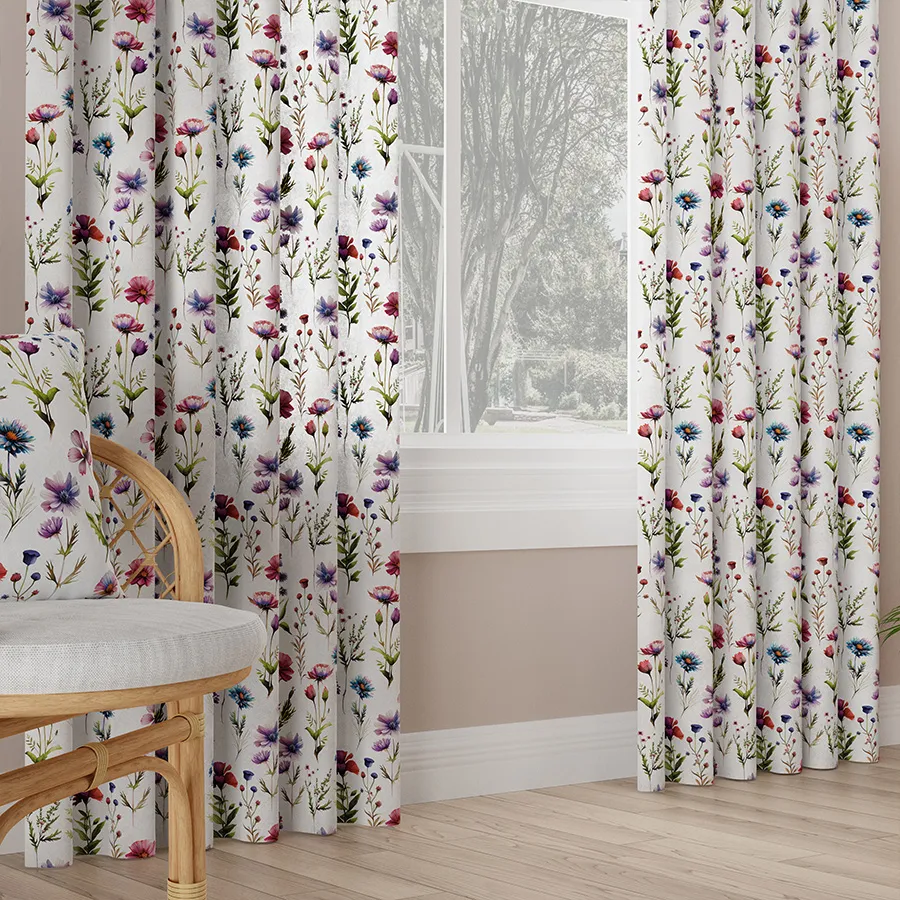KWIATY POLNE - tkanina dekoracyjna typu MILAS. Gładki, półzaciemniający materiał z pięknym motywem roślinnym w żywych kolorach. Wysoka gramatura i gęstość materiału gwarantują dość mocne zaciemnienie. Materiał jest miękki dzięki czemu wspaniale się układa, tworząc piękną dekorację. Materiał idealny na zasłony, poszewki lub narzuty. Tkaninę KWIATY POLNE MILAS zamówisz jako materiał bez wykończenia lub produkt uszyty na wymiar w naszej profesjonalnej szwalni. Wystrój okien zasłonami KWIATY POLNE dopełnią firanki, poszewki i obrus z tej samej serii. Pomyśl, jak rewelacyjnie będzie wyglądało Twoje wnętrze z dekoracjami, które do siebie pasują.