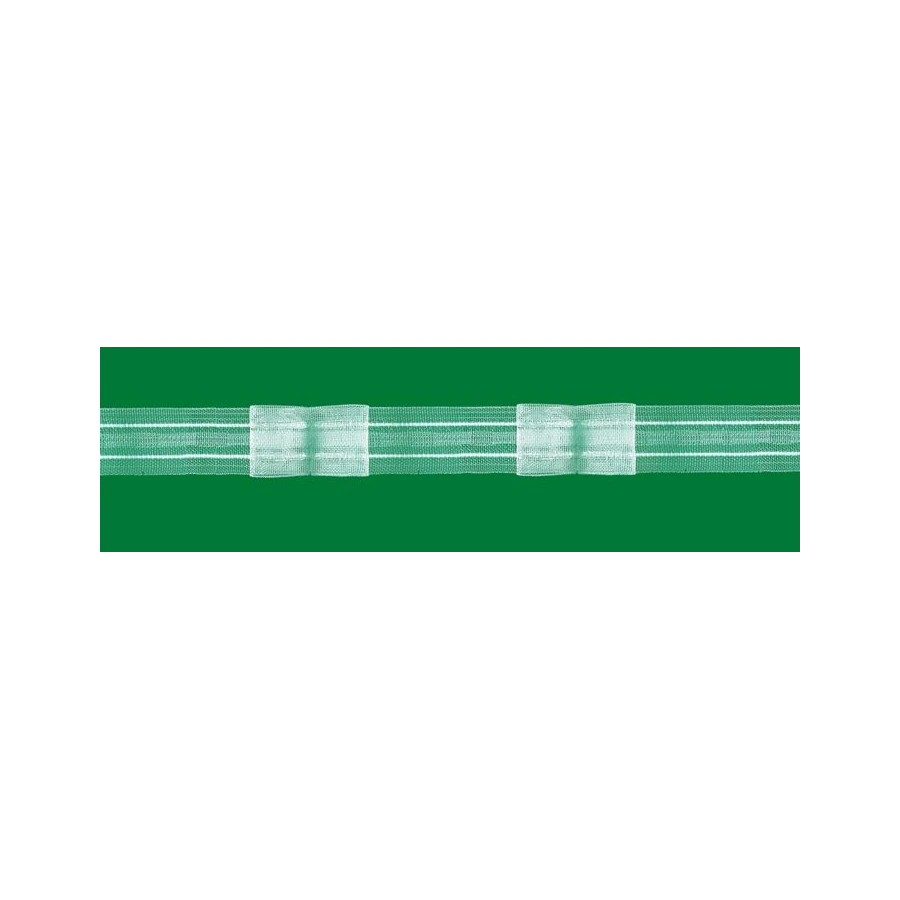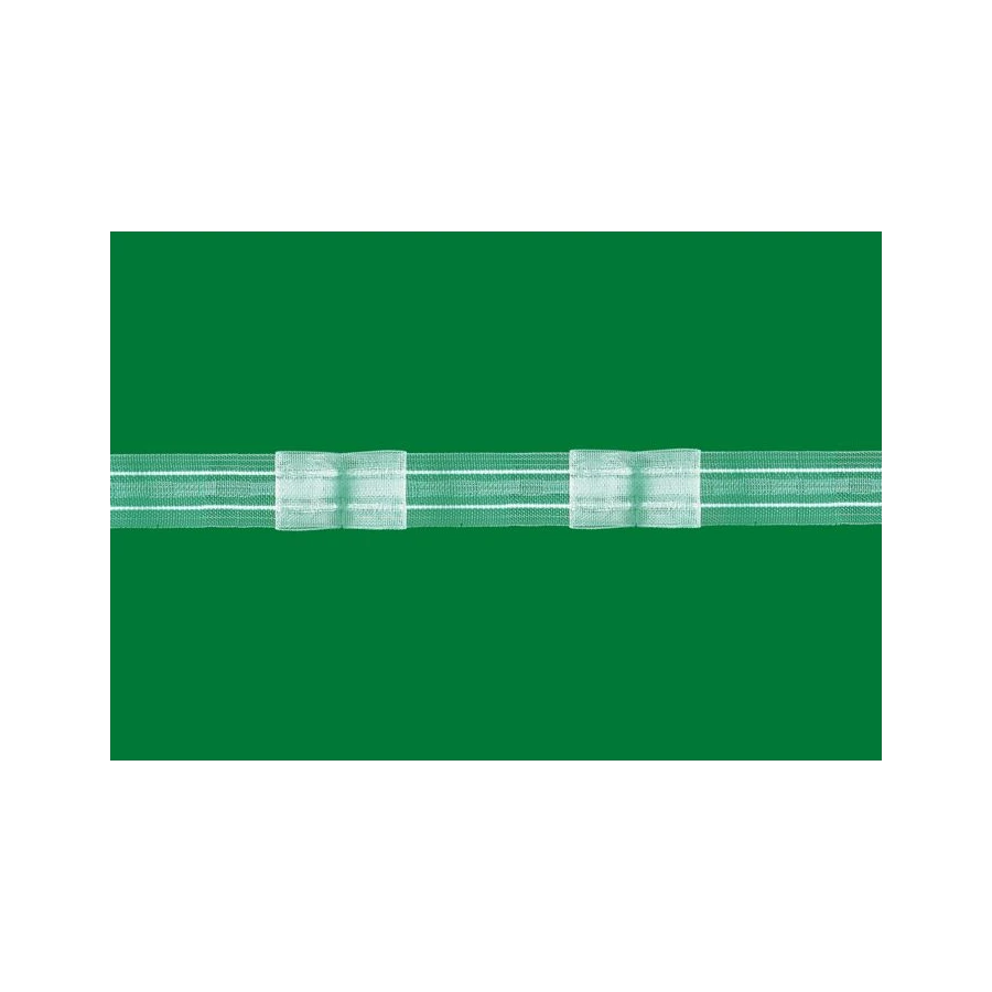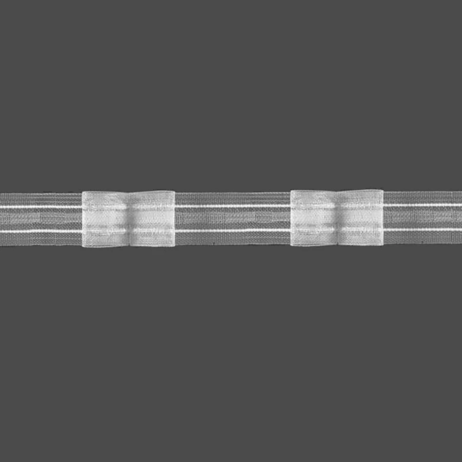 Taśma marszcząca podwójna zakładka, transparentna z białym sznurkiem. Taśma marszcząca ułatwia ułożenie firan, czy zasłon na karniszu. Ma ona uniwersalne mocowanie, na tzw. żabki, agrafki lub haczyki. Taśmę należy wszyć na prosto to firanki lub zasłony, a następnie pociągnąć za sznureczki, aby uzyskać odpowiedni efekt marszczenia. Zalecamy zakupić około 10 cm więcej taśmy niż materiału.