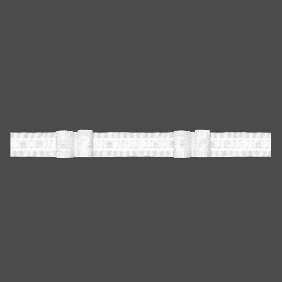 Taśma marszcząca podwójna zakładka. Taśma marszcząca ułatwia ułożenie firan, czy zasłon na karniszu. Ma ona uniwersalne mocowanie, na tzw. żabki, agrafki lub haczyki. Taśmę należy wszyć na prosto to firanki lub zasłony, a następnie pociągnąć za sznureczki, aby uzyskać odpowiedni efekt marszczenia. Zalecamy zakupić około 10 cm więcej taśmy niż materiału.