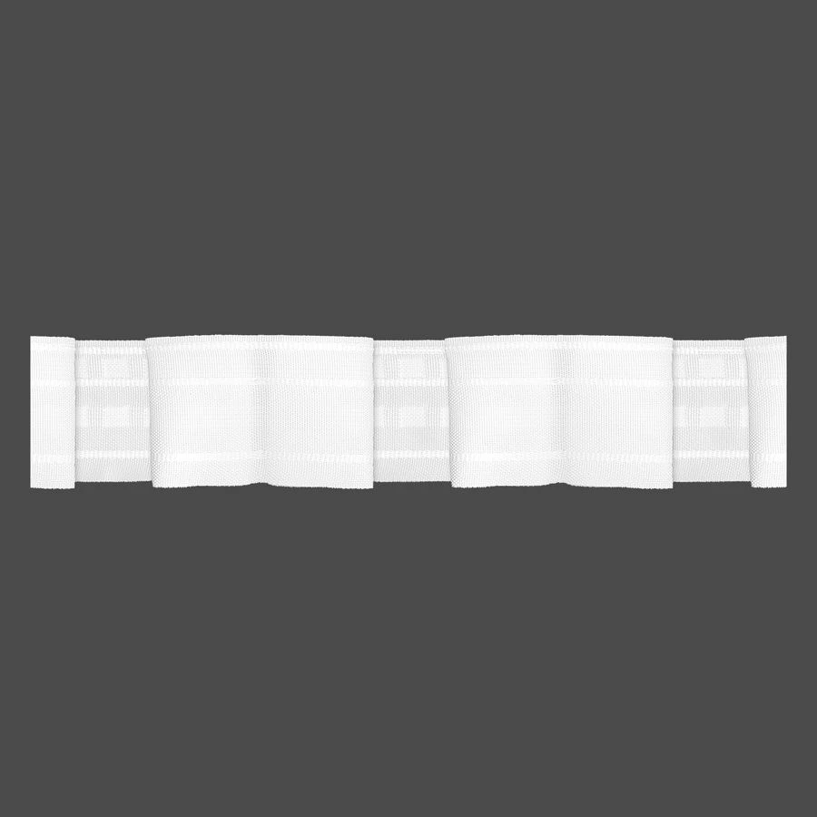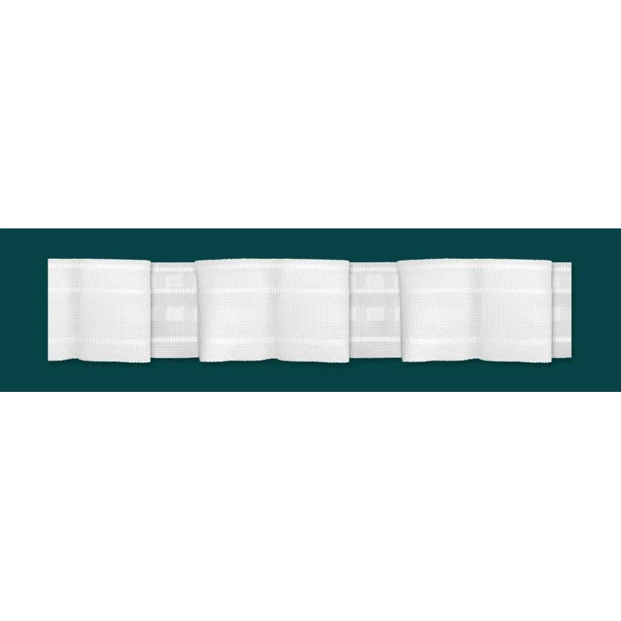 Taśma marszcząca podwójna zakładka, biała. Taśma marszcząca ułatwia ułożenie firan, czy zasłon na karniszu. Ma ona uniwersalne mocowanie, na tzw. żabki, agrafki lub haczyki. Taśmę należy wszyć na prosto to firanki lub zasłony, a następnie pociągnąć za sznureczki, aby uzyskać odpowiedni efekt marszczenia. Zalecamy zakupić około 10 cm więcej taśmy niż materiału.