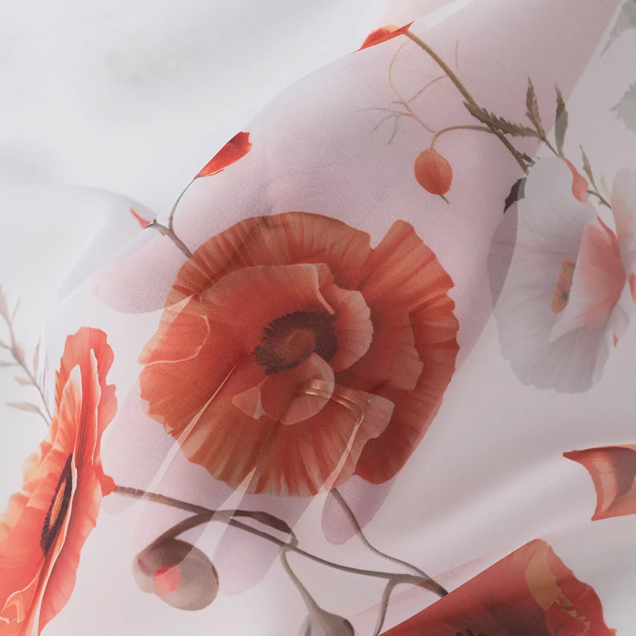 Firanka woalowa drukowana MAKI wykonana z najwyższej jakości materiału, zdobiona przepięknym motywem polnych kwiatów. Fantazyjna dzianina, zwana też woalem, to niezwykle lekki, delikatnie połyskujący materiał, który znakomicie się układa – wszystko to sprawia, że tkanina doskonale nadaje się do szycia lambrekinów czy firanek. Tkanina w uniwersalnym, białym kolorze z kolorowym motywem roślinnym, świetnie sprawdzi się nie tylko w nowoczesnych, ale również tradycyjnych wnętrzach.