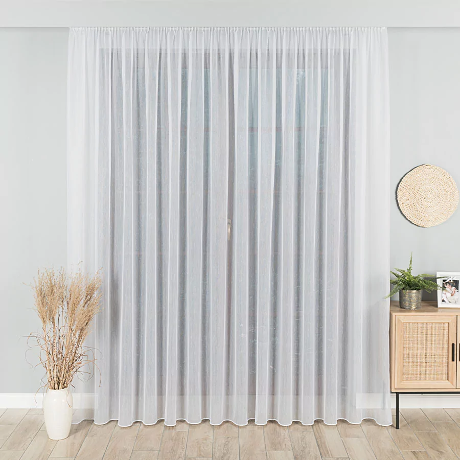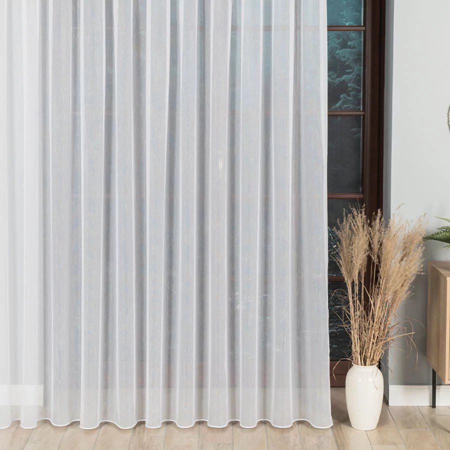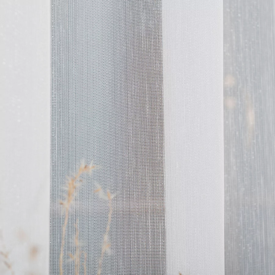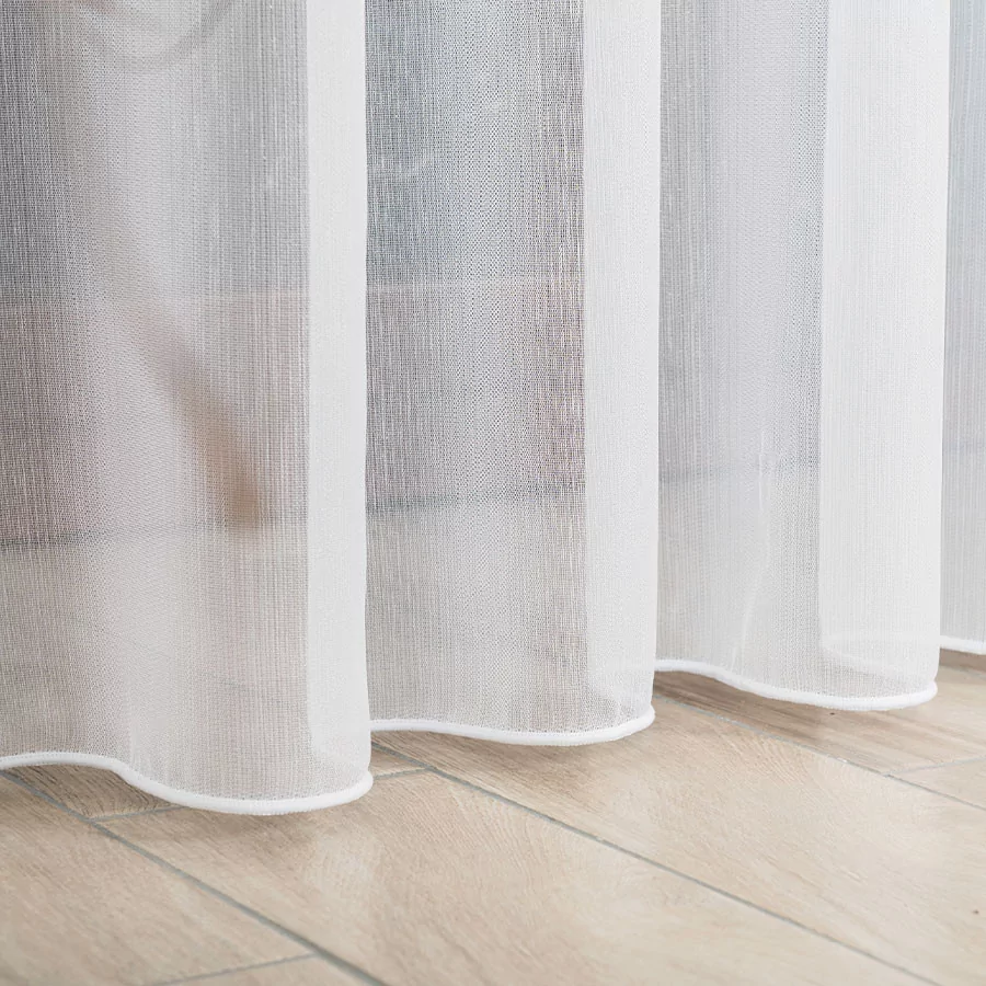 Firanka metrażowa, dobrze przepuszczająca powietrze i promienie słoneczne. Pięknie się układa. Idealna propozycja na zwieńczenie procesów aranżacyjnych w pokojach dziennych i salonach. Zagęszczony splot delikatnego, siateczkowego podkładu dostępny jest w trzech kolorach. Każdy z nich zdobiony jest nabłyszczaną nicią. Tak prosty i minimalistyczny wzór, który doda subtelności i przytulności wnętrzom. Firankę możesz zamówić z usługą szycia w naszej profesjonalnej szwalni - wybierz wykończenie, podaj wymiary, a otrzymasz uszytą i gotową do zawieszenia firankę.
