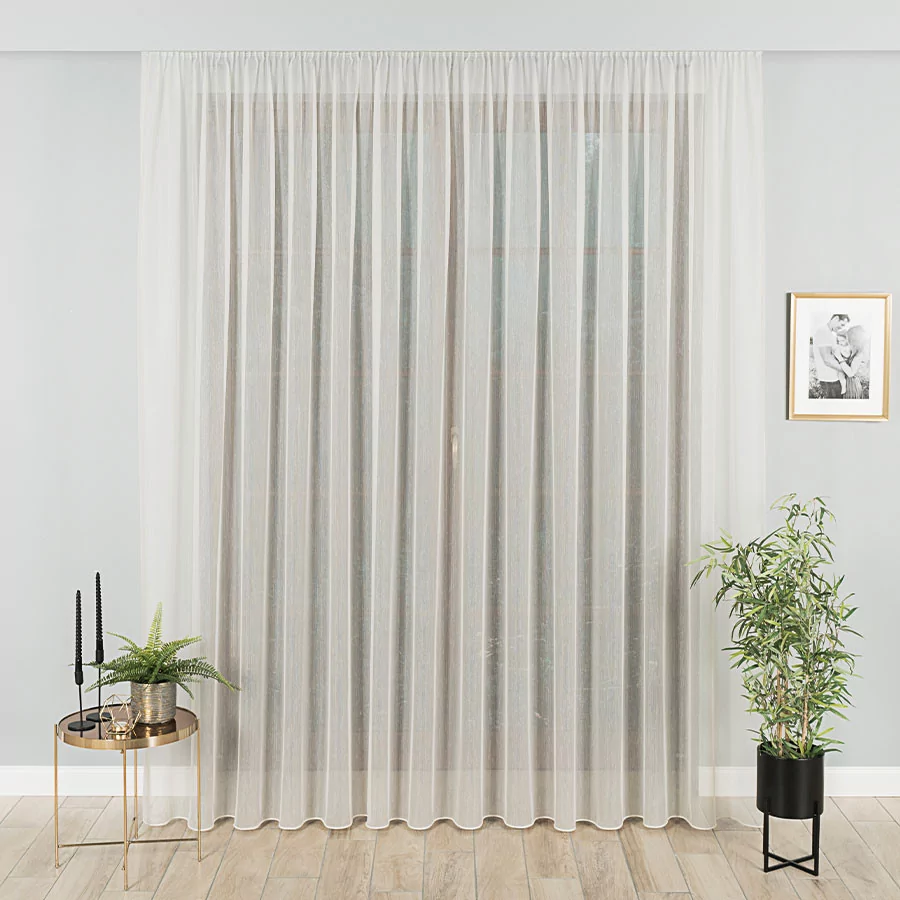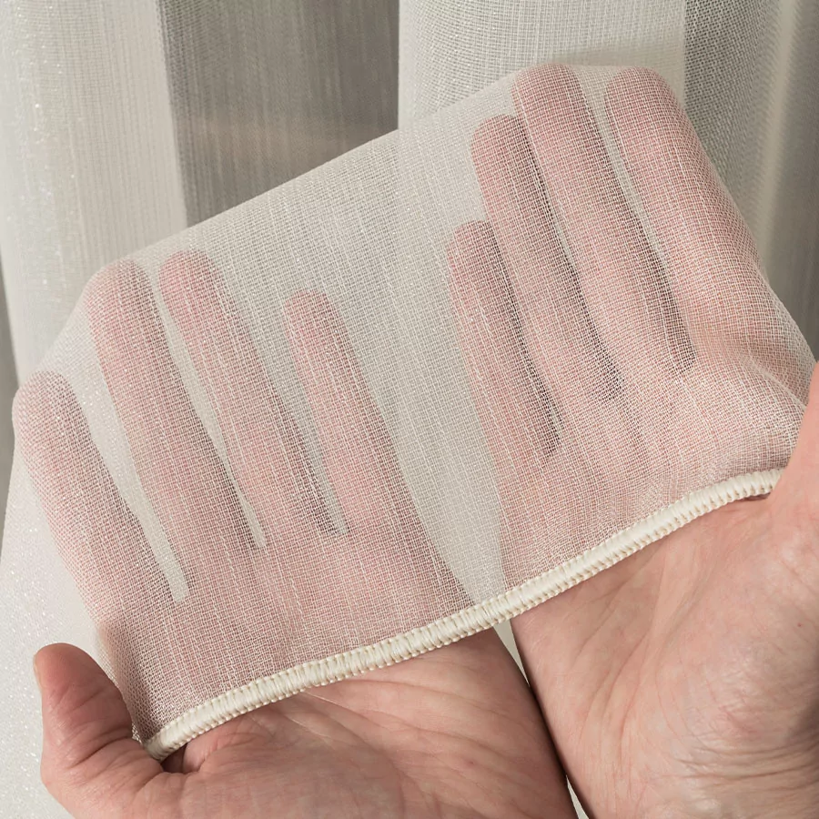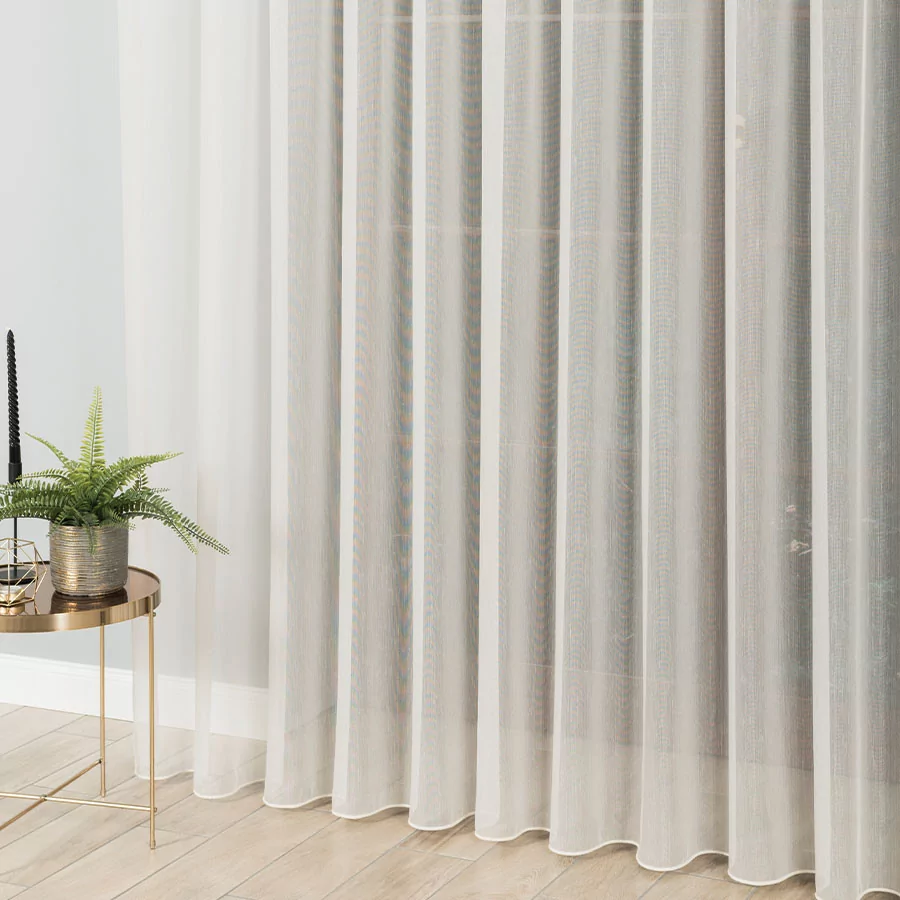 Firanka metrażowa, dobrze przepuszczająca powietrze i promienie słoneczne. Pięknie się układa. Idealna propozycja na zwieńczenie procesów aranżacyjnych w pokojach dziennych i salonach. Zagęszczony splot delikatnego, siateczkowego podkładu dostępny jest w trzech kolorach. Każdy z nich zdobiony jest nabłyszczaną nicią. Tak prosty i minimalistyczny wzór, który doda subtelności i przytulności wnętrzom. Firankę możesz zamówić z usługą szycia w naszej profesjonalnej szwalni - wybierz wykończenie, podaj wymiary, a otrzymasz uszytą i gotową do zawieszenia firankę.
