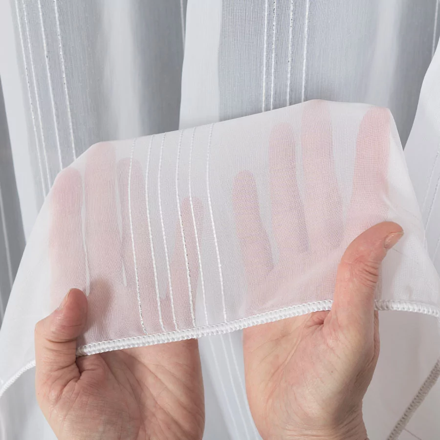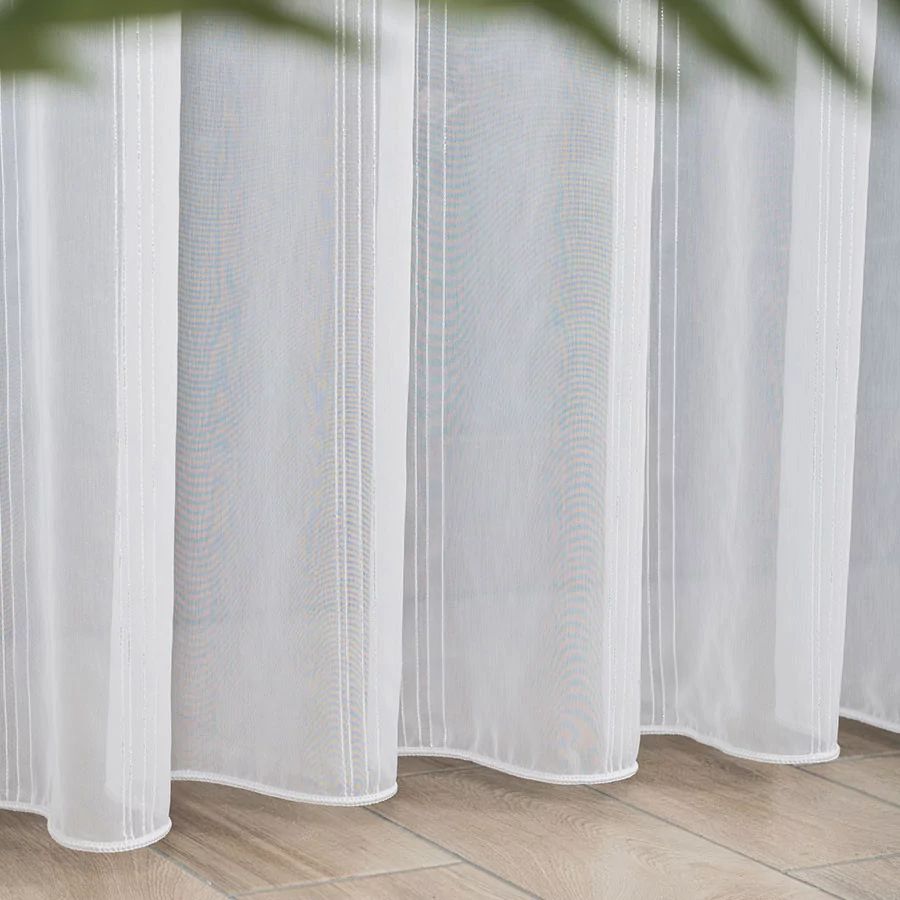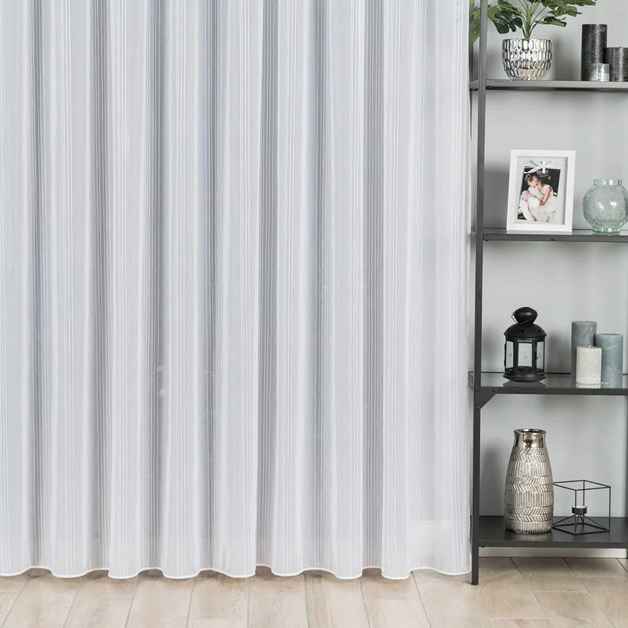 Firanka metrażowa wykonana na delikatnym podkładzie fantazyjnym z ołowianką, zdobiona pionowymi pasami. Dostępna w dwóch wersjach kolorystycznych. Lekki i pięknie układający się materiał idealnie wpasuje się zarówno w nowoczesne, jak i klasyczne wnętrze. Dzianina fantazyjna, jest tkaniną delikatną oraz zwiewną - idealną do uzupełnienia wystroju okien. Doskonale się układa i pozwala stworzyć harmonijne wnętrze. Firankę możesz zamówić z usługą szycia w naszej profesjonalnej szwalni - wybierz wykończenie, podaj wymiary, a otrzymasz uszytą i gotową do zawieszenia firankę.