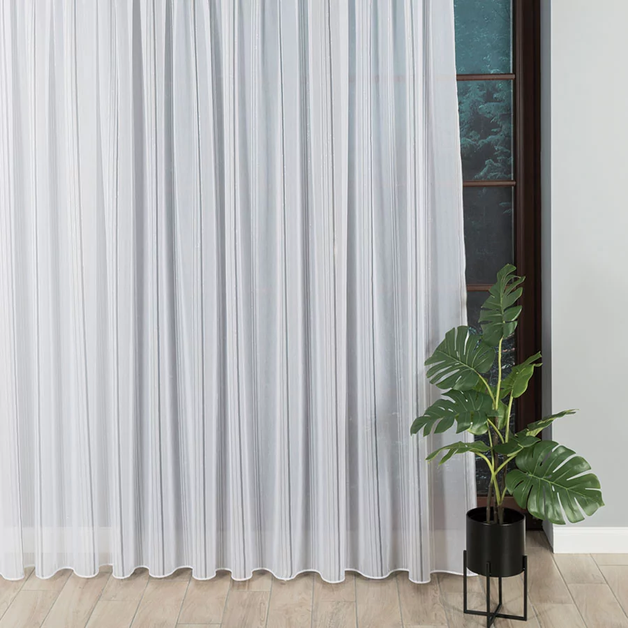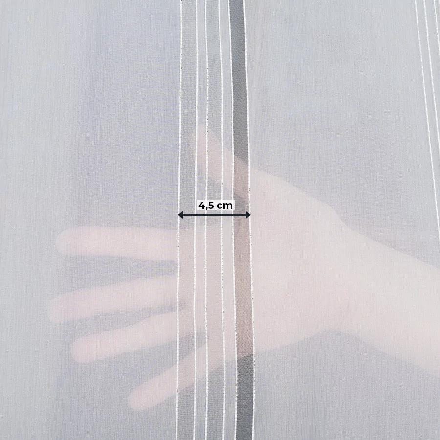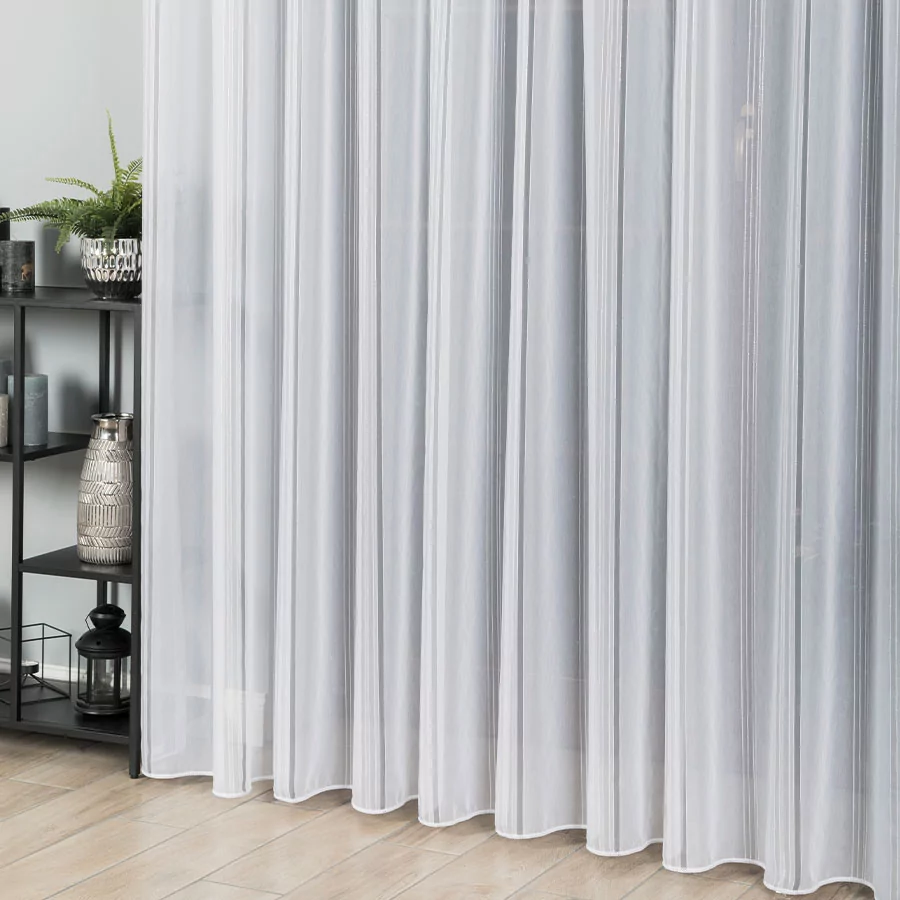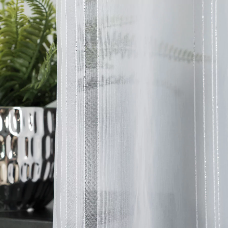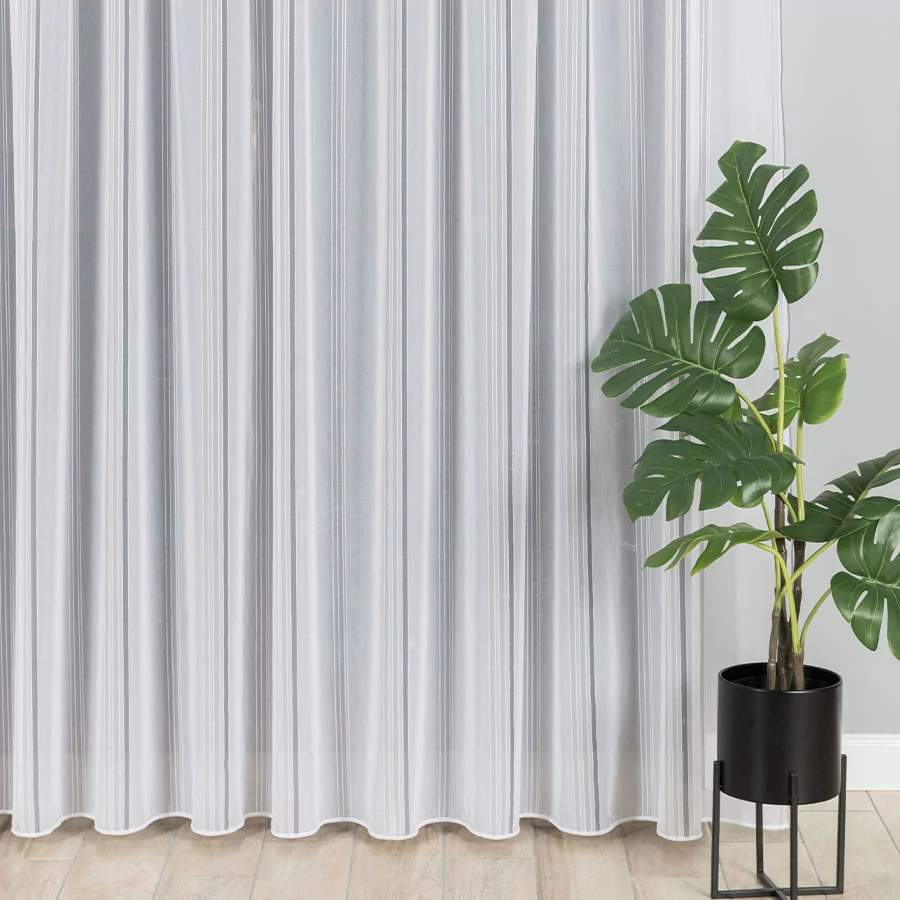 Firanka metrażowa wykonana na delikatnym podkładzie fantazyjnym z ołowianką, zdobiona pionowymi pasami. Dostępna w dwóch wersjach kolorystycznych. Lekki i pięknie układający się materiał idealnie wpasuje się zarówno w nowoczesne, jak i klasyczne wnętrze. Dzianina fantazyjna, jest tkaniną delikatną oraz zwiewną - idealną do uzupełnienia wystroju okien. Doskonale się układa i pozwala stworzyć harmonijne wnętrze. Firankę możesz zamówić z usługą szycia w naszej profesjonalnej szwalni - wybierz wykończenie, podaj wymiary, a otrzymasz uszytą i gotową do zawieszenia firankę.