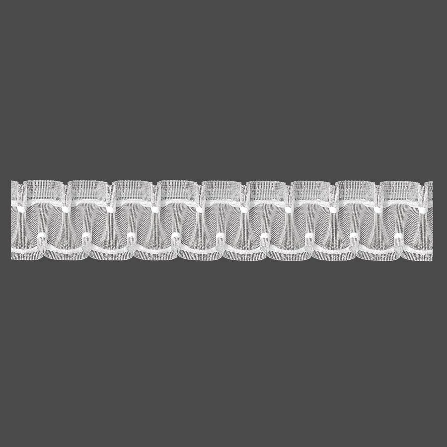 Taśma marszcząca smok, transparentna z białym oplotem. Taśma marszcząca ułatwia ułożenie firan, czy zasłon na karniszu. Ma ona uniwersalne mocowanie, na tzw. żabki, agrafki lub haczyki. Taśmę należy wszyć na prosto to firanki lub zasłony, a następnie pociągnąć za sznureczki, aby uzyskać odpowiedni efekt marszczenia. Zalecamy zakupić około 10 cm więcej taśmy niż materiału.