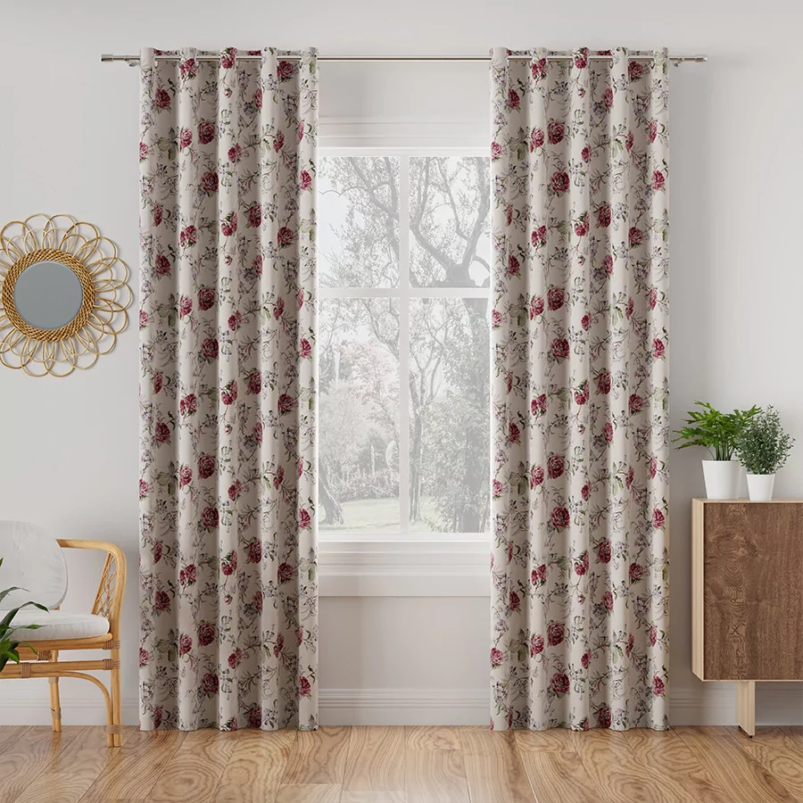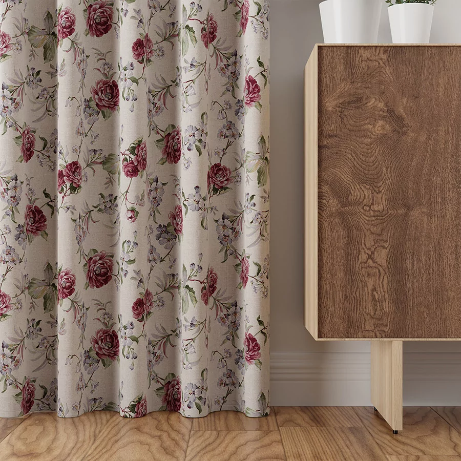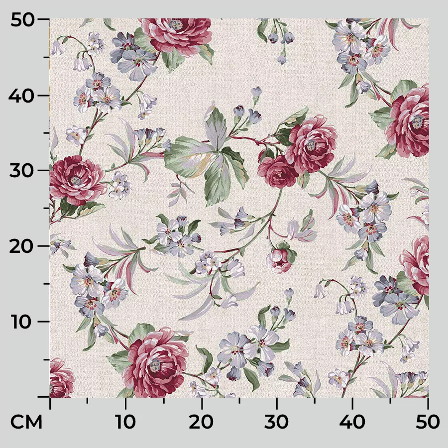 Tkanina dekoracyjna z drukowanym, delikatnym i modnym wzorem w kwiaty. Dostępna w dwóch wersjach kolorystycznych. AMARA to idealny materiał na dekoracyjne, półzaciemniające zasłony a także inne dekoracje aranżacyjne takie jak poszewki dekoracyjne lub nakładki na stół. Materiał ten jest w typie płóciennym, co oznacza, że jego gęsty i mocny splot nadaje tkaninie elegancji i wysublimowanego charakteru. Możliwość zamówienia samego materiału lub jako gotowy, uszyty na wymiar produkt.