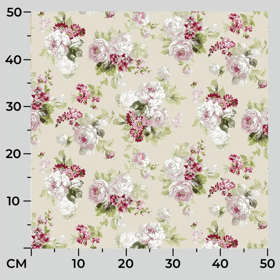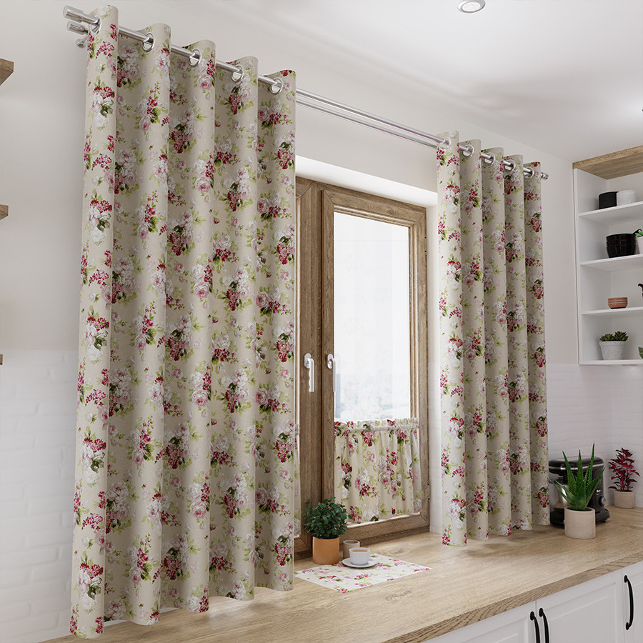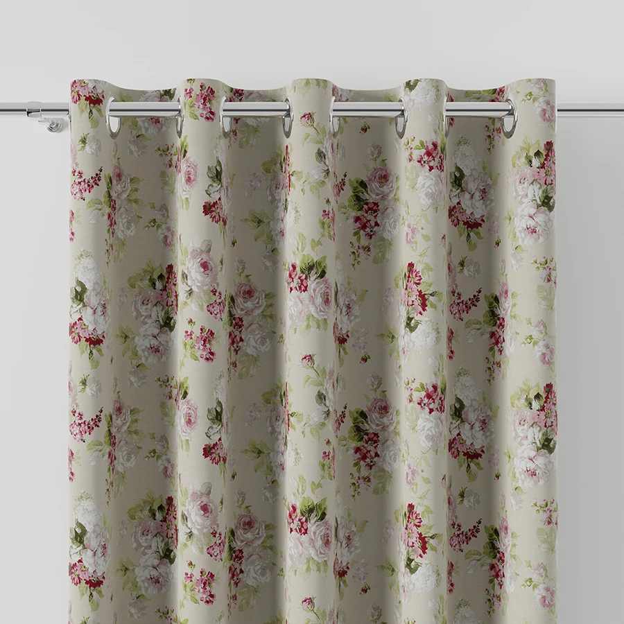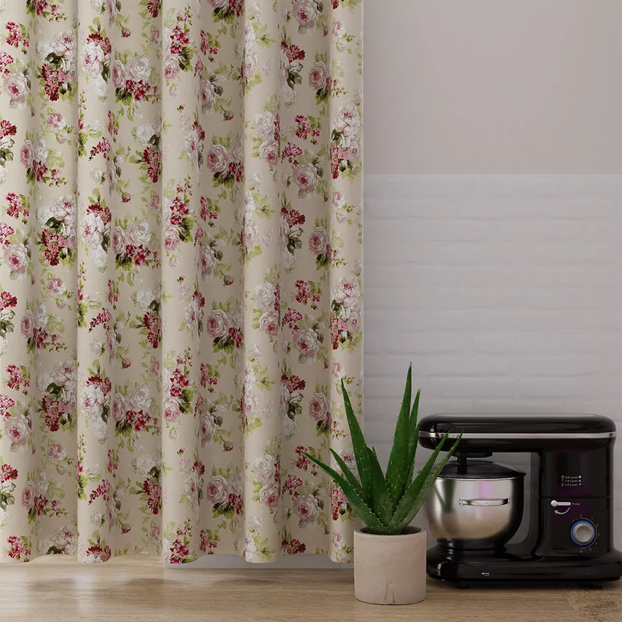 Tkanina dekoracyjna z drukowanym, delikatnym i modnym wzorem w kwiaty. ELIANA to idealny materiał na dekoracyjne, półzaciemniające zasłony a także inne dekoracje aranżacyjne takie jak poszewki dekoracyjne lub nakładki na stół. Materiał ten jest w typie płóciennym, co oznacza, że jego gęsty i mocny splot nadaje tkaninie elegancji i wysublimowanego charakteru. Możliwość zamówienia samego materiału lub jako gotowy, uszyty na wymiar produkt.