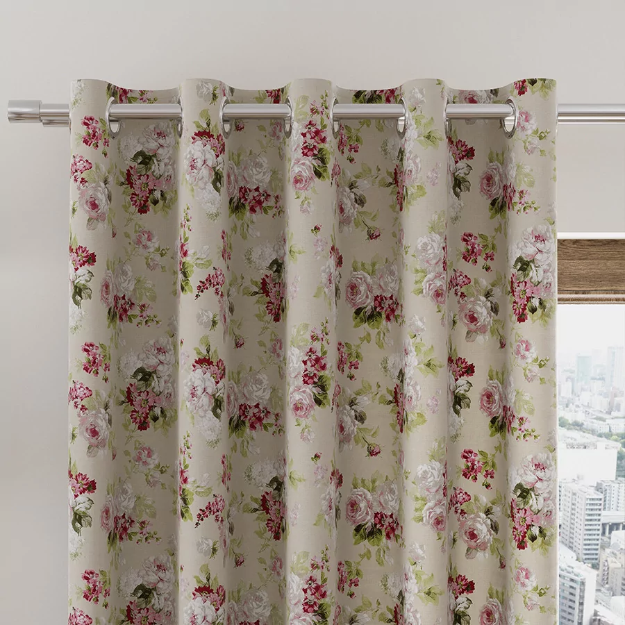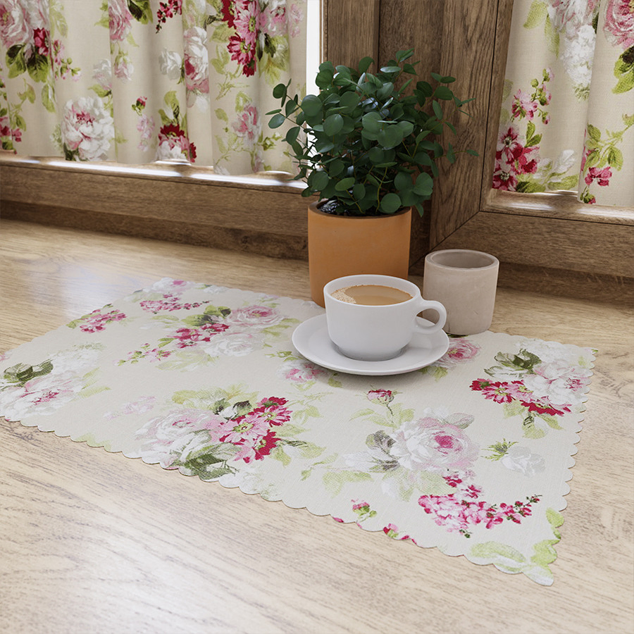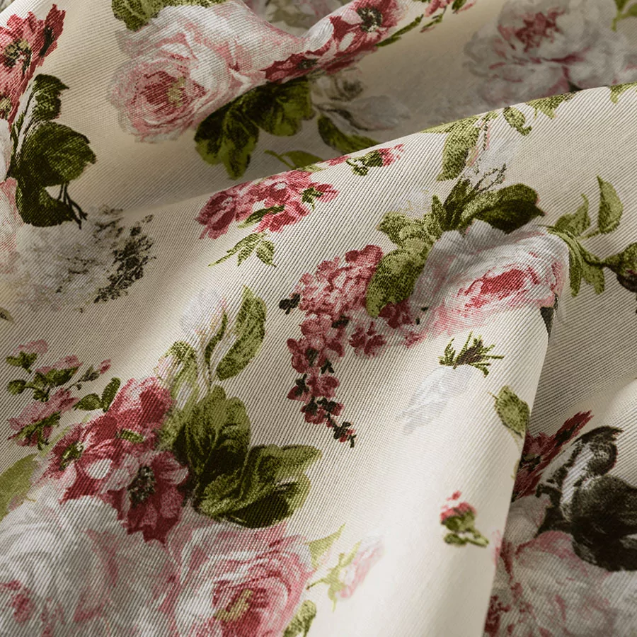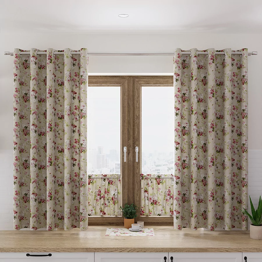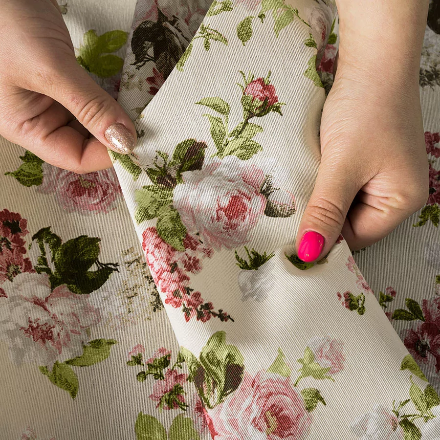 Tkanina dekoracyjna z drukowanym, delikatnym i modnym wzorem w kwiaty. ELIANA to idealny materiał na dekoracyjne, półzaciemniające zasłony a także inne dekoracje aranżacyjne takie jak poszewki dekoracyjne lub nakładki na stół. Materiał ten jest w typie płóciennym, co oznacza, że jego gęsty i mocny splot nadaje tkaninie elegancji i wysublimowanego charakteru. Możliwość zamówienia samego materiału lub jako gotowy, uszyty na wymiar produkt.