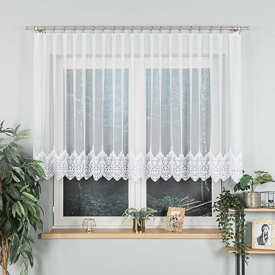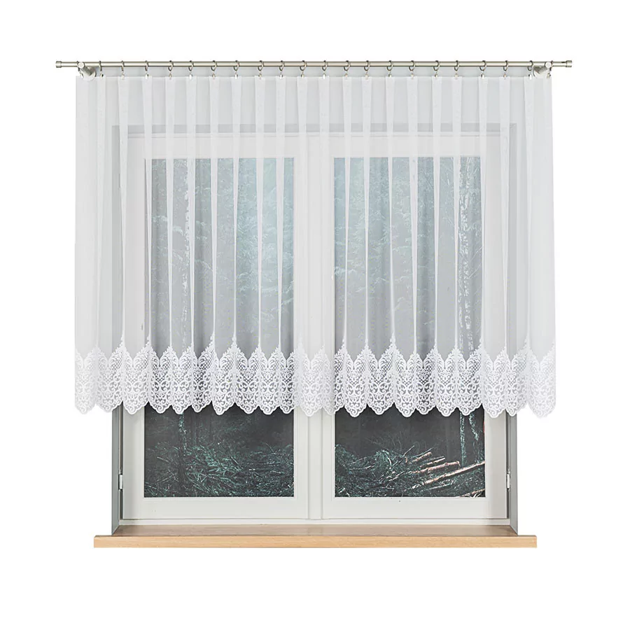 Firankę możesz zamówić z usługą szycia w naszej profesjonalnej szwalni - wybierz taśmę lub przelotki, podaj wymiary, a otrzymasz uszytą i gotową do zawieszenia firankę.