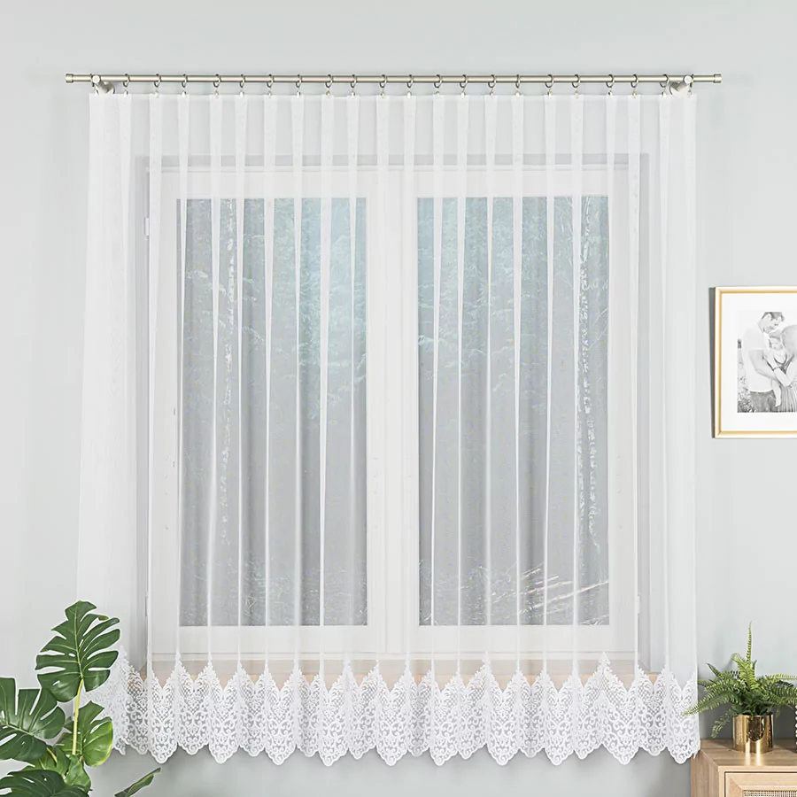 Firankę możesz zamówić z usługą szycia w naszej profesjonalnej szwalni - wybierz taśmę lub przelotki, podaj wymiary, a otrzymasz uszytą i gotową do zawieszenia firankę.