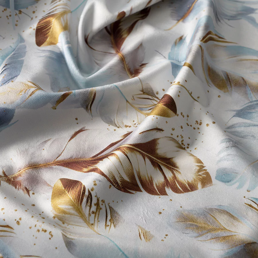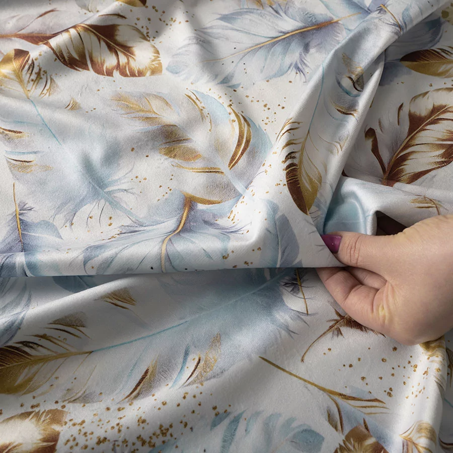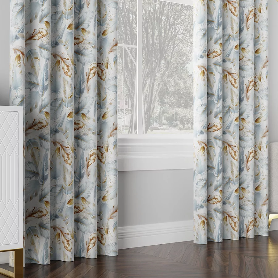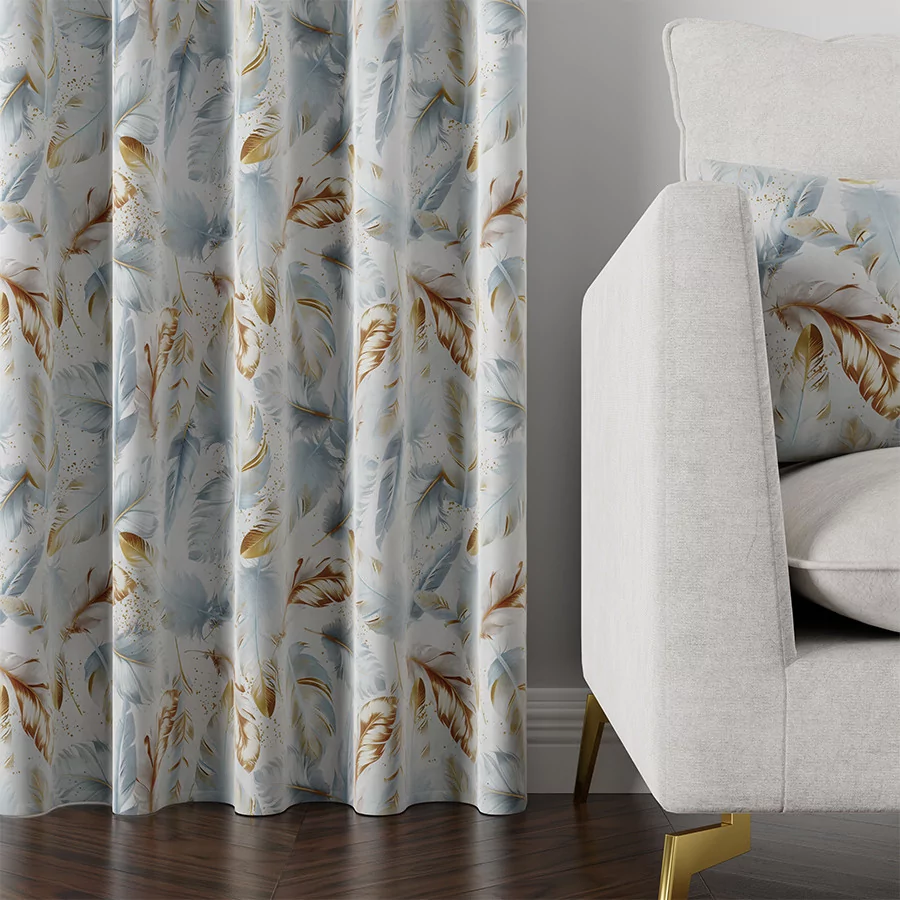 Wszystkim miłośnikom jakże modnych ostatnio motywów piór wychodzimy naprzeciw. Przedstawiamy miękką i miłą w dotyku tkaninę dekoracyjną FARO VELVET. Modny wzór w pięknej, pastelowej kolorystyce i aksamitna faktura tkaniny to duet 10/10. Wysoka gramatura i gęstość materiału gwarantuje dość mocne zasłonięcie okna. Dzięki niej możemy osłonić się przed wścibskim wzrokiem sąsiadów lub przechodniów. Ponadto, przyczynia się do stworzenia bardziej przytulnego wnętrza, w którym chętnie spędzimy czas z całą rodziną. Materiał idealny na zasłony, poszewki lub narzuty.