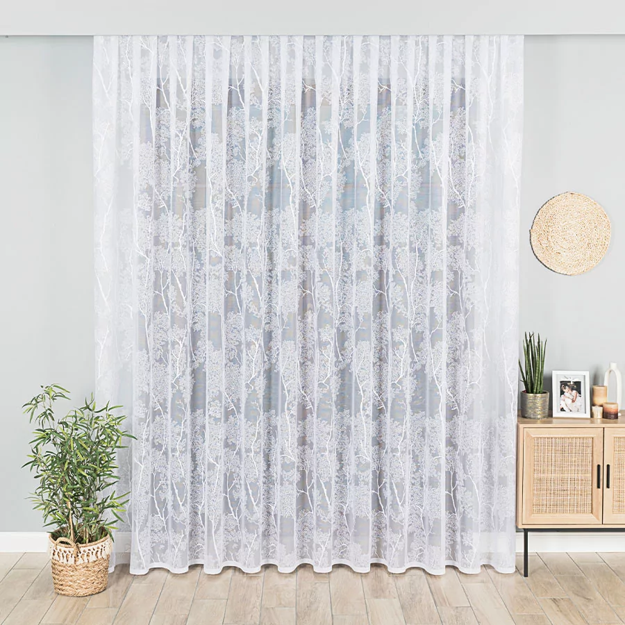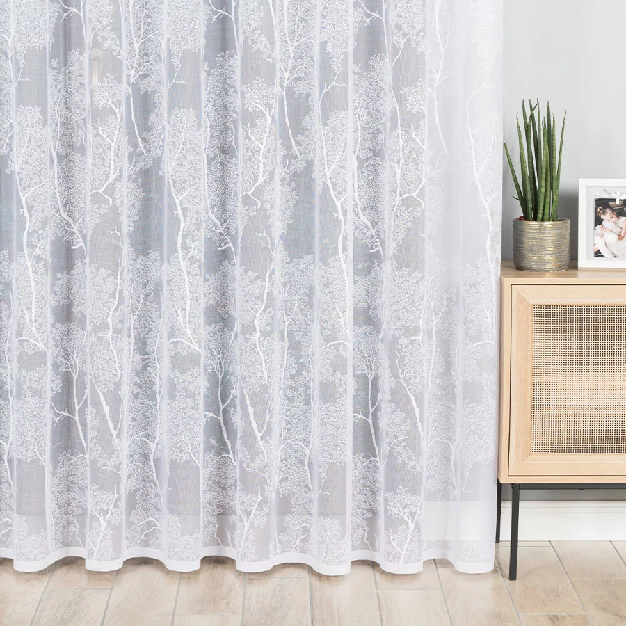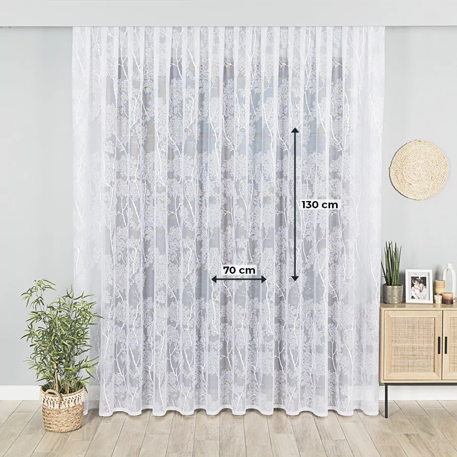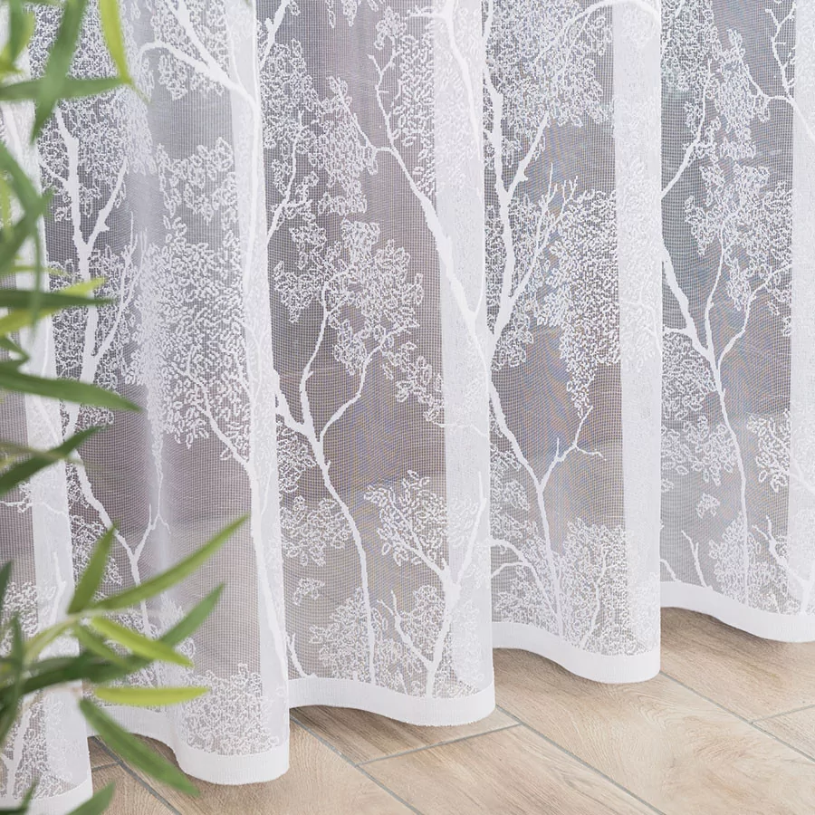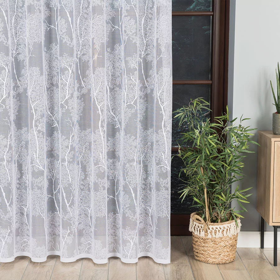 Firanka żakardowa w kolorze białym i szarym. Dostępna w metrażu co oznacza, że szerokość jest dowolna, dzięki czemu dopasujesz ją dokładnie do swojego okna. Najwyższa jakość przędzy żakardowej idealnie wkomponuje się w aranżację wnętrz nowoczesnych jak i tych urządzonych w klasycznym stylu. Firanka pięknie się układa, nie wymaga prasowania i można ją prać w pralce w niskiej temperaturze. Cechuje ją dobra przepuszczalność powietrza i promieni słonecznych.
